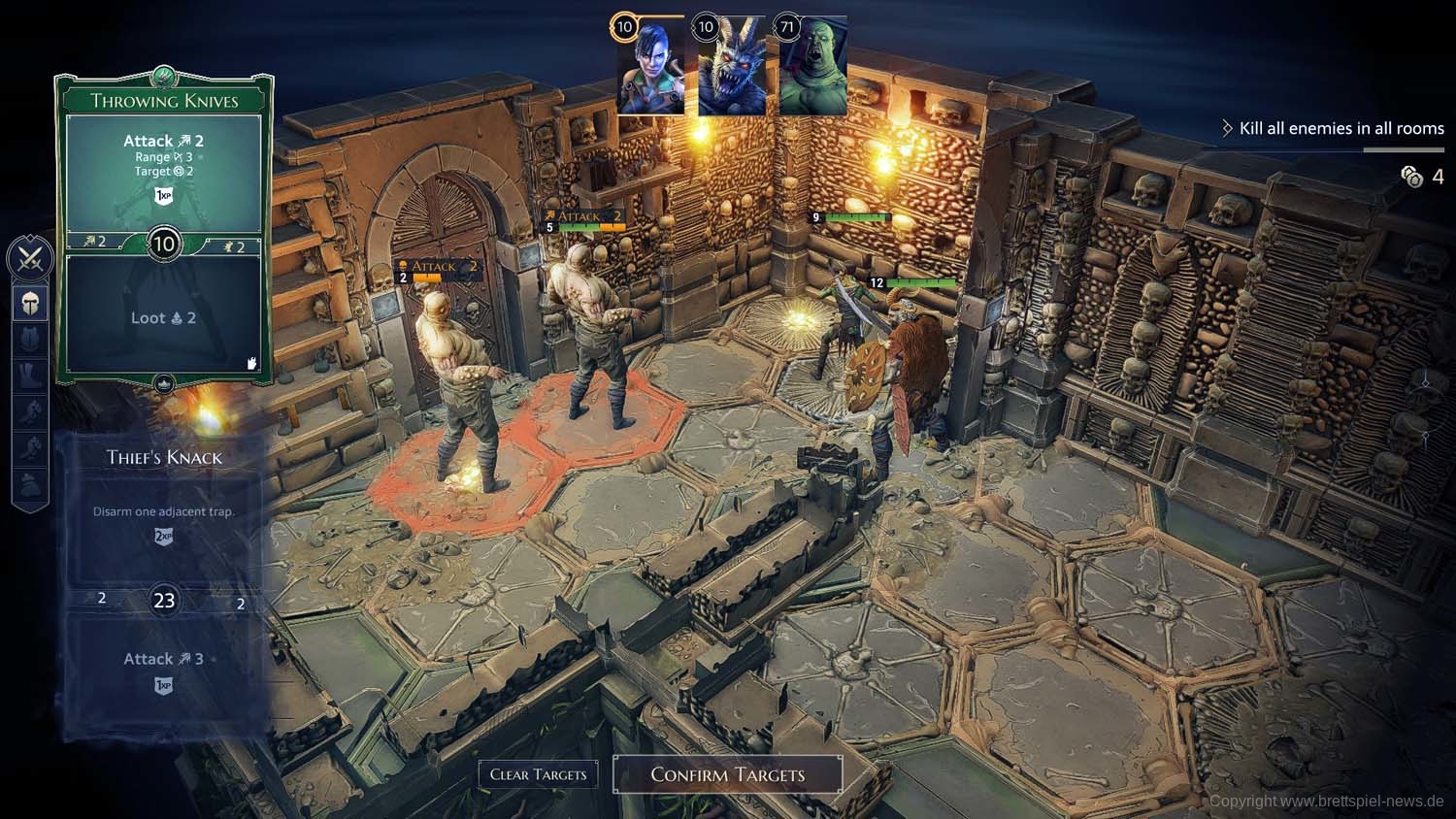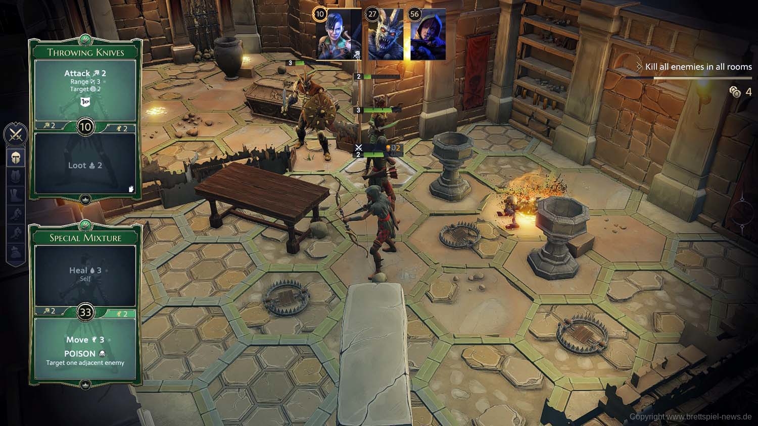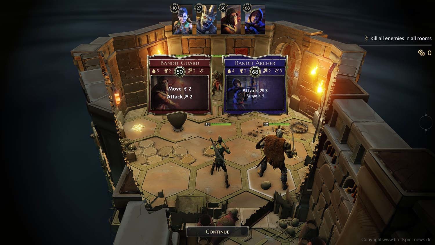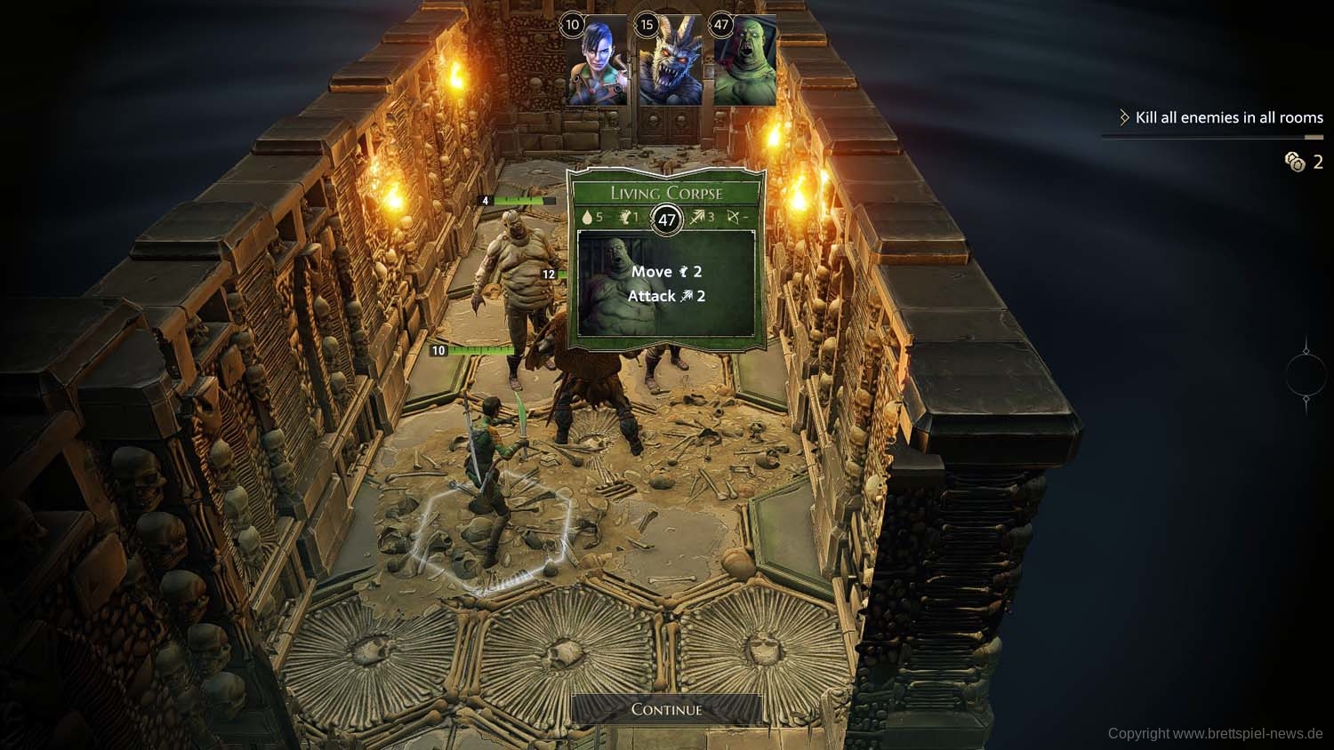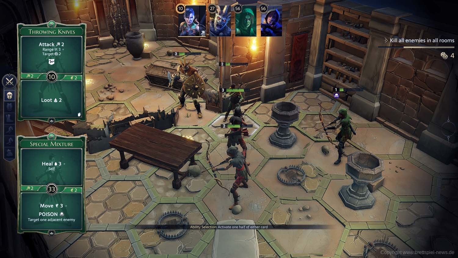 Und so geht es dann im Abenteuer-Spiel von Gegner zu Gegner, von Raum zu Raum und schließlich von Dungeon zu Dungeon, bis das zu Beginn gewählte Etappenziel erreicht wurde und die Belohnung an die Gruppe ausgeteilt wird. Ich habe rund 2 Stunden gebraucht, um die erste Aufgabe zu erledigen. Die Umsetzung der Steuerung fand ich dabei sehr intuitiv und es gab keinen Moment, bei dem ich mich verloren fühlte oder etwas nicht in der Art funktionierte, wie ich es vom Brettspiel kannte.
