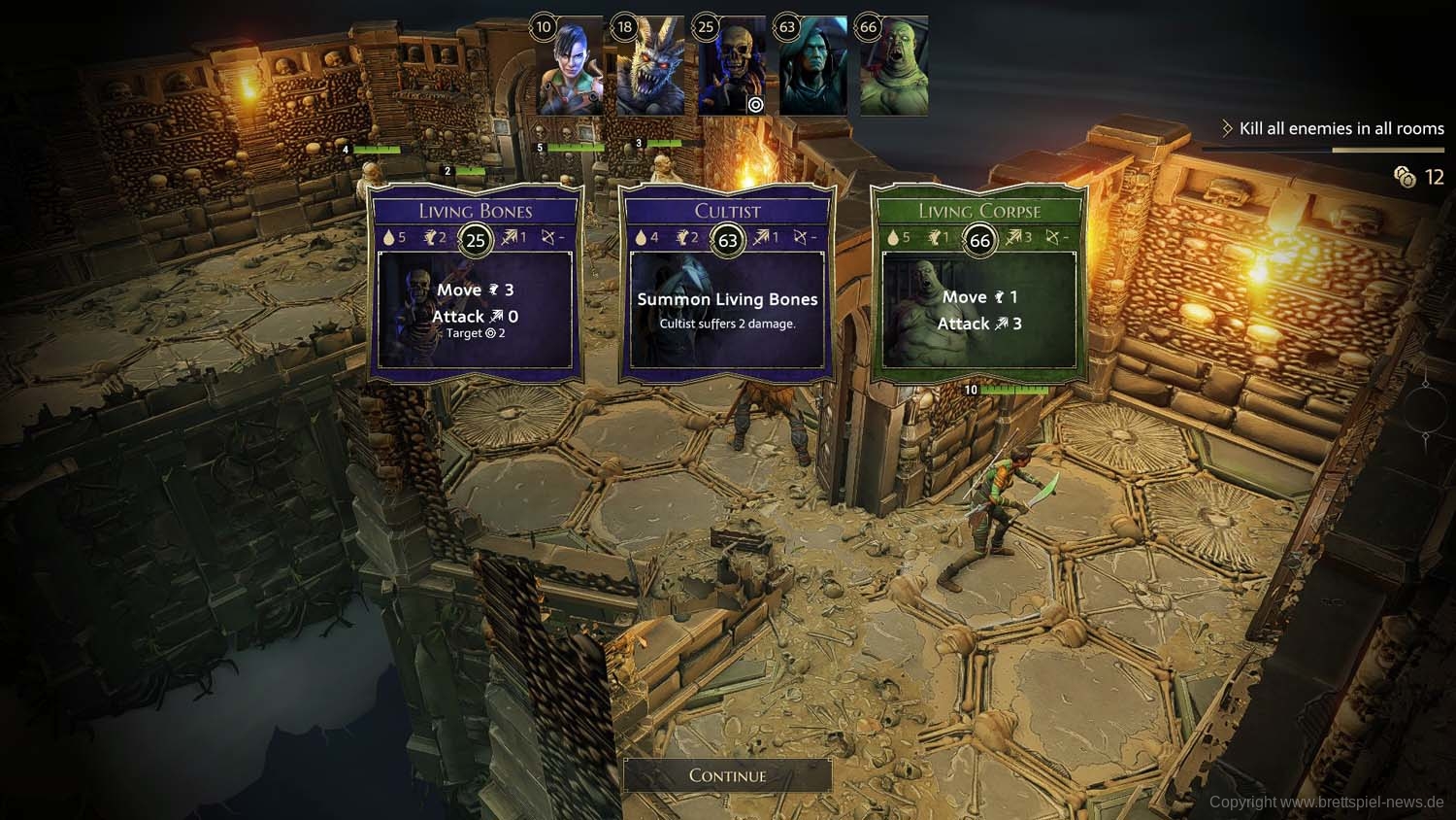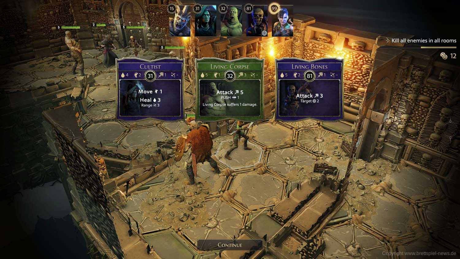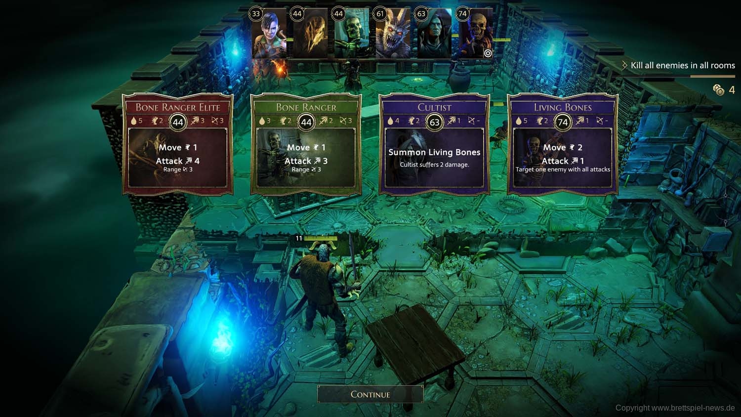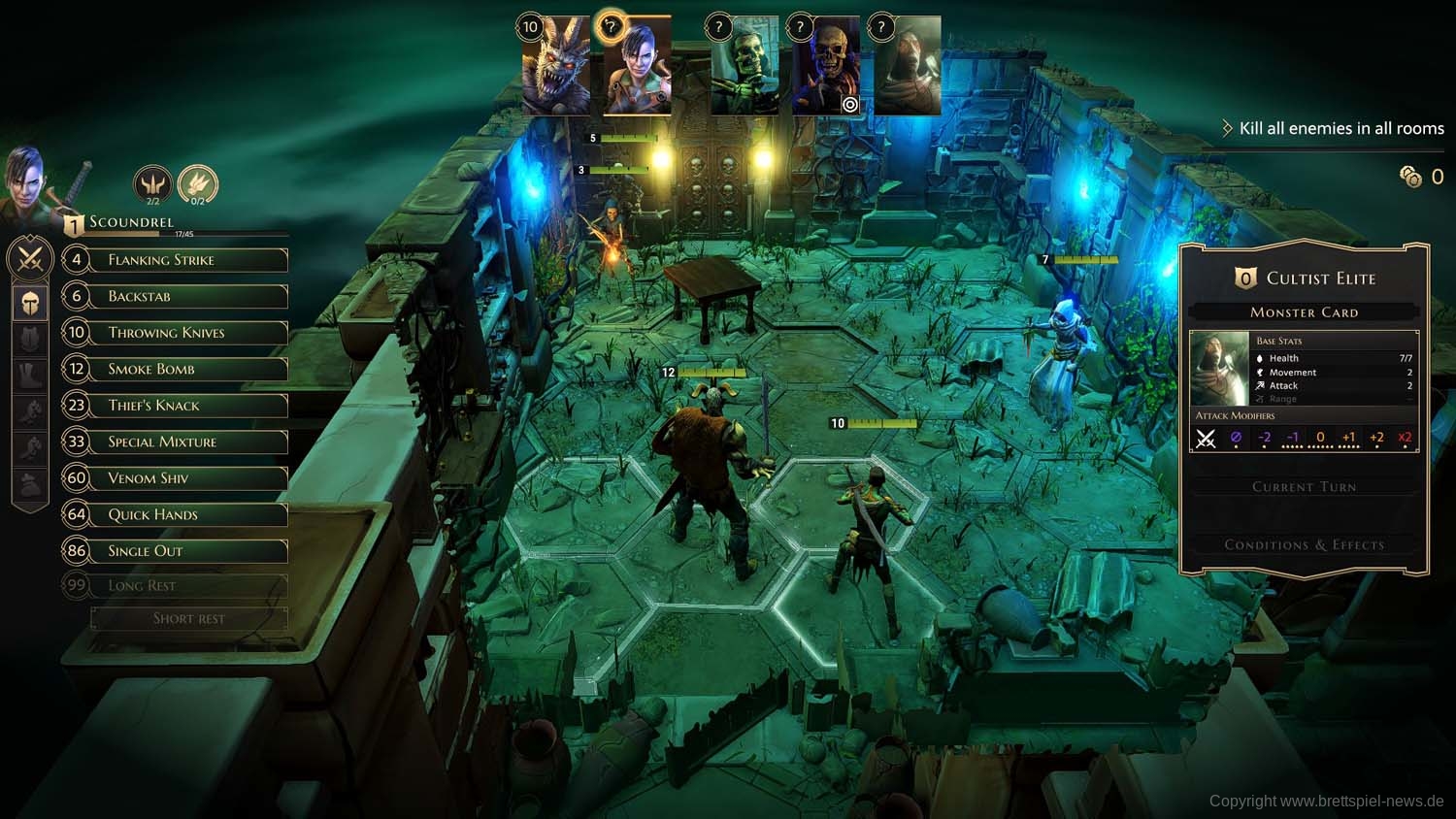 Und so geht es dann im Abenteuer-Spiel von Gegner zu Gegner, von Raum zu Raum und schließlich von Dungeon zu Dungeon, bis das zu Beginn gewählte Etappenziel erreicht wurde und die Belohnung an die Gruppe ausgeteilt wird. Ich habe rund 2 Stunden gebraucht, um die erste Aufgabe zu erledigen. Die Umsetzung der Steuerung fand ich dabei sehr intuitiv und es gab keinen Moment, bei dem ich mich verloren fühlte oder etwas nicht in der Art funktionierte, wie ich es vom Brettspiel kannte.