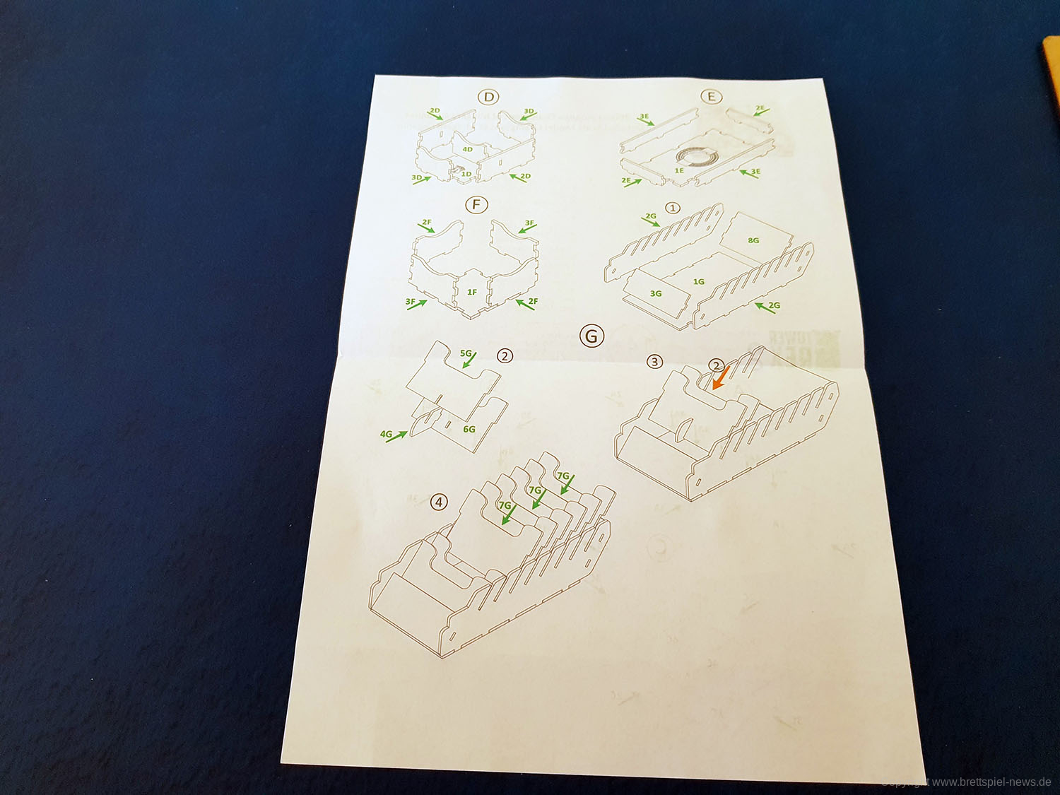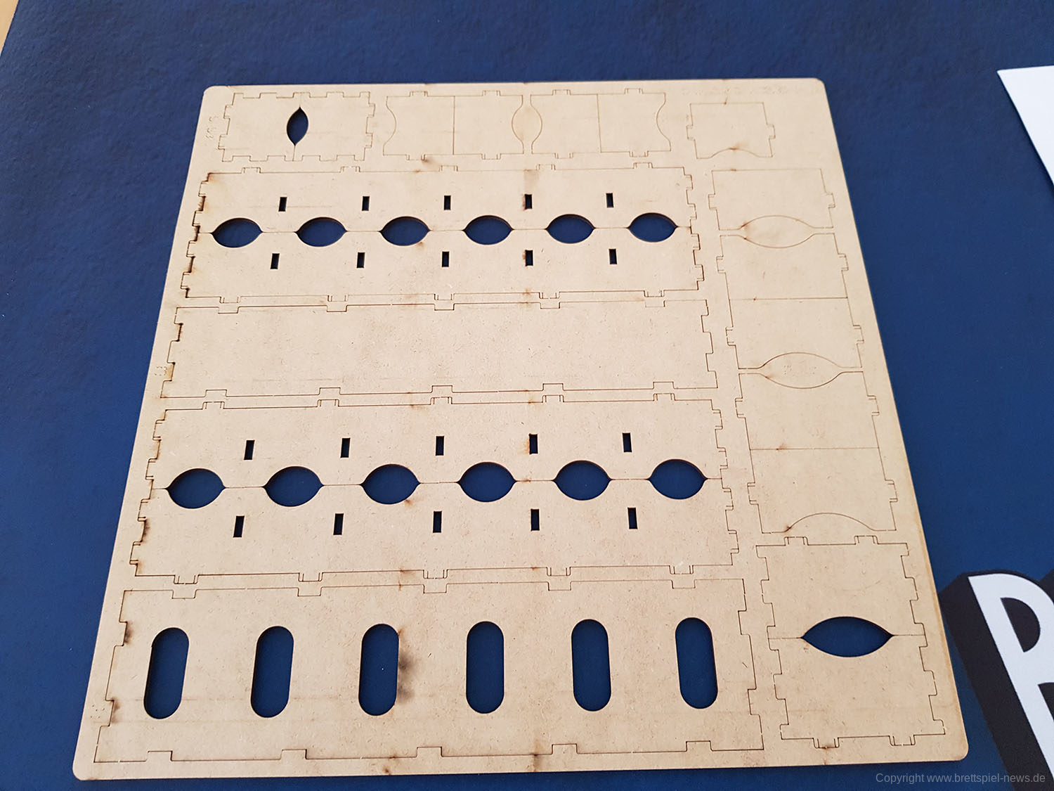 Ich bin alles andere als handwerklich begabt, zudem ist dies wie gesagt mein erstes Inlay. Dennoch der Zusammenbau war mehr ein kleines, entspanntes Puzzle mit durchnummerierten Teilen. Kein großes Rätselraten, kein Werkzeugsuchen. Die dünnen, aber stabilen Holzplatten schnappten, knirschten und klickten ineinander. An einigen Stellen musste ich mal etwas „hin- und herruckeln“, aber dann griffen alle Teile doch gut ineinander. Nach gut 30 Minuten war das Inlay zusammengebaut und vor mir standen eine kleine Zahl hölzerner Kistchen und Sortierkästen.