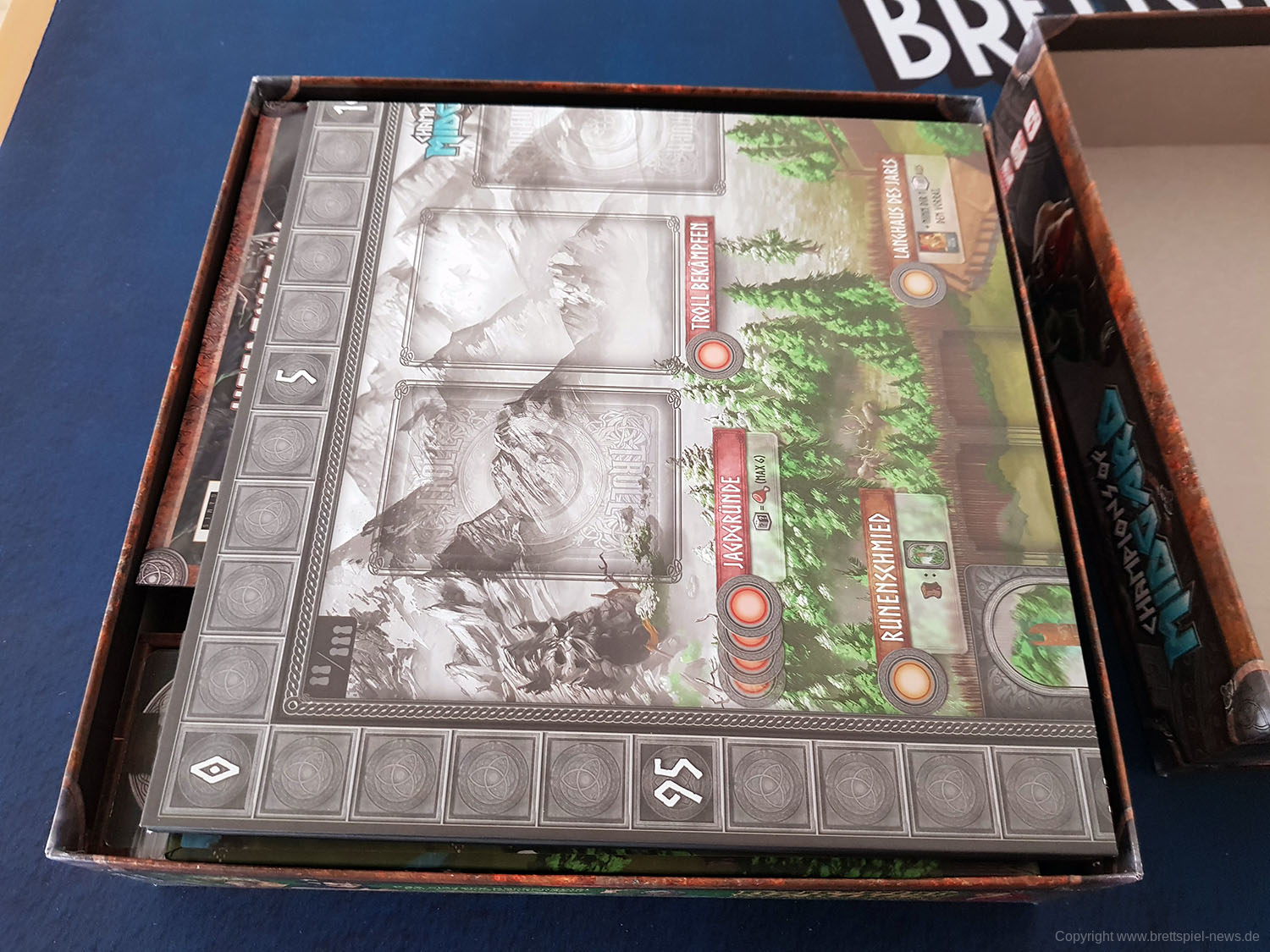 Nach einigem Hin- und Herüberlegen habe ich mich also dafür entschieden, mir ein Inlay für CHAMPIONS OF MIDGARD zu besorgen, in dem das Grundspiel und beide Erweiterungen übersichtlich und leicht zugänglich in der Grundspielbox Platz finden.