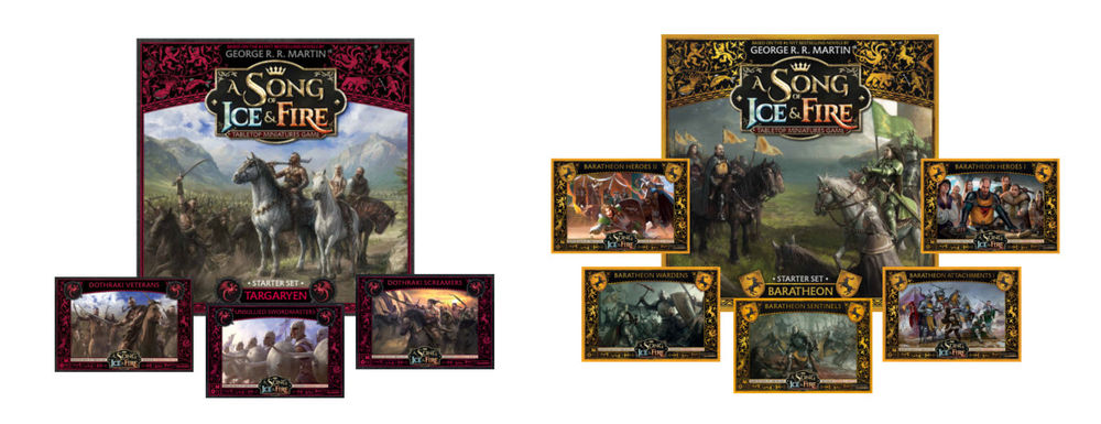 Im Tabletop-Spiel A SONG OF ICE AND FIRE können die Spieler:innen die Kontrolle über ihre Lieblingshäuser aus den bekannten Büchern von George R. R. Martin übernehmen. Mit hochwertigen, bereits zusammengebauten Miniaturen könnt ihr gegen eure Feinde in die Schlacht ziehen und sowohl die Kämpfe der Bücher nacherleben als auch eure eigenen Geschichten schreiben. Dieses Jahr sollen die BARATHEON und TARGARYEN Starter Sets sowie die Erweiterungen und die MOTHER OF DRAGON Erweiterungen erscheinen.