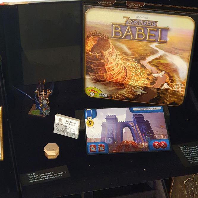 Außerdem planen wir verstärkt Brettspiele in museale Ausstellungen einzubetten. Im Kontext solcher Ausstellung können die Besucher*innen selbstständig die Geschichtsdarstellungen in Brettspielen mit originalen Quellen sowie dem Stand der wissenschaftlichen Forschung abgleichen. Unsere Meinung nach könnte man so auch nochmal die Relevanz von wissenschaftlicher Forschung für die Lebenswelt der Besucher*innen deutlich machen. In der Sonderausstellung „Wohlauf lasst uns eine Stadt und einen Turm bauen, Babel in der Bibel“ des Bibelmuseum der Universität Münster haben wir beispielsweise das Spiel „7 Wonders Babel“ integriert um zu zeigen woher die Vorstellung des Runden Turms eigentlich kommt. Aber auch in Schulen im Kontext von Geschichtsunterricht oder der politischen Bildung könnte man Brettspiele einsetzten, da Kinder und Jugendliche durch das Spielen oder das Beschäftigen mit Spielen eine Fülle an Kompetenzen erlangen können. Hierzu erscheint dieses Jahr noch eine Borschüre zu Analogen Spielen in der politischen Bildung wo wir auch Beiträge verfasst haben.