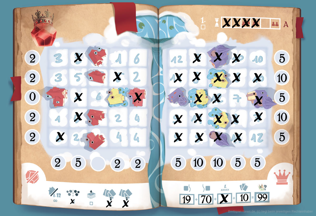 Im Gegesatz zu Philipp bin ich ein großer Fan von Roll/Flip&Write-Spielen. Seien es simplere Spiele, wie „Tetrix“ und „Next Station London“ oder komplexere Titel, wie „Fleet: The Dice Game“ und „Dinosaur Island Rawr'n'Write“. „Queen of 12“ ist deutlich interaktiver als andere Roll&Write-Spiele. Die Kombination der Kartenauswahl und dem Dice Drafting bringt viel Spannung ins Spiel. Im Gegensatz dazu ist das eigentlich Abkreuzen der Felder super simpel. Dank der Interaktion fühlt sich „Queen of 12“ angenehm frisch an. Einziges Manko für mich als Spieler, der viel solo spielt, ist der fehlende Solomodus. Ansonsten eine klare Empfehlung für Roll/Flip&Write Fans und auch Spielerinnen und Spieler, die sonst nicht so viel mit der Mechanik anfangen können, sollten mal einen Blick auf „Queen of 12“ werfen.