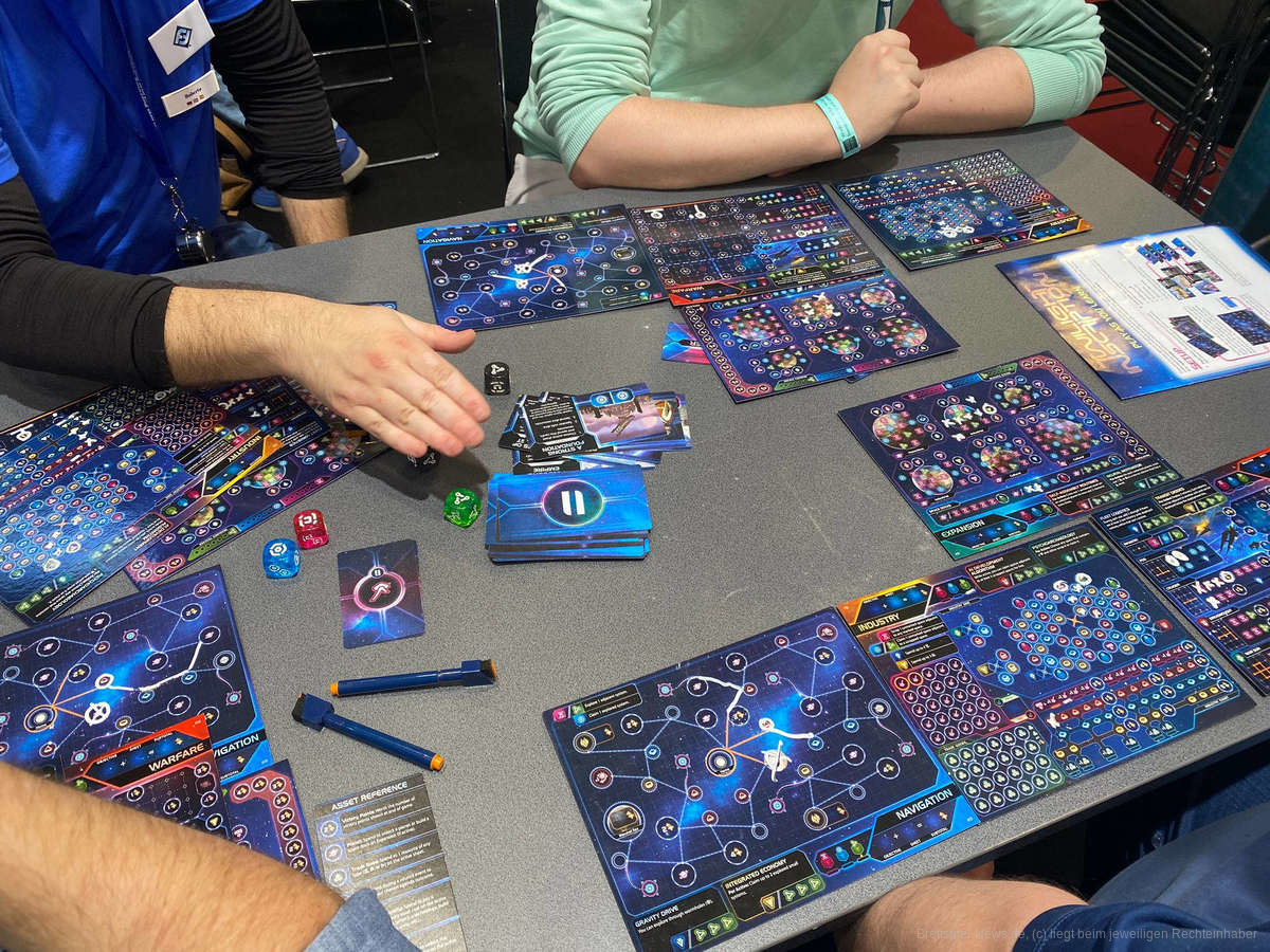 Seit Jahren suche ich nach einem komplexeren Roll & Write, denn die meisten sind mir zu seicht oder sprechen mich thematisch weniger an. „Twilight Inscription“ hatte auch deswegen meine Aufmerksamkeit erregt. Twilight Imperium habe ich allerdings nur ein oder zweimal gespielt (lange her). Nichtsdestotrotz hatte ich viel Spaß mit dem Spiel und war positiv überrascht. Es bietet eine Menge Komplexität, sodass jede Entscheidung wichtig erscheint – allerdings ohne endlose Kettenreaktionen auszulösen, die die Spielzüge in die Länge ziehen und meinen Kopf zum Rauchen bringen. Außerdem bietet es, durch das Kriegswesen, Interaktion mit den direkten Nachbarn. Ich war kurz davor, „Twilight Inscription“ sofort mitzunehmen, der mit 65 € meiner Meinung nach recht hoch angesetzte Messepreis hat mich jedoch abgeschreckt. Nach der Messe habe ich es dann doch vorbestellt.