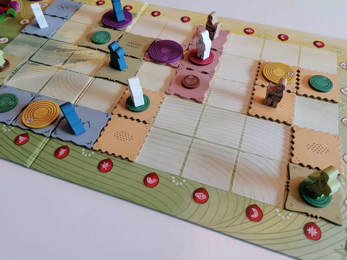 Das Spiel punktet zunächst einmal durch die Optik und das Material. Die bedruckten Meeple sehen toll aus und im Laufe der Partie werden immer mehr Plättchen auf den Spielplan gelegt, was zu einer tollen Tischpräsenz führt. Die erste Partie zu viert hat richtig Laune gemacht.