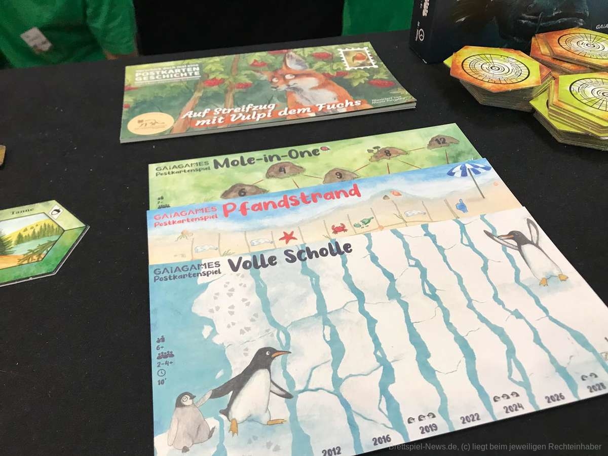 Eine besonders moderne Art von Spiel bietet Planet A an. An ihrem Stand haben wir uns die zwei Fälle von „Tatort Meer“ zeigen lassen. In den Case Files wird an Umweltverbrechen ermittelt. Ganz passend wird ein Teil vom Erlös des ersten Falles an eine Firma zur Beseitigung von Geisternetzen gespendet, die dann im Spiel wieder zum Einsatz kommen. Im zweiten Fall der Reihe gibt es eine Kooperation mit Sea Shepherd und echtes Videomaterial der NGO kommt zum Einsatz. Die beliebte Mischung aus physischem Material und dem Einsatz von Technik und Online-Recherche wird auch hier geboten, mit Schwerpunkt auf dem Thema Meeresschutz.