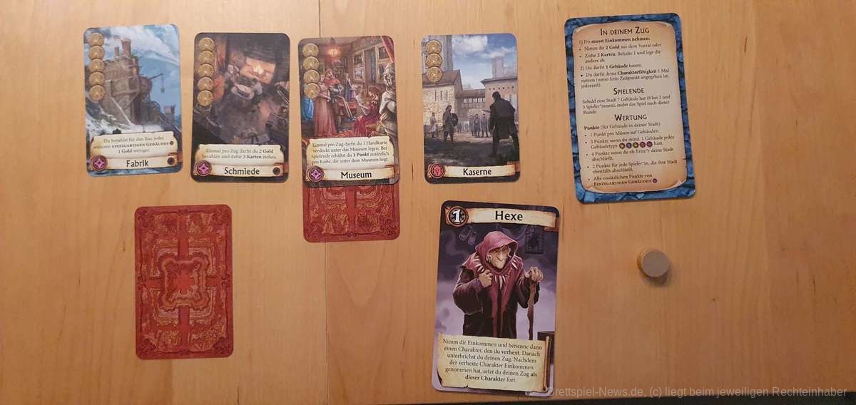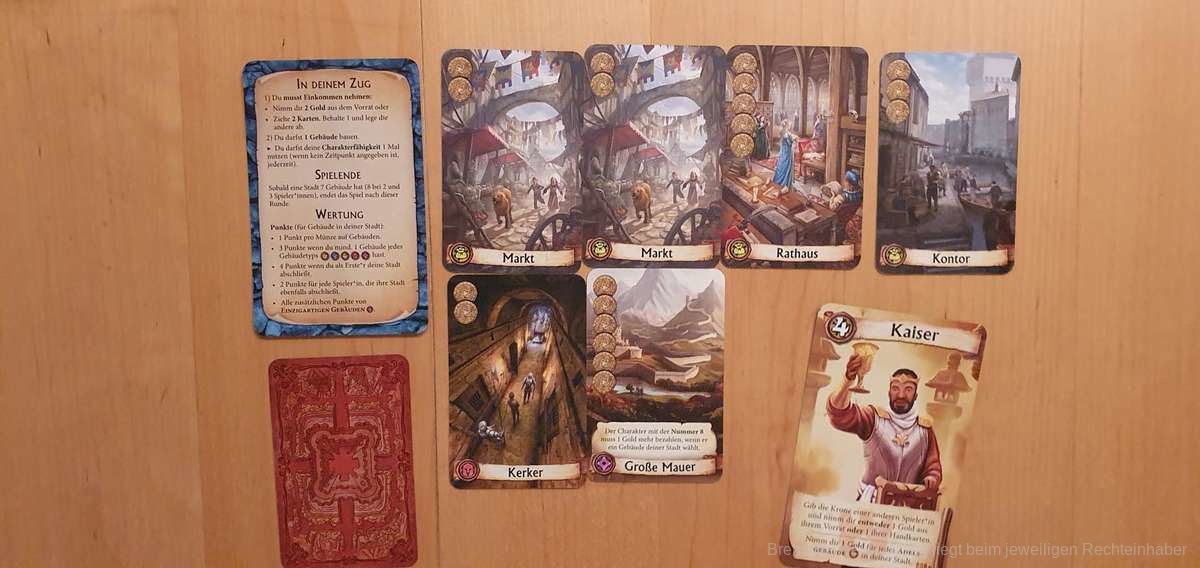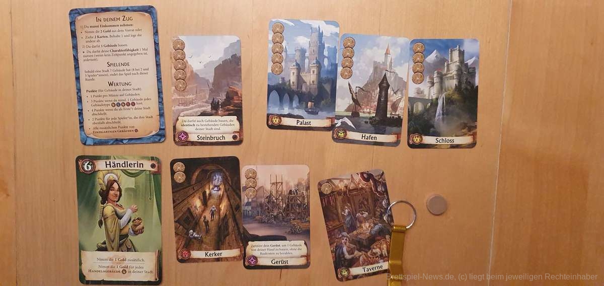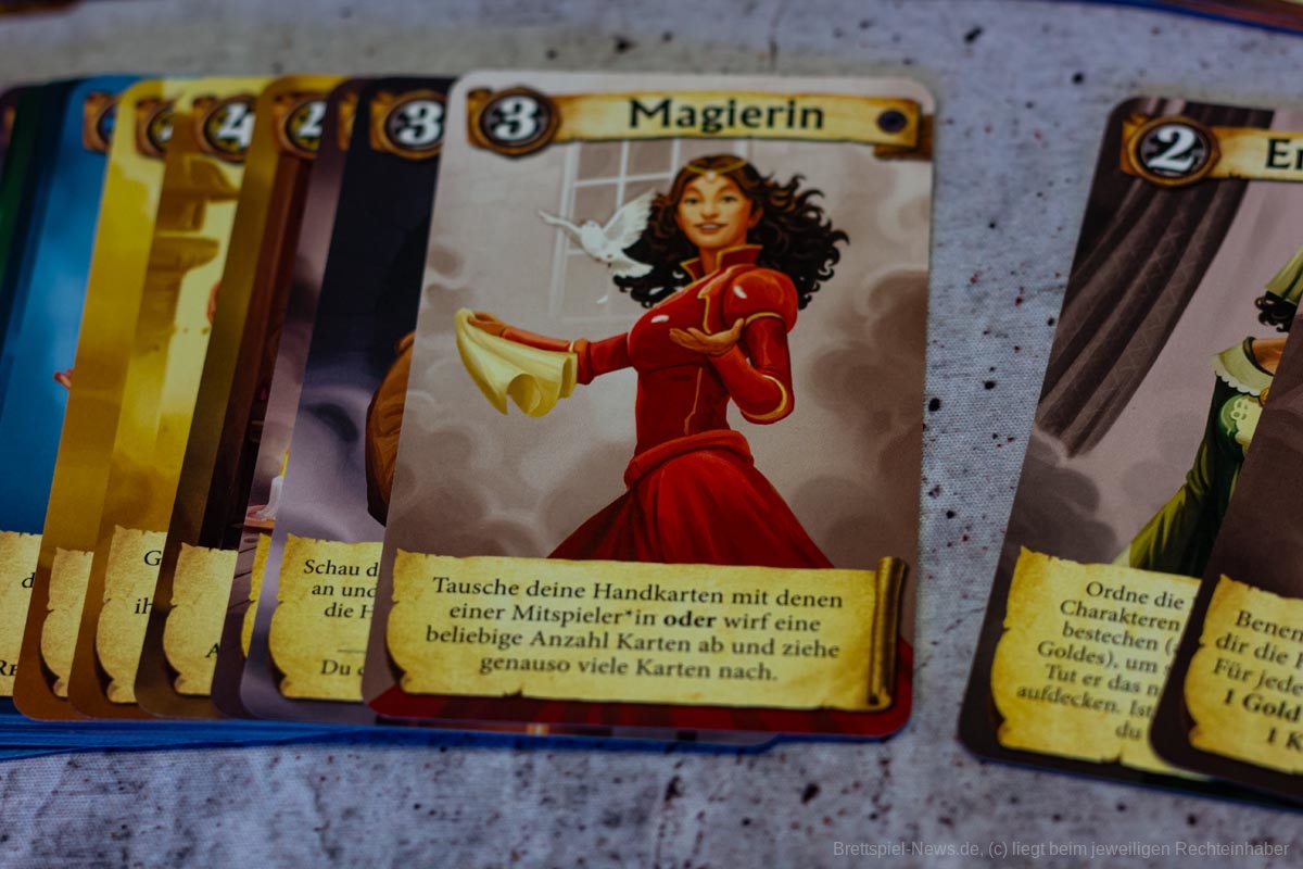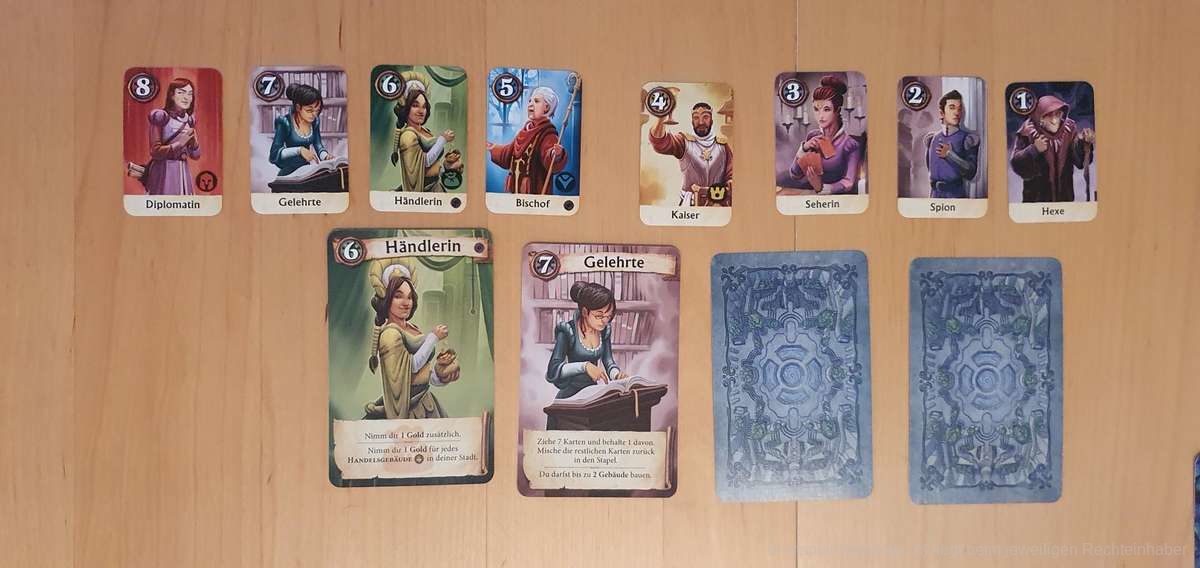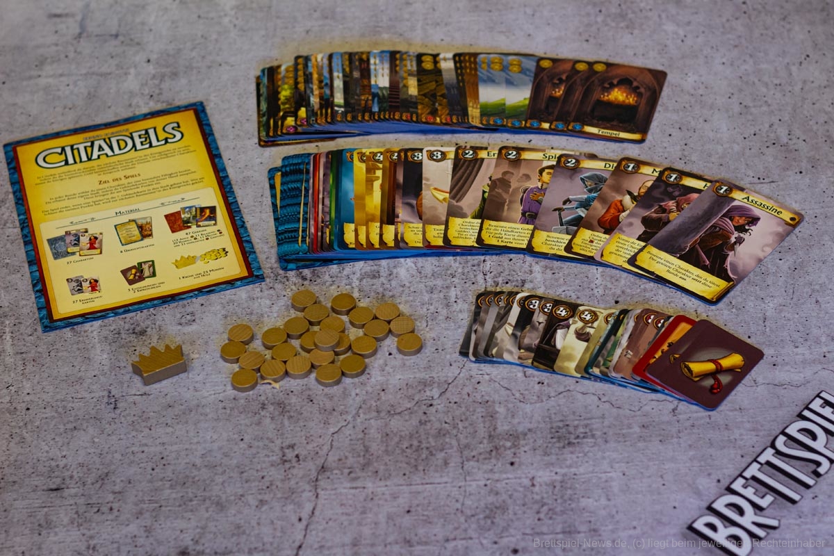 Dabei handelt es sich um eine komplett überarbeitete Version unter dem Namen “Citadels” inklusive der 15 Aktionskarten, der Erweiterung “Die dunklen Lande” und einer neuen Erweiterung “Die dunklen Gesellen”. Diese neue Erweiterung beinhaltet 9 komplett neue Charaktere sowie 12 ganz neue Gebäude, die vielfältige Spielvariationen und Spielspaß ermöglichen.