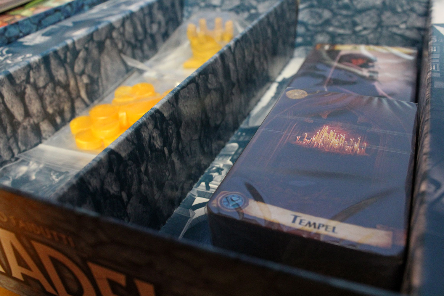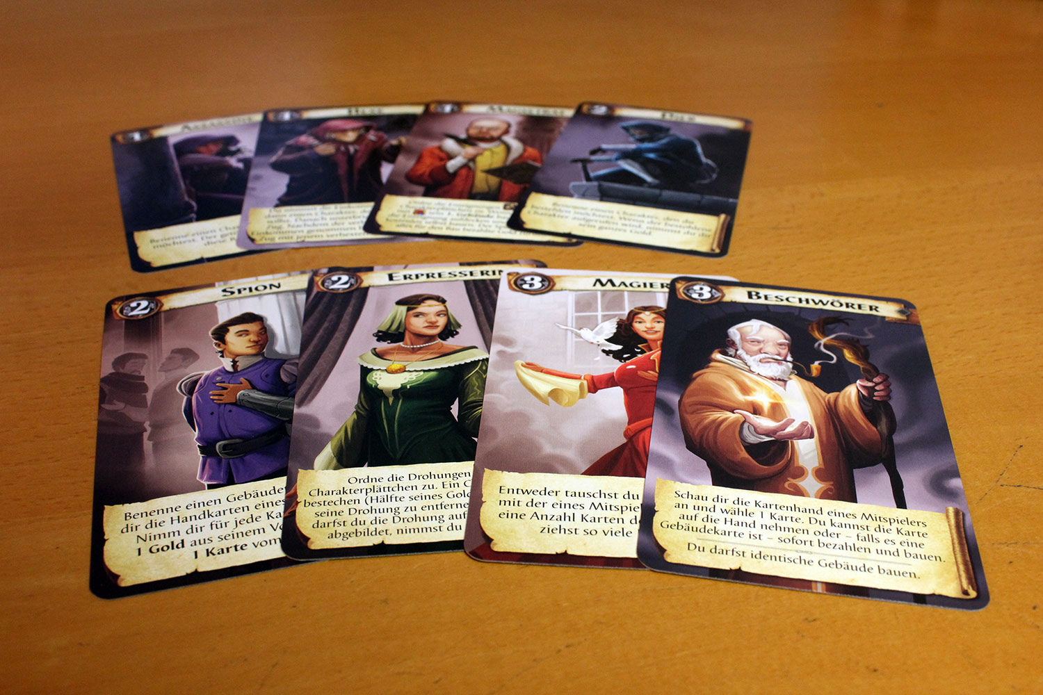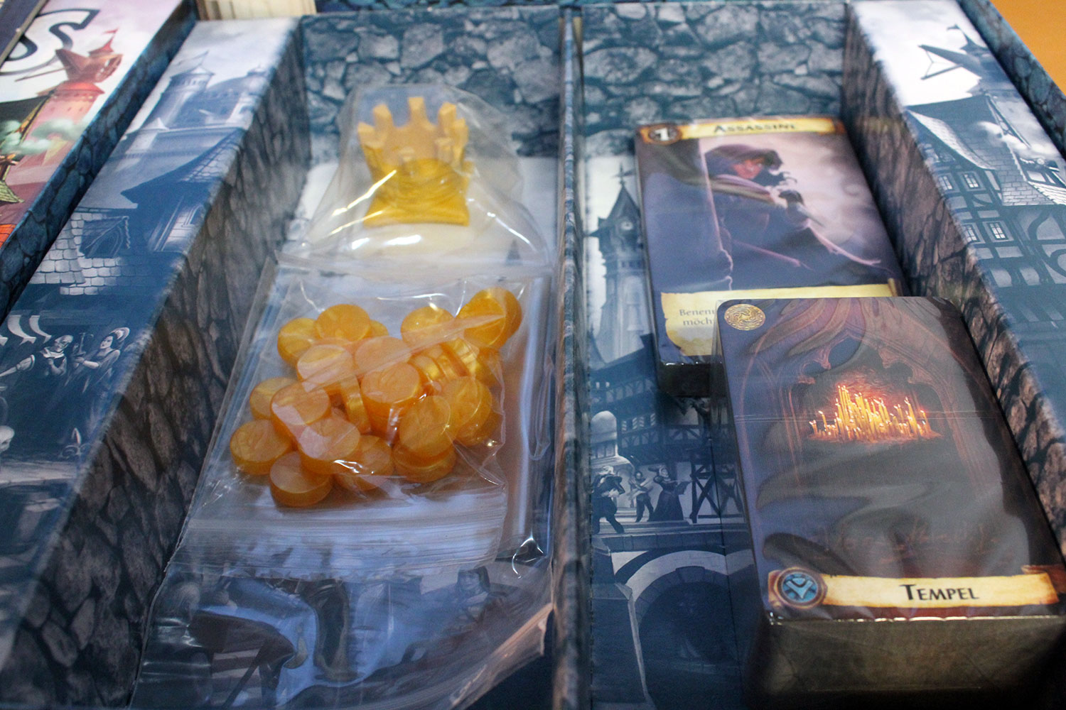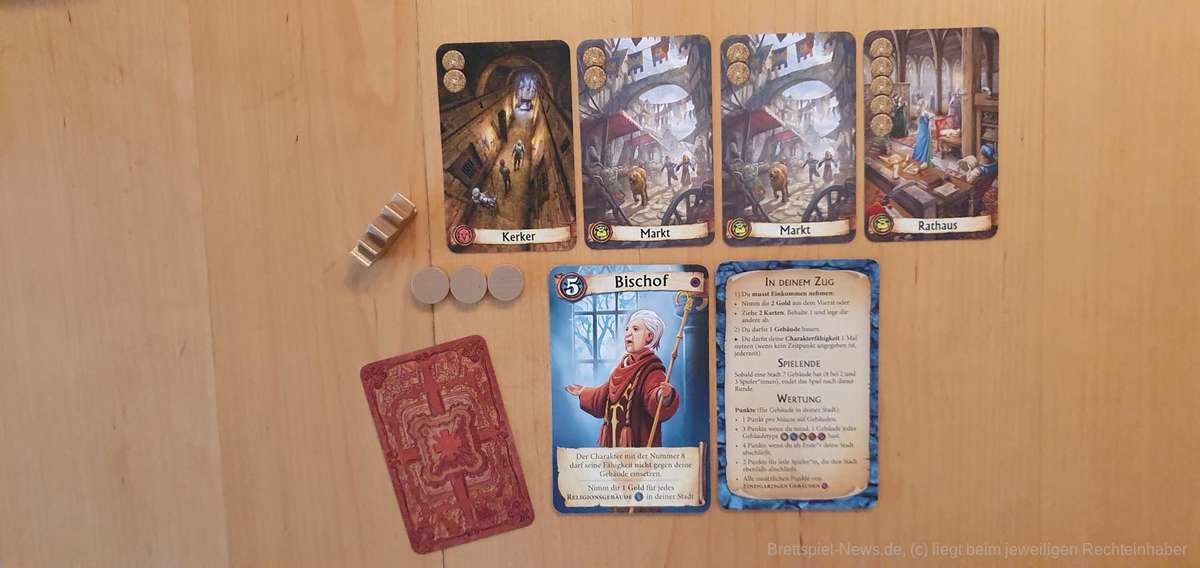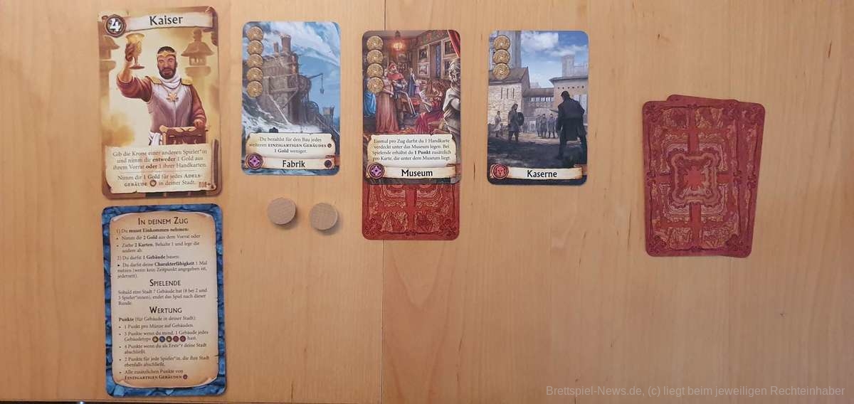 Dabei handelt es sich um eine komplett überarbeitete Version unter dem Namen “Citadels” inklusive der 15 Aktionskarten, der Erweiterung “Die dunklen Lande” und einer neuen Erweiterung “Die dunklen Gesellen”. Diese neue Erweiterung beinhaltet 9 komplett neue Charaktere sowie 12 ganz neue Gebäude, die vielfältige Spielvariationen und Spielspaß ermöglichen.