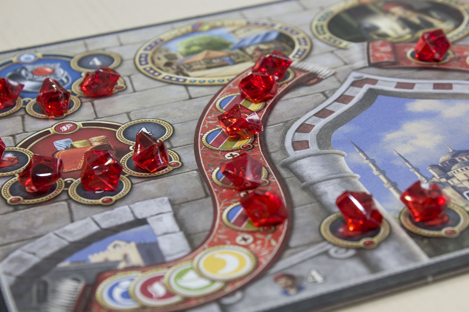 Alternativ kann man in der Stadt Istanbul Rubine kaufen. Das geht gegen gleichfarbige Rohstoffe, unterschiedliche Rohstoffe, Geld und für jeweils vier Bonusplättchen.