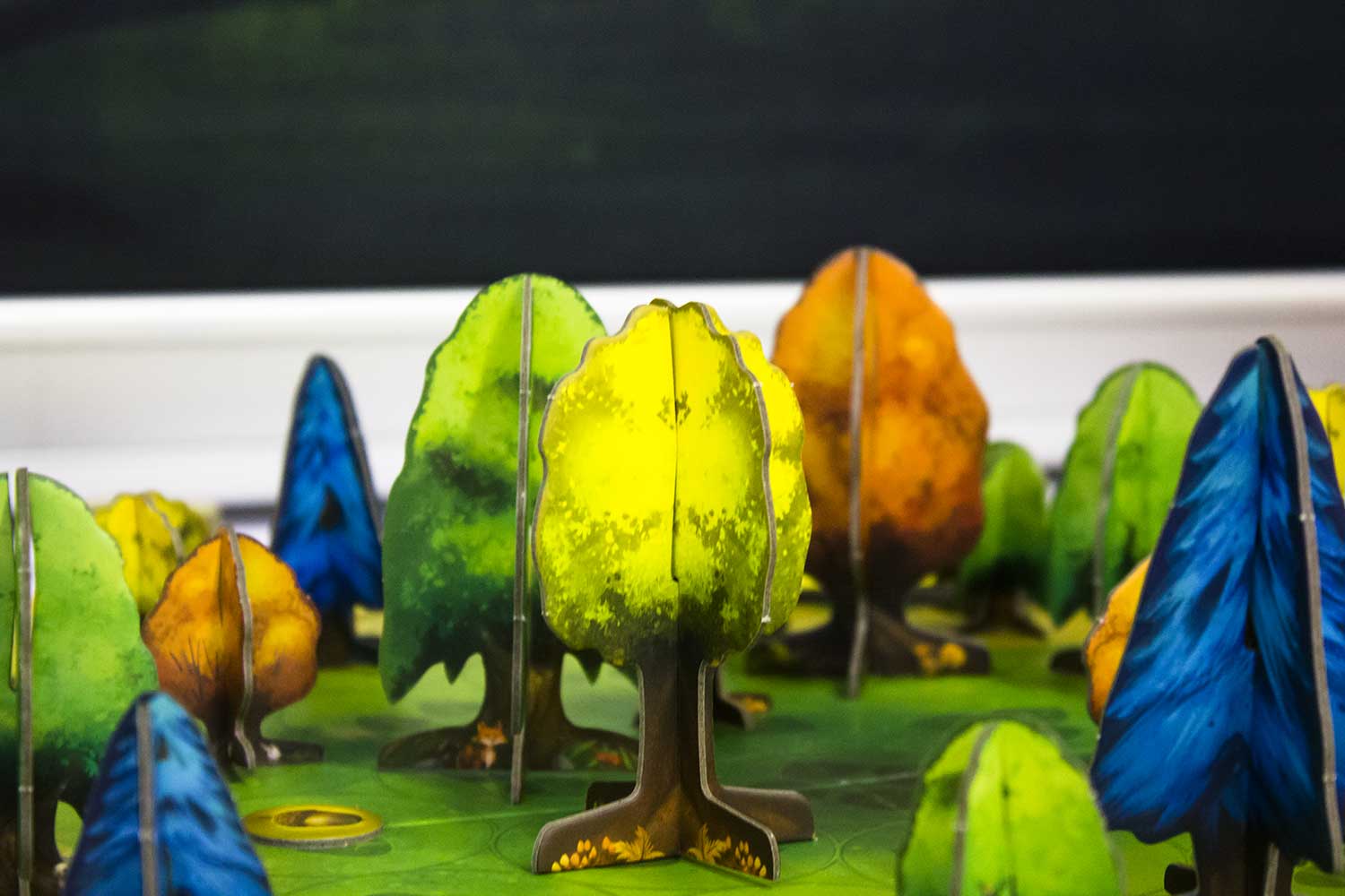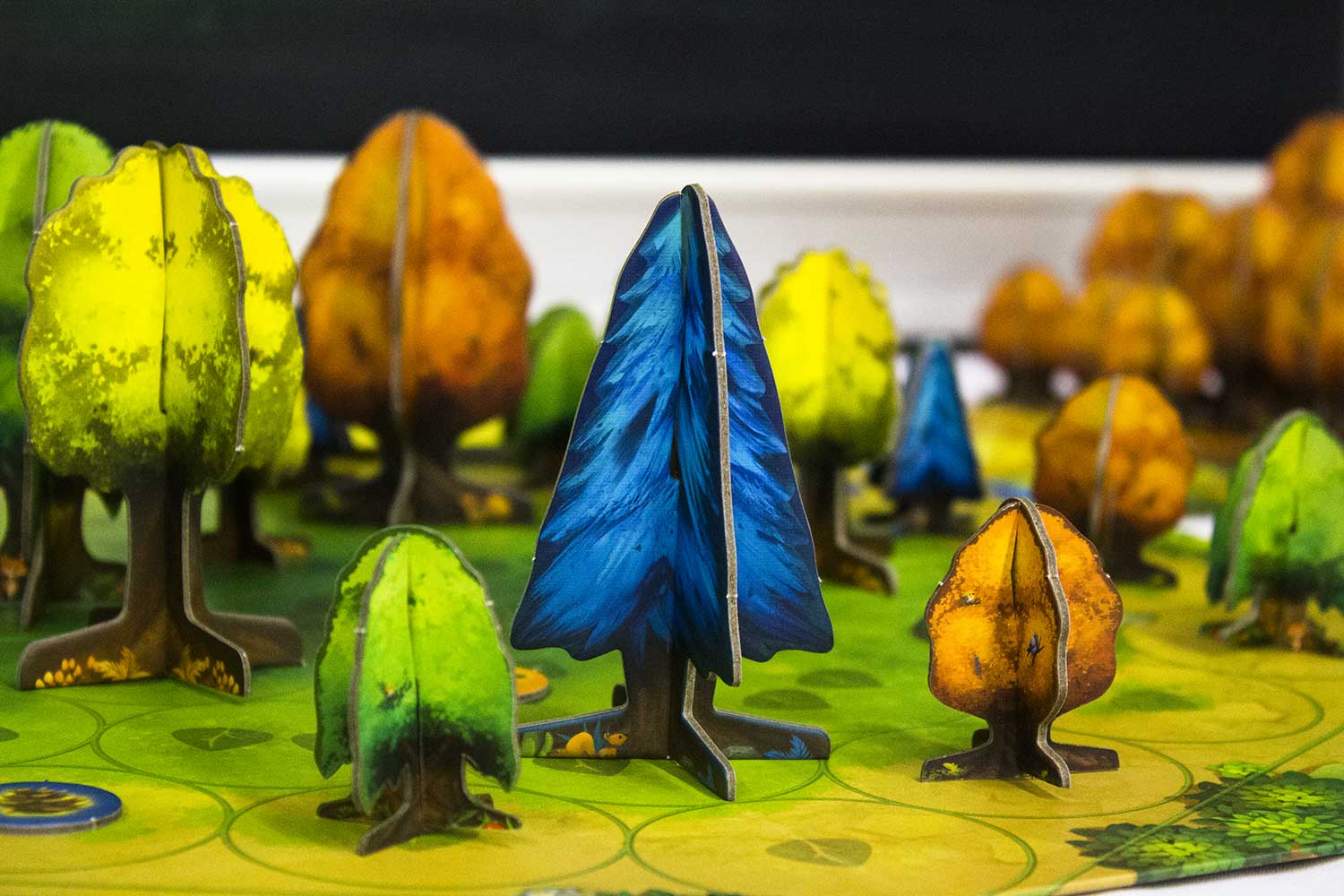 Auf der Waldlichtung herrscht reges Treiben, um die besten Plätze in der Sonne zu erlangen. Die verschiedenen Baumarten wollen alle wachsen und dafür benötigen sie das wertvolle Sonnenlicht. Doch je größer der Baum, desto größer auch sein Schatten, der die anderen Bäume am Wachstum hindert. Der spannende Wettkampf auf der Waldlichtung beginnt …Wir heißen euch in der Welt von Photosynthese willkommen! Pflanzt und formt den sich ständig im Wandel befindlichen Wald, indem ihr den richtigen Ort für eure Setzlinge wählt. Dabei begleitet ihr eure Bäume während ihres gesamten Lebens, vom Samen bis zur vollen Blüte. Passt aber auf, dass der Schatten der anderen Bäume nicht eure eigenen Gewächse gefährdet. Die wunderschönen Illustrationen, das realistische Spielgefühl und die dreidimensionalen Bäume machen Photosynthese zu einem ganz besonderen Erlebnis für alle Spielergruppen.