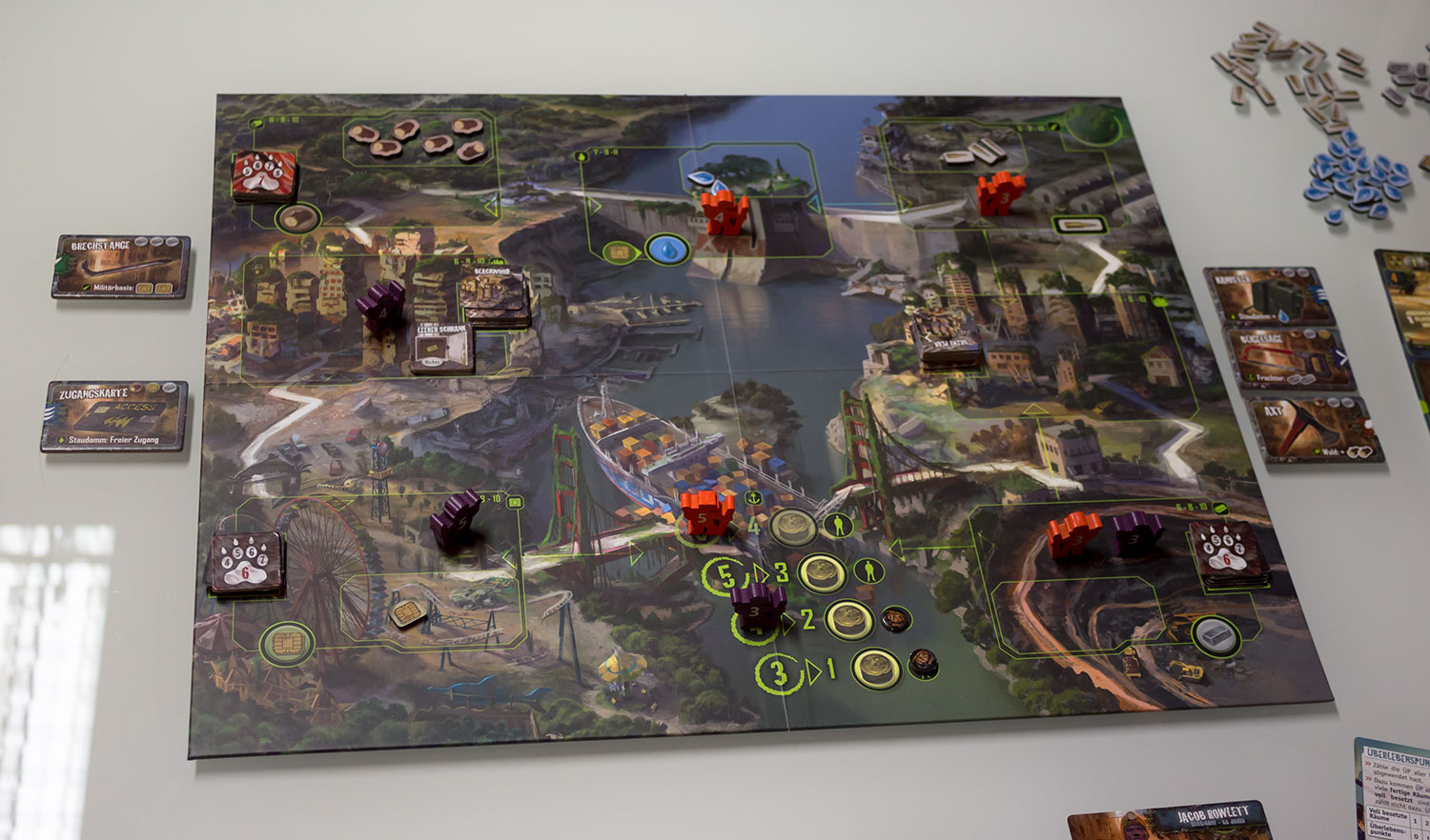 Bei Blackrock ist das Spiel vom Verlag “La boite de jeu” mit dem Namen Outlive erschienen. Es mischt Worker Placement Aspekte mit Survival Elementen, das in einer postapokalyptischen platziert wurde.
