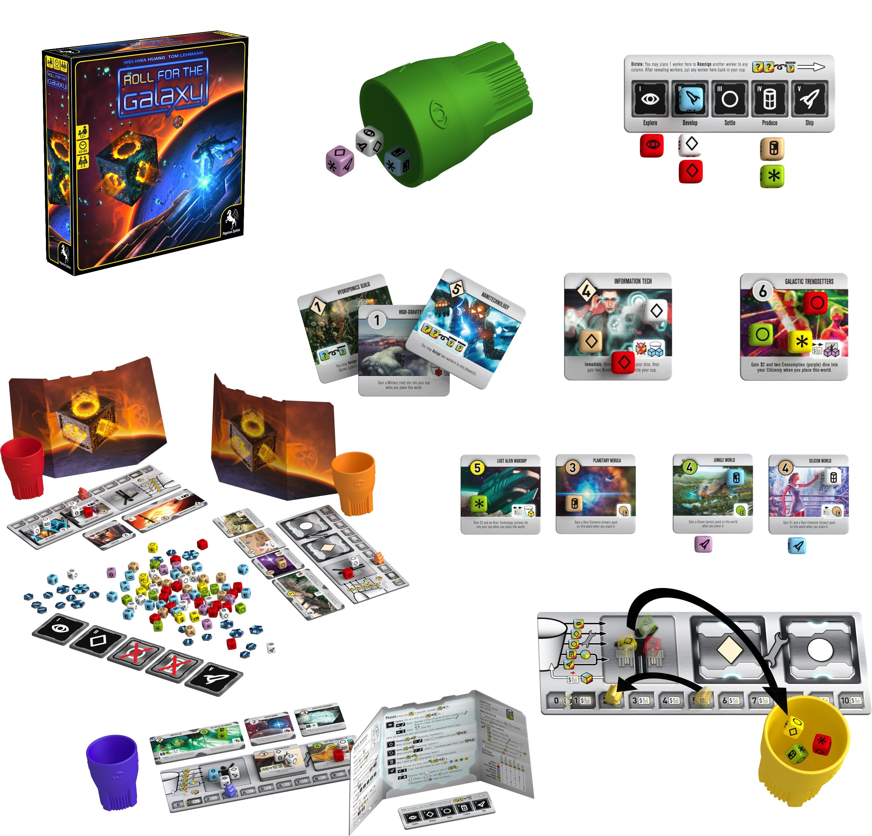 Das nächste Expertenspiel von Pegasus Spiele wird „Roll for the Galaxy“ sein. Das Spiel ist vom Autoren von „Race for the Galaxy“. Ende Mai soll es schon so weit sein, dann wird das Spiel veröffentlicht. Wer jetzt schon vorbestellt, erhält einen Spielplan dazu. Es wird für 49,99 € UVP zu kaufen sein.Das sagt der Verlag zu seinem Spiel: