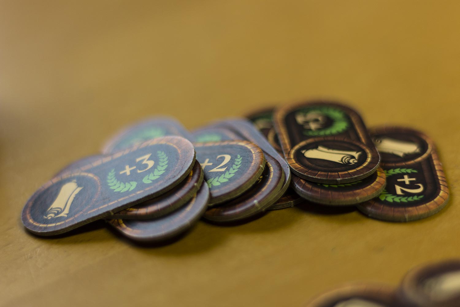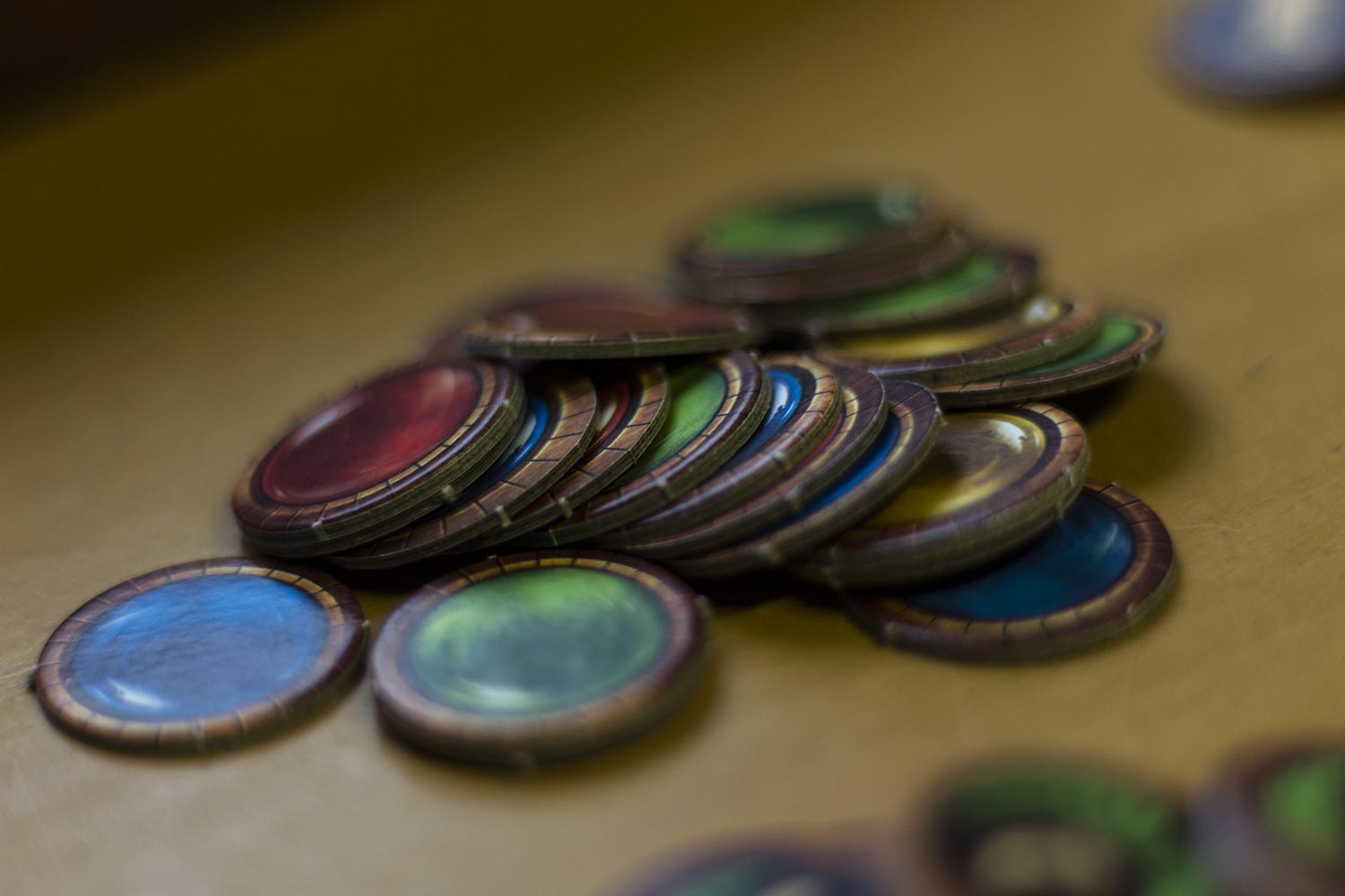 Jede Karte hat dabei drei Teilstücke eines Kreises, in den vier Grundfarben aufgedruckt. Wer es schafft seine Karten so "harmonisch" einzusetzen, dass ein gleichfarbiger Kreis entsteht, hat einen Sofortbonus und kann am Ende des Spiels punkten. es gibt zusätzlich noch viele weitere Möglichkeiten Punkte zu sammeln. Es können Machtpunktmarker oder Magiemarker gesammelt werden. Sets aus Magiemarkern bringen besonders viele Punkte. Zudem lassen sich über Bonusmarker und Gesetze ebenfalls Punkte sammeln. Zuletzt gibt es noch Angriffsmarker und Verteidigungsmarker.