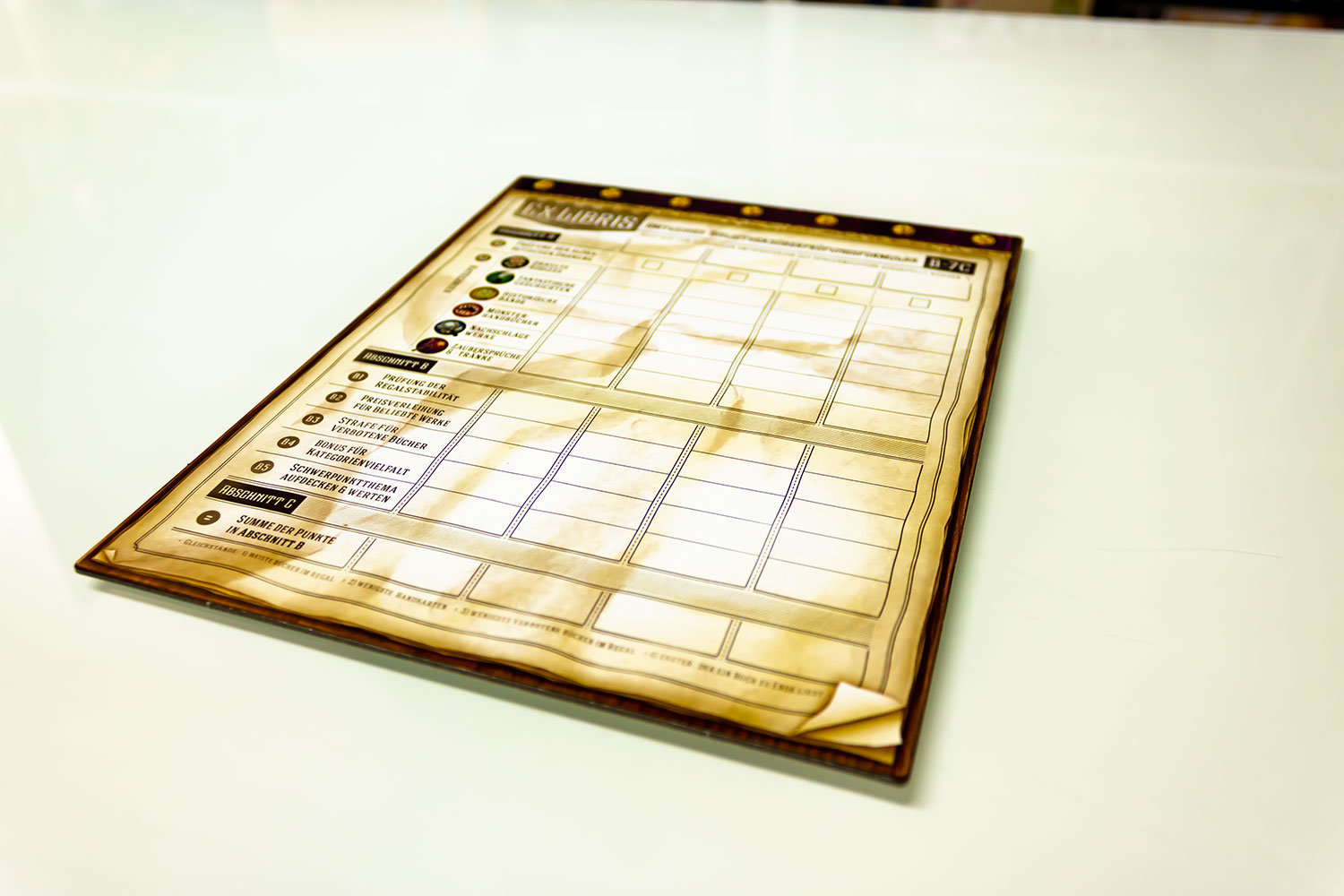 So halten sich die Spieler dran, die seltensten Wälzer einzusammeln. Dafür werden Assistenten in das Dorf entsendet. In nur einer Woche gilt es die beeindruckenden Werke zu sammeln. Danach kommt die unbestechliche Inspektorin um die Werke nach Kriterien wie Brettstabilität der Bücherschränke, alphabetischer Ordnung und Vielfalt zu bewerten.