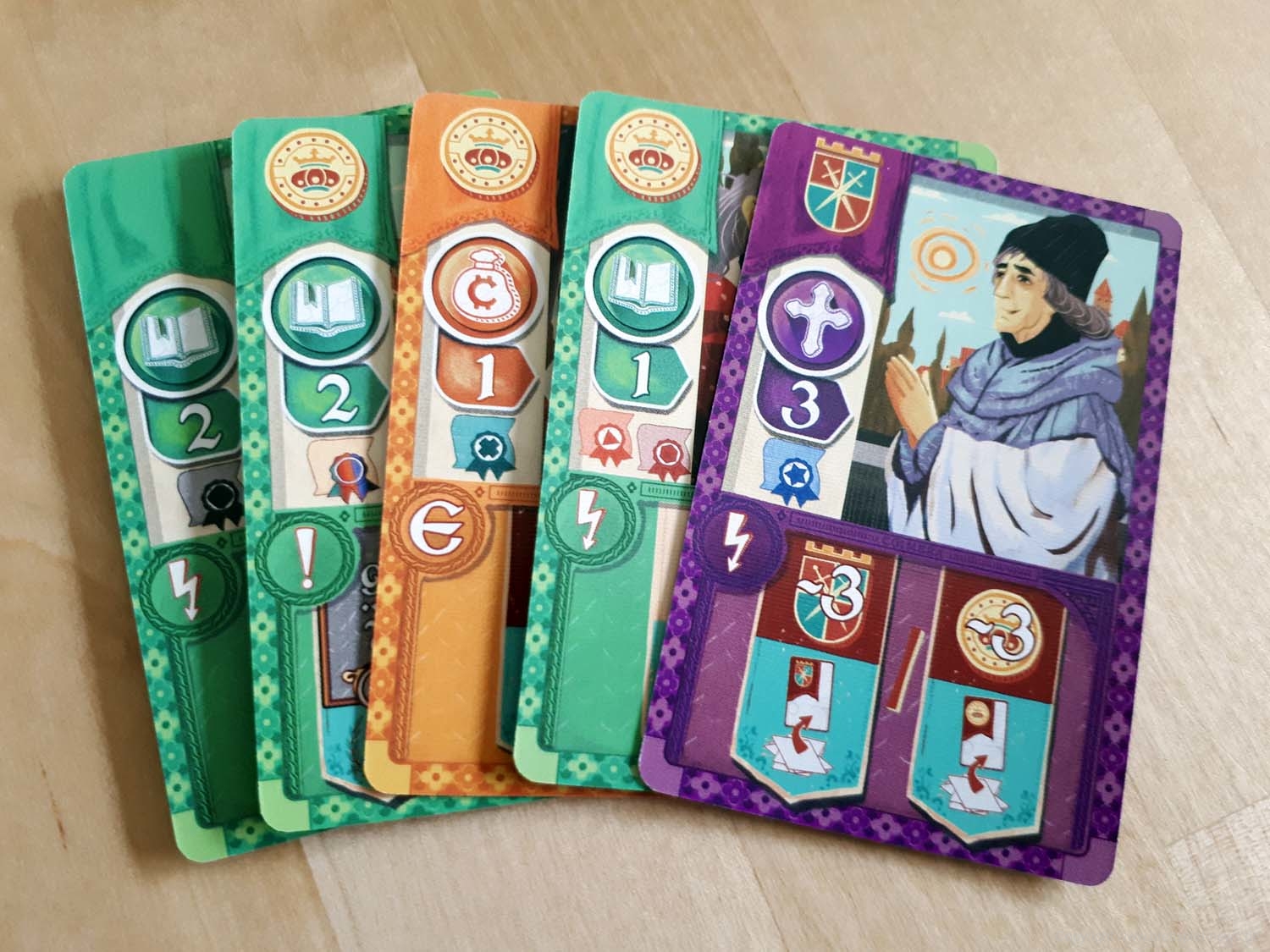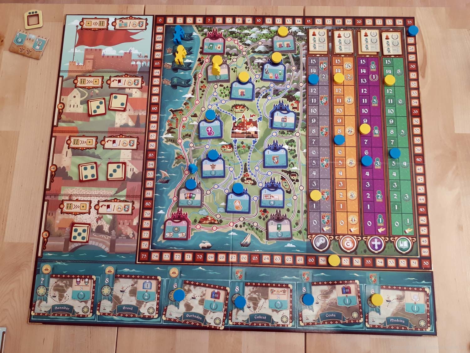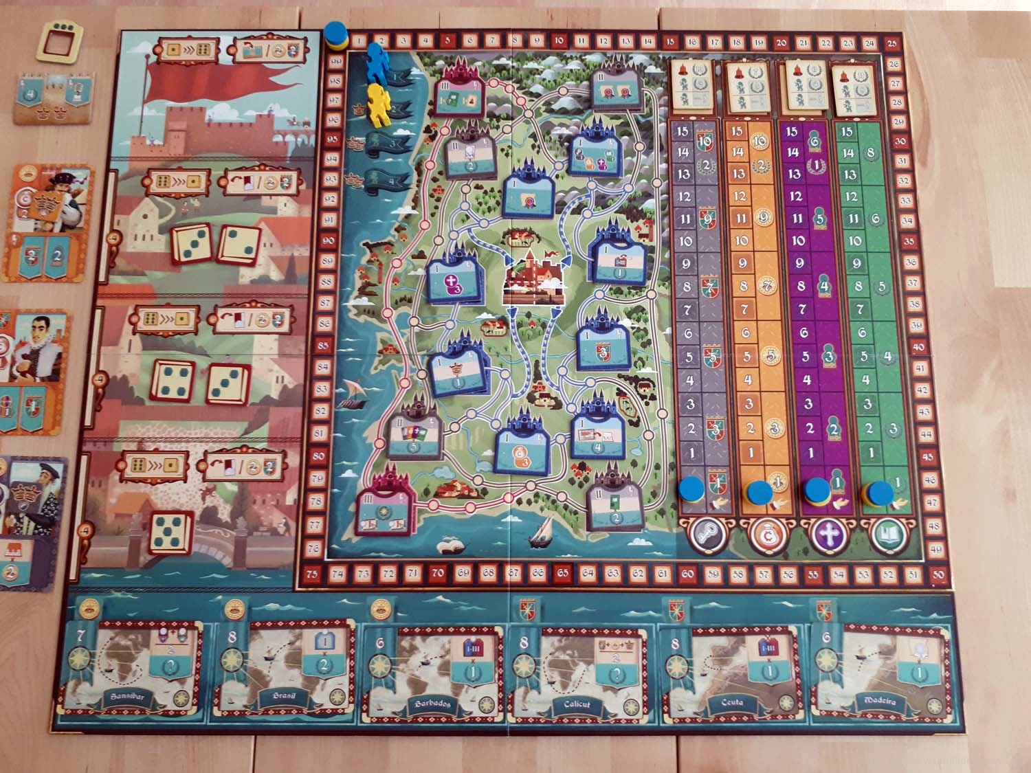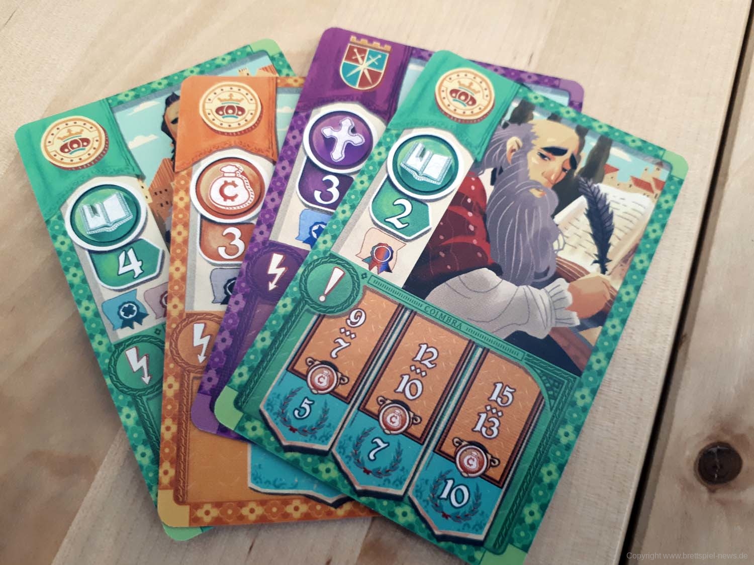 Es gibt viele Wege zum Sieg. Egal ob ihr euch darauf konzentriert, euer Münzeinkommen zu erhöhen, neue Wachen anzuheuern, den akademischen Fortschritt zu fördern, die Beziehungen zu den umliegenden Klöstern zu vertiefen oder die Entdeckungsreisen dieser Ära auszustatten - am Ende wird nur der erfolgreich sein, der die vielversprechendsten Synergien erkennt und für sich zu nutzen weiß. Darüber hinaus ist durch den innovativen Würfeleinsetzmechanismus ein hochspannendes Ringen um die hilfreichsten Einwohner Coimbras garantiert, da die Wahl jedes einzelnen Würfels sich nicht nur auf Zugreihenfolge und Bestechungskosten, sondern auch auf das eigene Einkommen auswirkt.