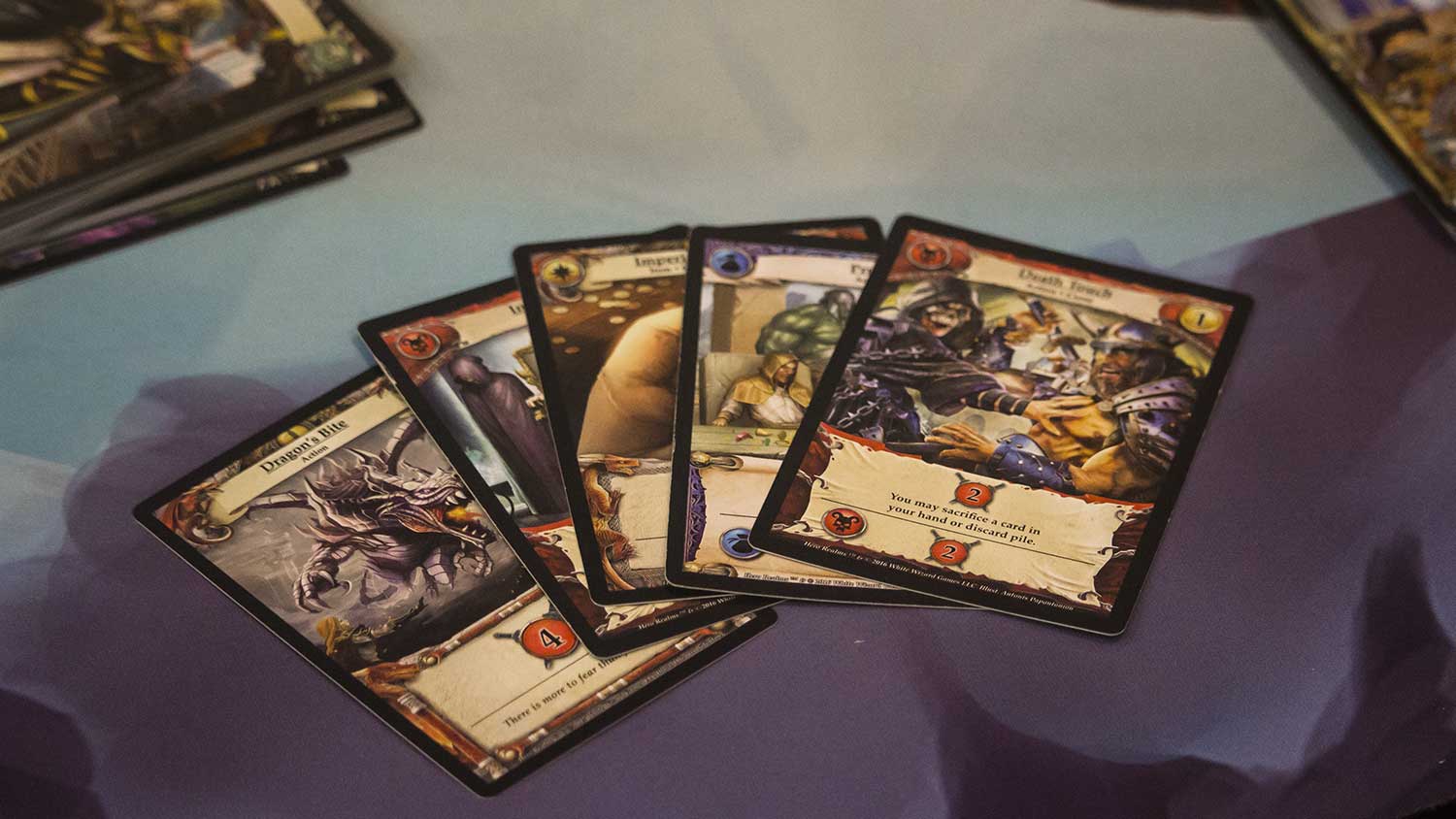 Auf der Spiel ‘17 in Essen gab es beim Verlag White Wizard Games die Möglichkeit Hero Realms anzuspielen. Das Spiel ist wie der Name und Verlag vermuten lässt ein Nachfolger von Star Realms mit neuen Aspekten und Fantasy Setting. Wer bisher wegen dem Weltraum bisher ein Bogen um das Spiel gemacht hat, sollte es sich nun unbedingt einmal anschauen.Neben dem neuen Kontext bietet Hero Realms vor allem die Möglichkeit das Spiel auf andere Art und weise zu spielen. Zum einen gibt es Helden mit eigenen Decks. Diese können Abenteuer bestreiten und erhalten im Laufe dieser Abenteuer Beute, die das Deck dauerhaft aufwertet. Die Helden haben auch noch individuelle Fähigkeiten. So spielt sich jedes der Helden-Decks etwas anders.