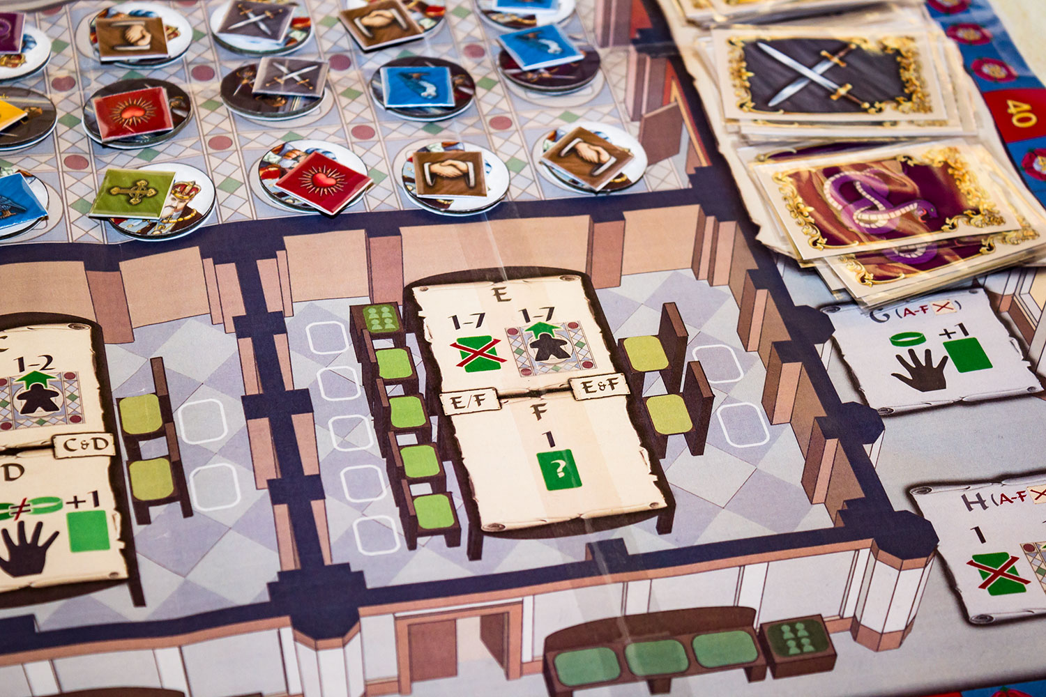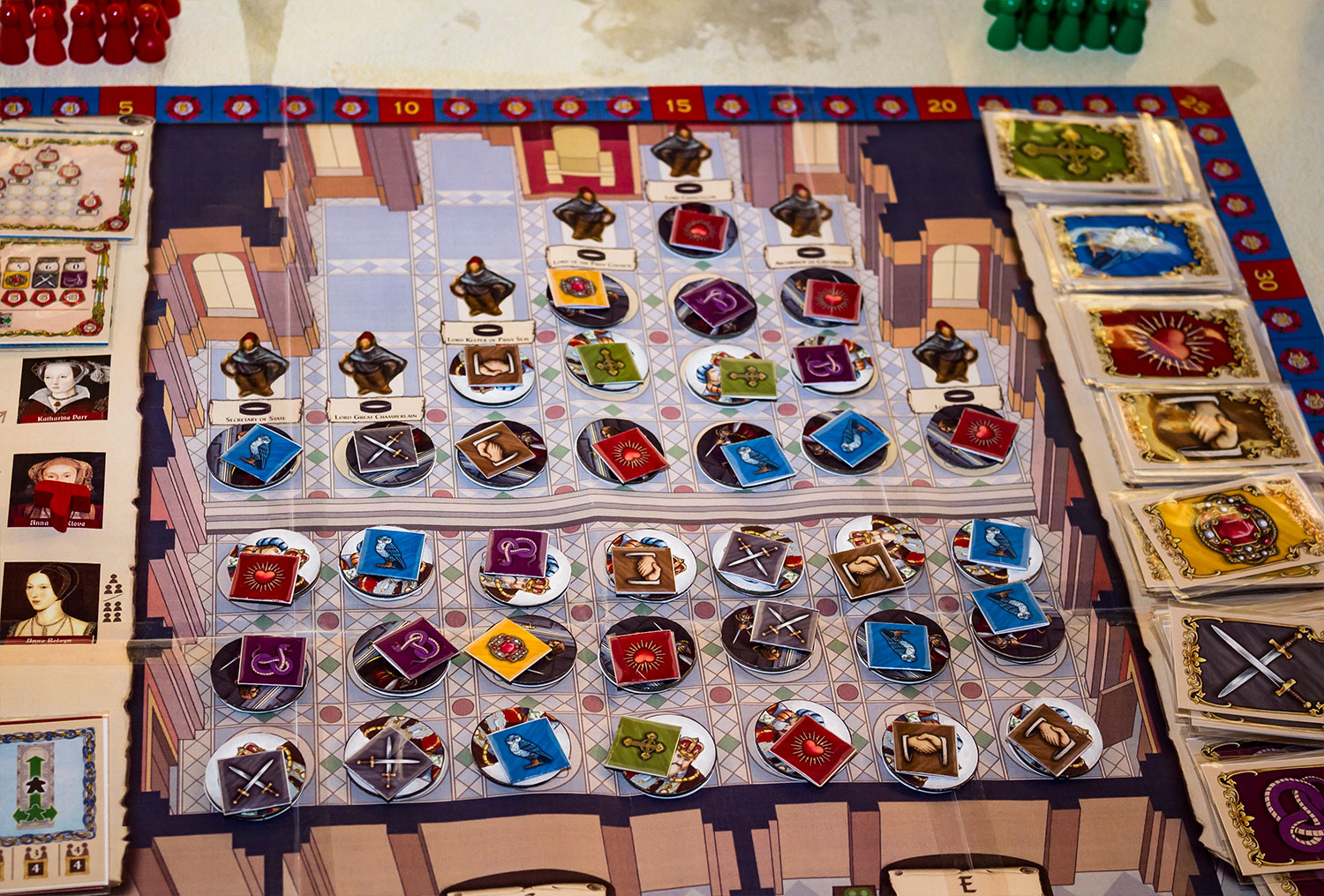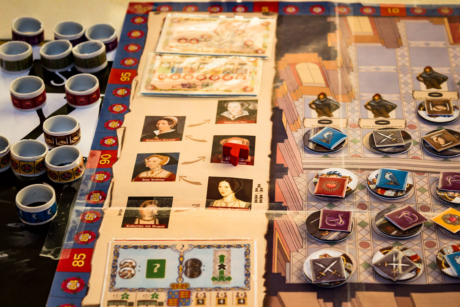 Die kommende Neuheit "Tudor" soll noch in der ersten Jahreshälfte 2018 in der Spieleschmiede starten und später bei Corax Games verkauft werden. In Ratingen war ein weiter entwickelter Prototyp zu sehen. Dieser warschon deutlich anders, als der am Corax Tag 2017 gezeigte Prototyp.