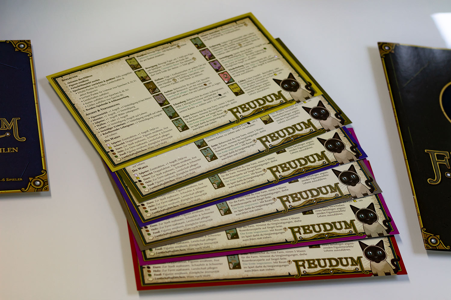 Feudum wurde 2017 mit mehr als 260.000 $ erfolgreich auf Kickstarter finanziert. Es ist dreisprachig und ist für 2-6 Spieler (mit Erweiterung). Das Spiel von Mark Swanson wurde nun ausgeliefert. Wir haben uns das Spielmaterial angeschaut und sind echt überrascht von der Produktionsqualität.