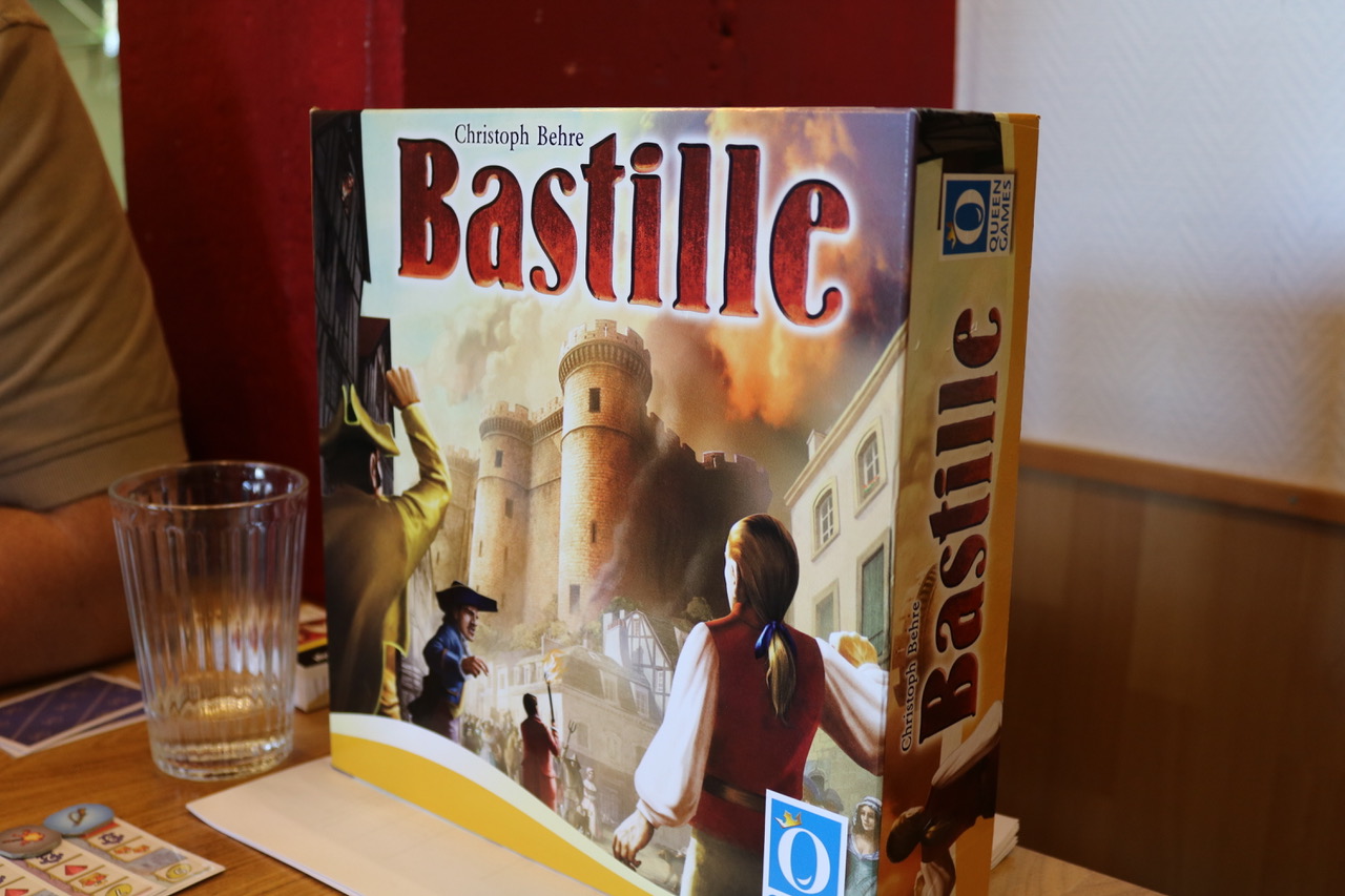 Skylands ist ein Familien Plättchen Legespiel, bei dem wir versuchen unsere zerstörten fliegenden Inseln wieder aufzubauen. Die Grafik erinnert im ersten Moment an Avatar und die Mechanik an Carcassonne und Puerto Rico. Reihum führen die Spieler eine der 4 Aktionen durch, doch Achtung, hier kommen auch alle anderen Spieler zum Zug, allerdings leicht abgeschwächt. Gespielt wird bis ein Spielertableau nur noch 1 freies Feld hat, dann kommt es zur Schlusswertung.Bastille ist ein Kennerspiel mit einfachen und sehr gut zugänglichen Mechanismen. Wir setzen unsere Schilde in der Stärke 1/1/2 und versuchen die „Mehrheit“ an einen der 7 möglichen Aktionen zu haben. Die Mehrheit (stärkstes einzelnes Schild) gibt uns einen Bonus oder einfach auch nur die bessere Auswahl. Die Felder sind begrenzt und so behalt man sich gut. Die Spieltiefe ist trotz „nur“ 7 Aktionen nicht zu unterschätzen und so muss man gut planen, die Schilde rechtzeitig aufwerten, um den besten Nutzen zu haben und dann bei der Zwischen / Endwertung gut dazustehen. Ein schönes Kennerspiel, das definitiv Potential hat!