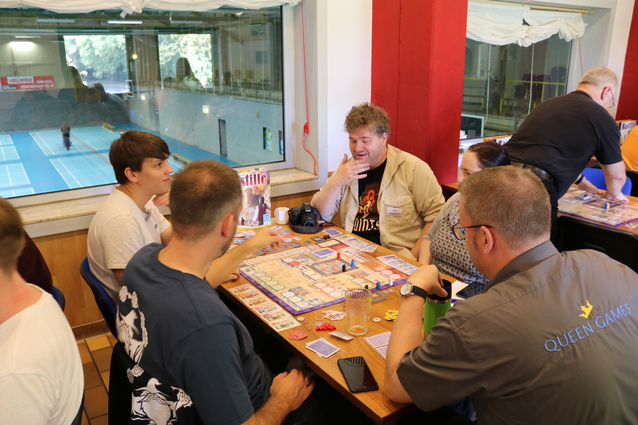 Queen Games hat zum Presse-Event und zur Vorstellung der Neuheiten für den Herbst zahlreiche Blogger eingeladen. Solche Events haben immer ein bisschen den Charm von Klassentreffen, man trifft die Kollegen der anderen Blogs, unterhält sich und tauscht sich aus, fachsimpelt und philosophiert. Doch sind wir ehrlich geht es uns allen nur um das EINE: Spielen, Spielen, Spielen. 32 Vertreter diverser YouTube Kanäle (z.B. Brettspielgeeks, BrettspielHero, Cliquenabend, BrettspielSuchties,…) und Blogs (z.B. Spielevater, Brettspielpoesie, Würfelmagier, Brettagogen, Spielbar, Spielkult, …) haben die Einladung dankend angenommen.