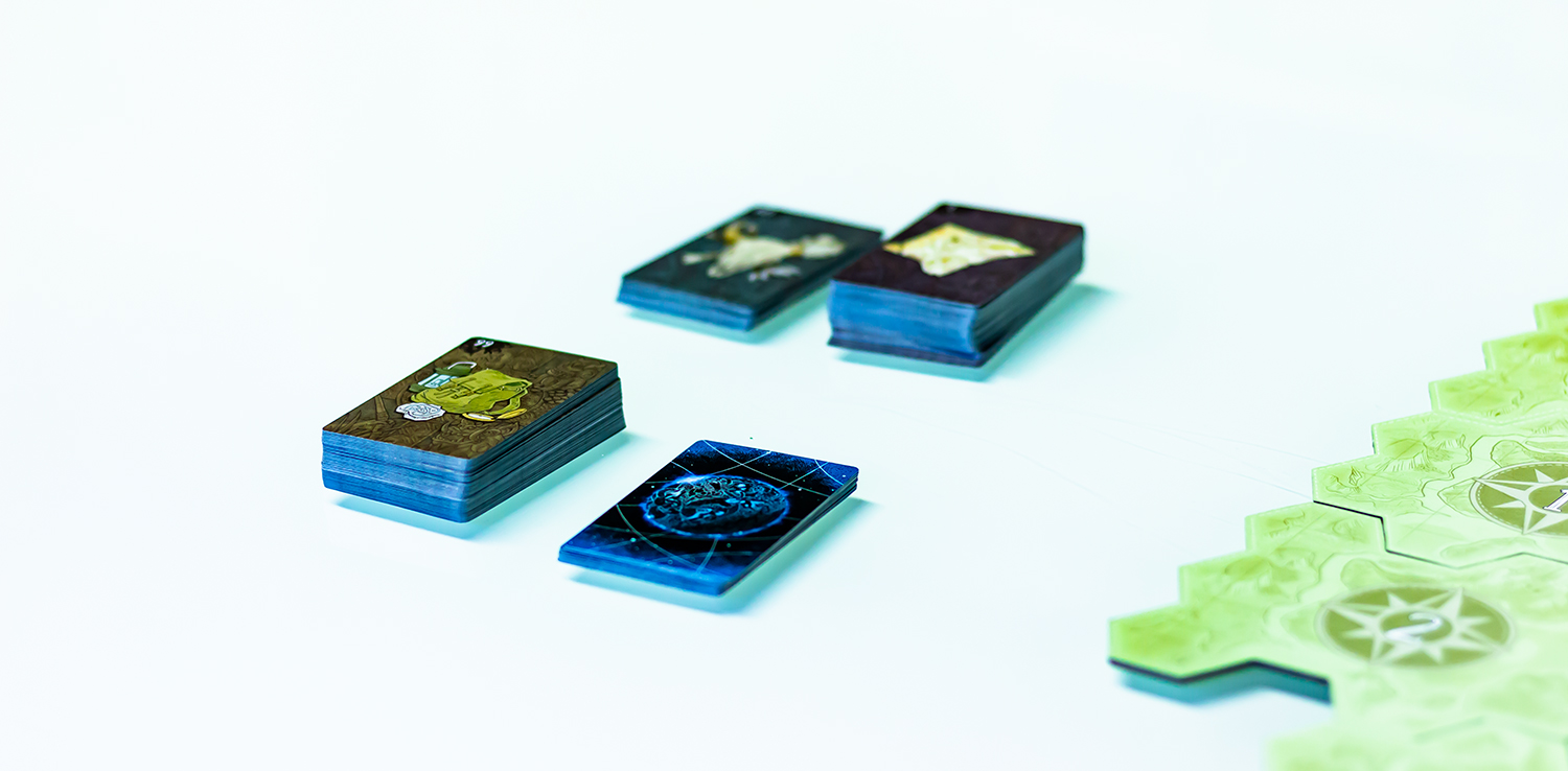Discover: Zu unentdeckten Landen ist ein neues Abenteuer von Fantasy Flight Games und zusammen mit KeyForge eines unser ersten Unique Games. Unique Games sind, kurz gesagt, ein komplett neuartiger Typus von Spielen. Unique Games können viele verschiedene Formen haben, aber eines haben sie gemeinsam: Jedes Exemplar des Spieles ist einzigartig. Das Exemplar, das ihr im Laden kauft, besteht aus anderen Komponenten als das Exemplar, das euer Freund gekauft hat.