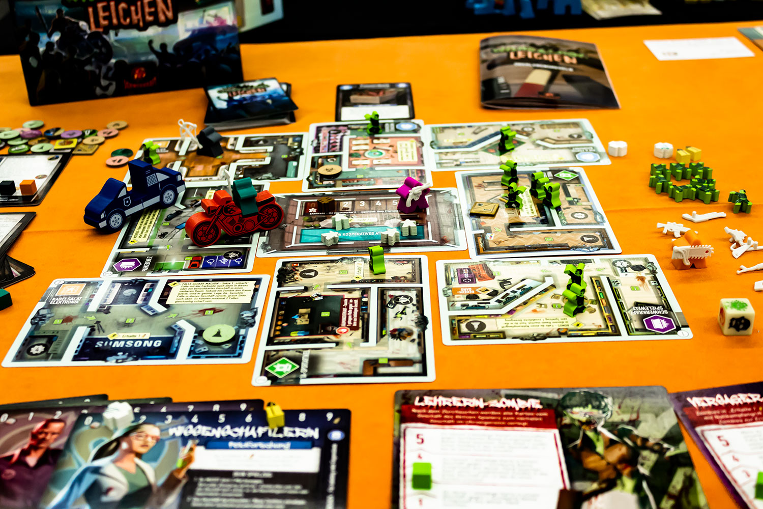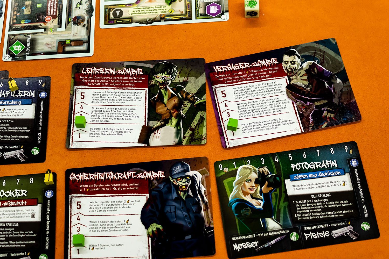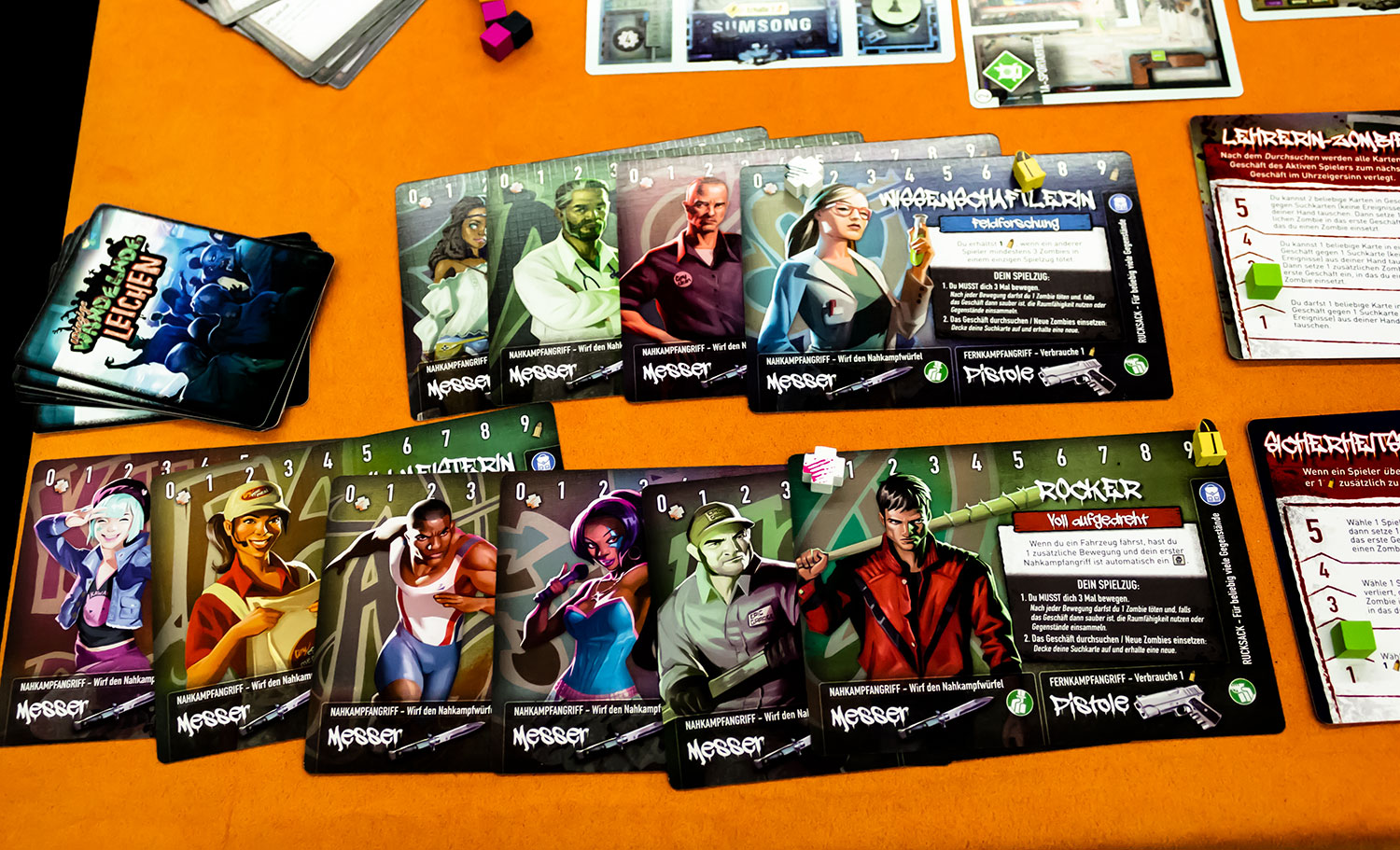 Die Box von „Winzige Wandelnde Leichen“ ist wirklich enorm klein und wenn dann das Spiel auf dem Tisch ist, kann man es kaum glauben. Das Zombiespiel für die Hosentasche bringt sehr viel Inhalt auf den Tisch und macht dabei noch eine richtig gute Figur.