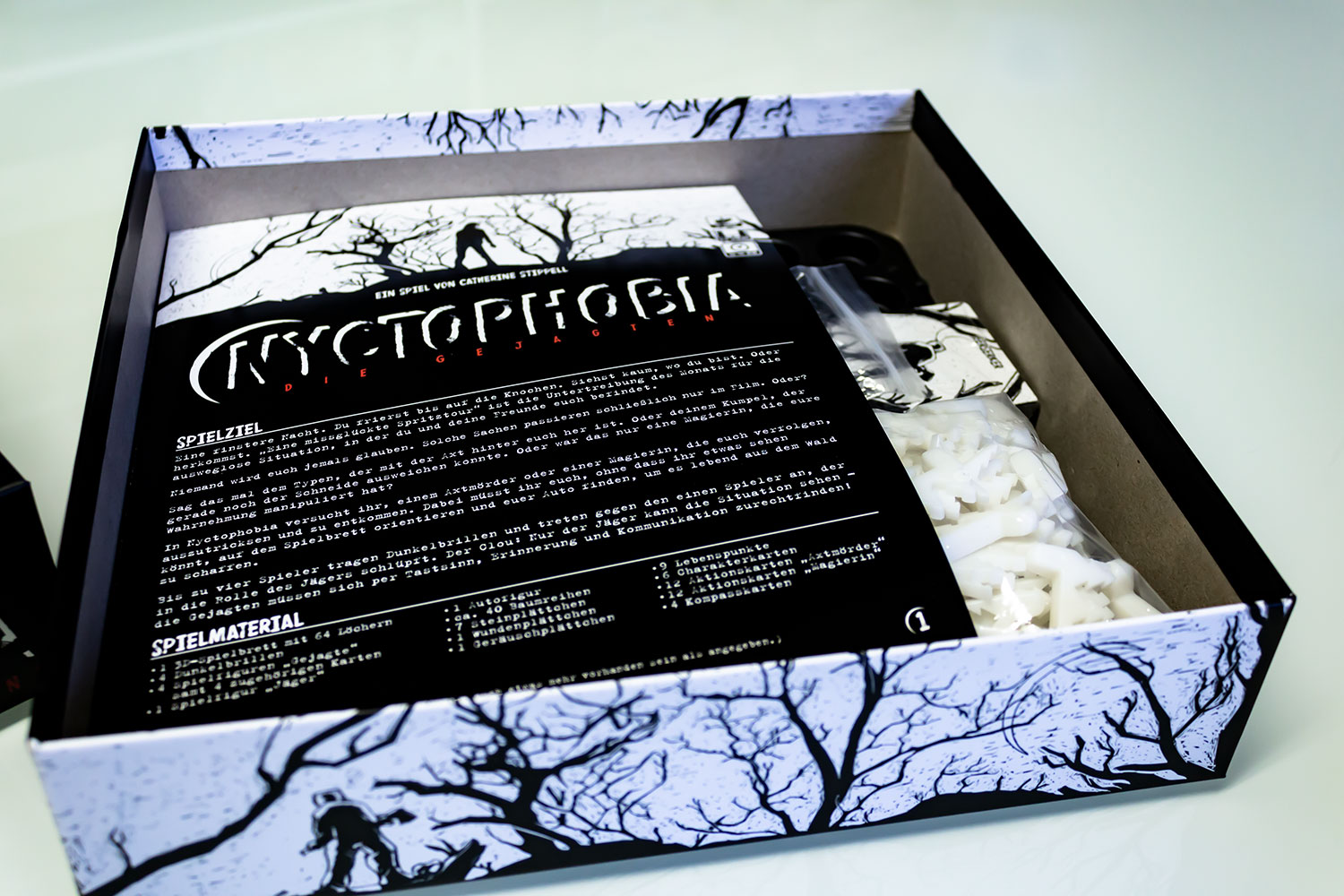 Wer weiß schon, welche Gefahren die Dunkelheit birgt? Stellt euch eurer Angst vor dem Dunklen in Nyctophobia und erlebt die Dunkelheit auf eine ganz neue Weise. Ab sofort ist Nyctophobia im Handel erhältlich.Das neue kooperative Spiel von Pandasaurus Games nimmt die Spieler mit auf eine Reise in die Orientierungslosigkeit und jagt ihnen spielerisch einen Schauer nach dem anderen über die Haut. Bis zu vier Spieler tragen Dunkelbrillen und treten gegen den einen Spieler an, der in die Rolle des Axtmörders schlüpft. Der Clou: Nur der Mörder kann die Situation sehen – die Gejagten müssen sich per Tastsinn, Erinnerung und Kommunikation, auf einem extra dafür entworfenen Spielbrett, zurechtfinden.
