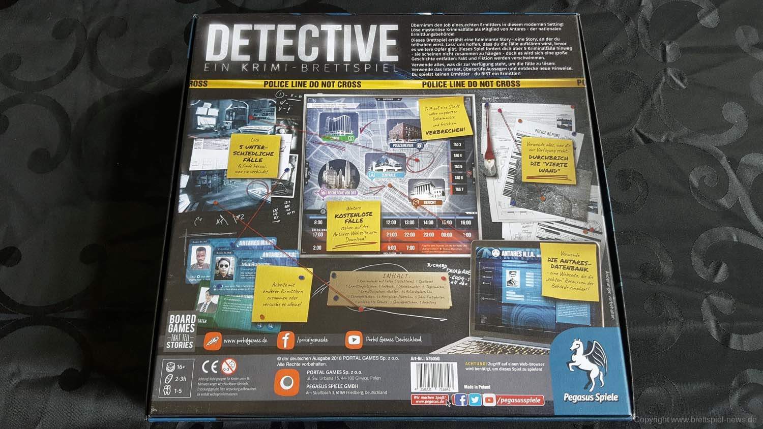 Die gefragte Neuheit "Detective" von Portal Games ist nun im Handel verfügbar. Wir haben ein Exemplar und zeigen erste Bilder davon. Das Spiel richtet sich an Spieler, ab dem 16 Lebensjahr und ist mit 1-6 Spielern spielbar. Eine Partie soll 120 Minuten oder länger dauern.