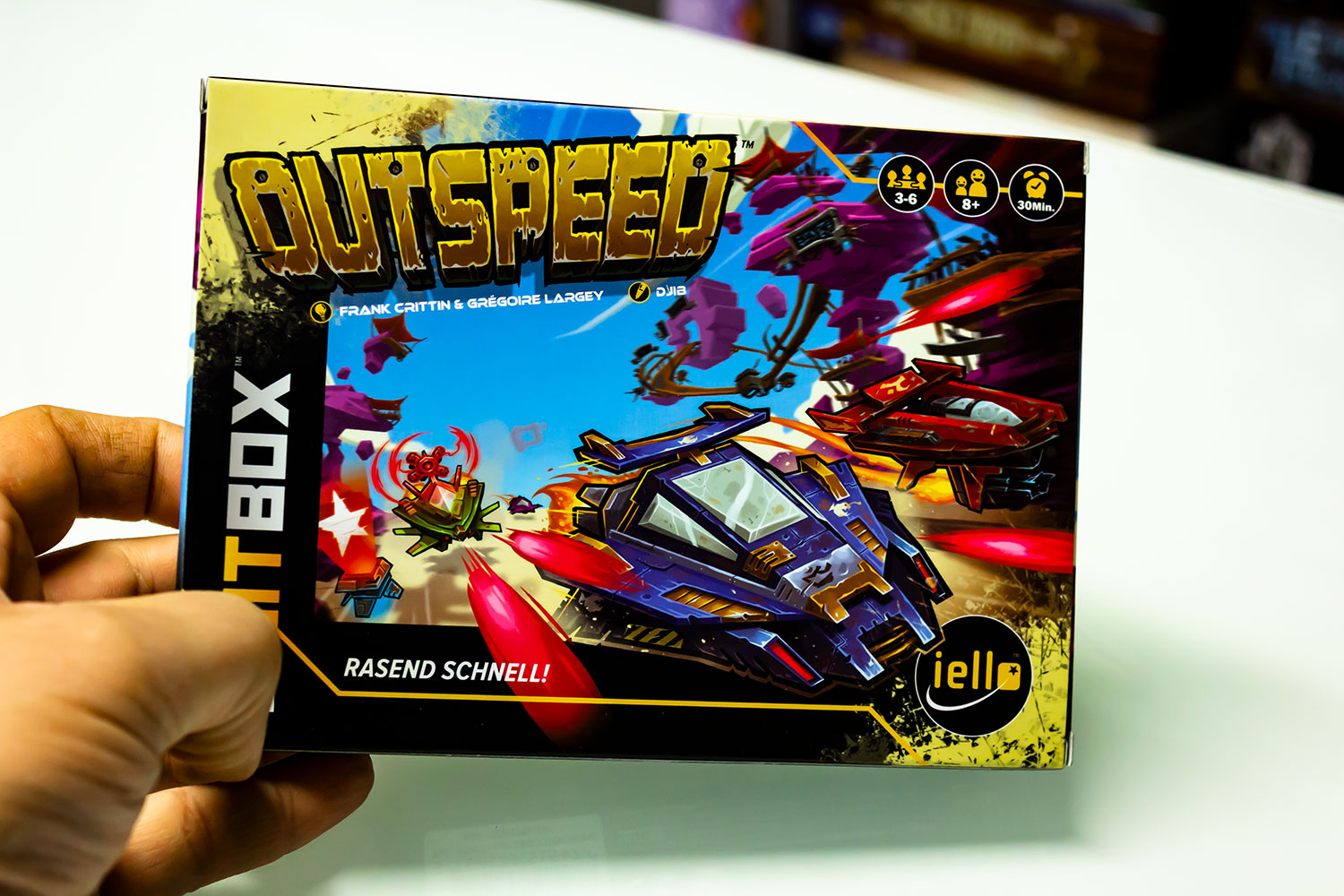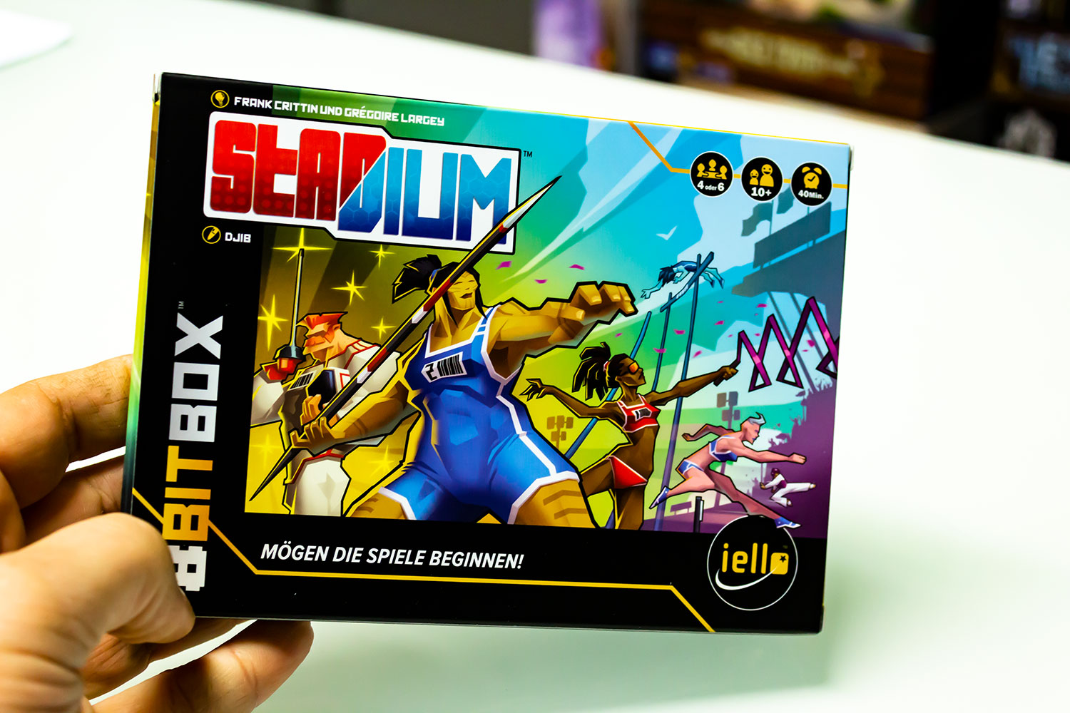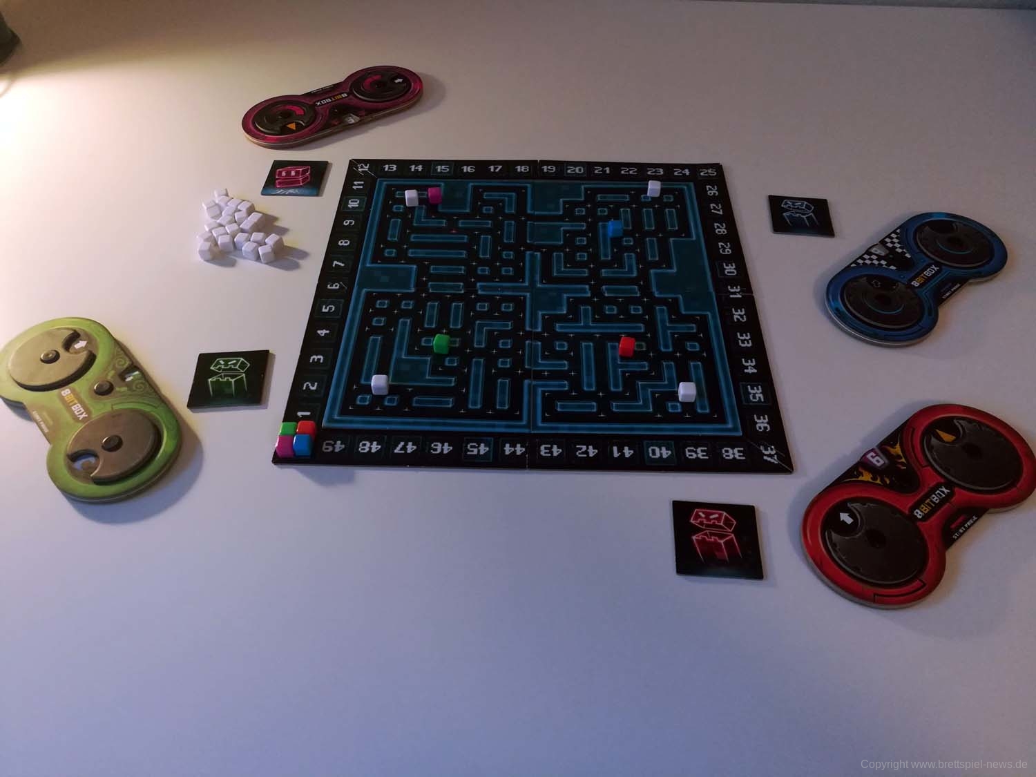 Das recht einfach zu sielende "8BITBOX" von iello hat den Weg zu uns gefunden und wir wollen das Spielmaterial zeigen. Das Spiel besteht aus Mini-Spielen die sich mit Controlern steuern lassen und richtet sich an 3-6 Spieler. Eine Partie dauert ca. 15-40 Minuten. Der Preis liegt aktuell etwas über 33 €. Das Spielmaterial - so viel können wir schon sagen ist sehr hübsch und extrem innovativ.Spielerisch sollte eher eine Familienspiel zu erwaren sein.