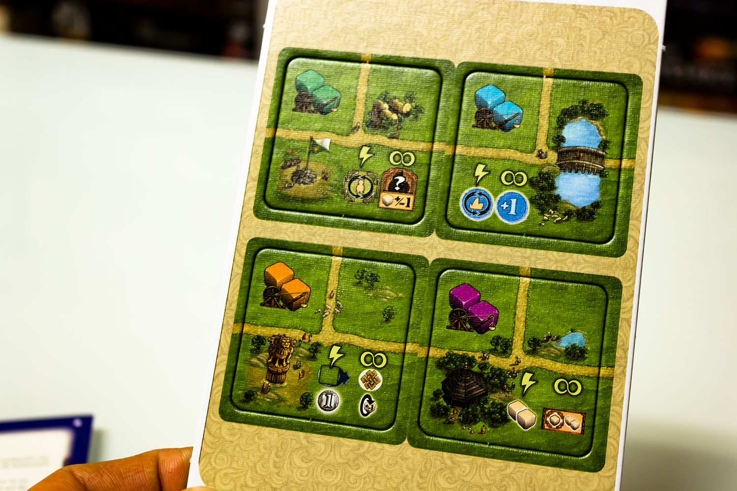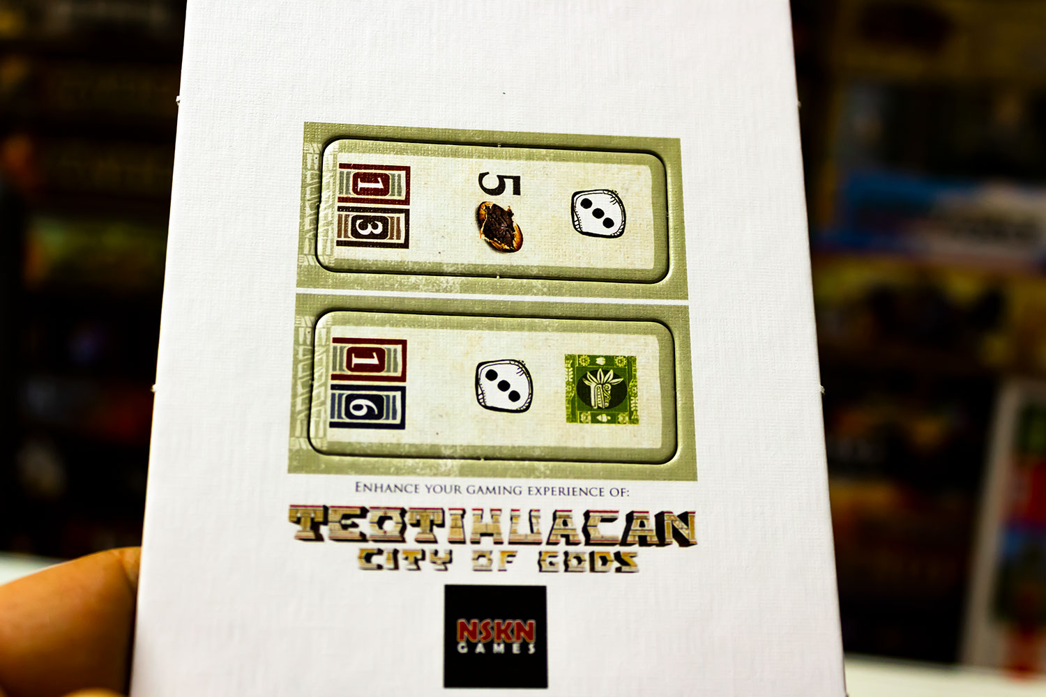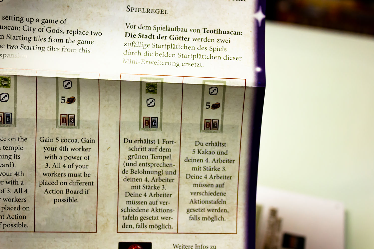 Die erste fünf Tage sind schon rum und es befanden sich in dem Kalender bereits zahlreiche spannende kleine Erweiterungen zu den Spielen wie „Luxor“, „Krieg der Knöpfe“, „Menara“, „Spring Meadow“ und jetzt ganz neu „Teotihuacan“.