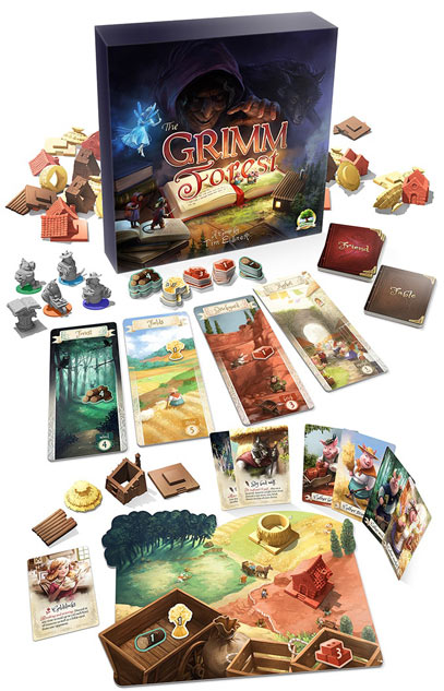 Kannst du deine Freunde überlisten und drei Häuser vor allen anderen bauen? Sichere dir die Hilfe der Märchenfiguren, meide jene gewieften Bösewichte, die im Walde lauern und werde der beste Baumeister im Märchenland!In Tim Eisners Grimms Wälder liefern sich 2 bis 4 Spieler einen märchenhaften Bauwettbewerb. Du bist eine Nichte oder ein Neffe der legendären drei kleinen Schweinchen und - in Anlehnung an deren abenteuerliche Geschichte - versuchst du als erstes drei Häuser aus Stroh, Holz oder Stein zu bauen. Im Geheimen planst du jede Runde, wo du die begrenzt verfügbaren Ressourcen sammeln gehst und im Anschluss baust du an deinen Hütten weiter.