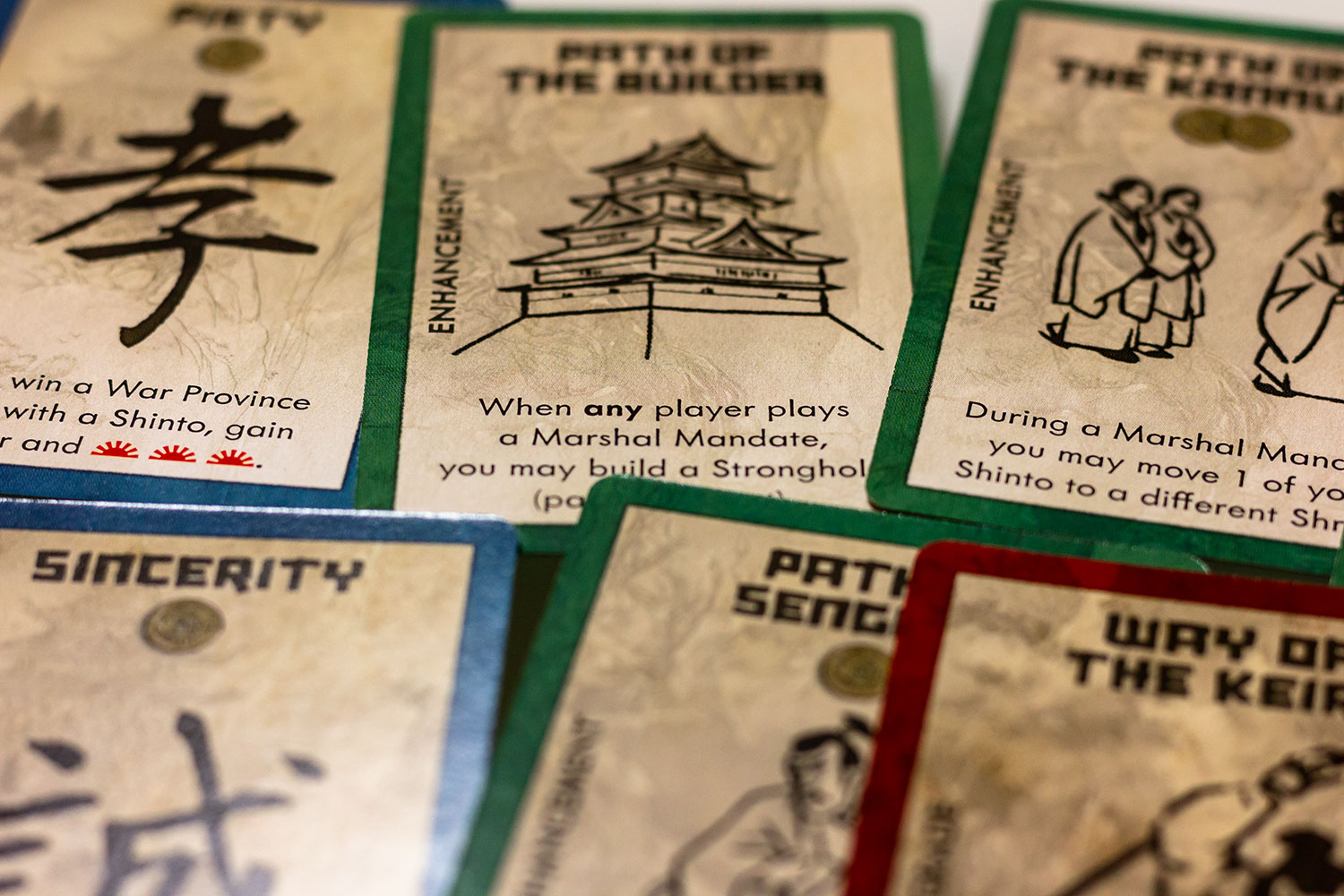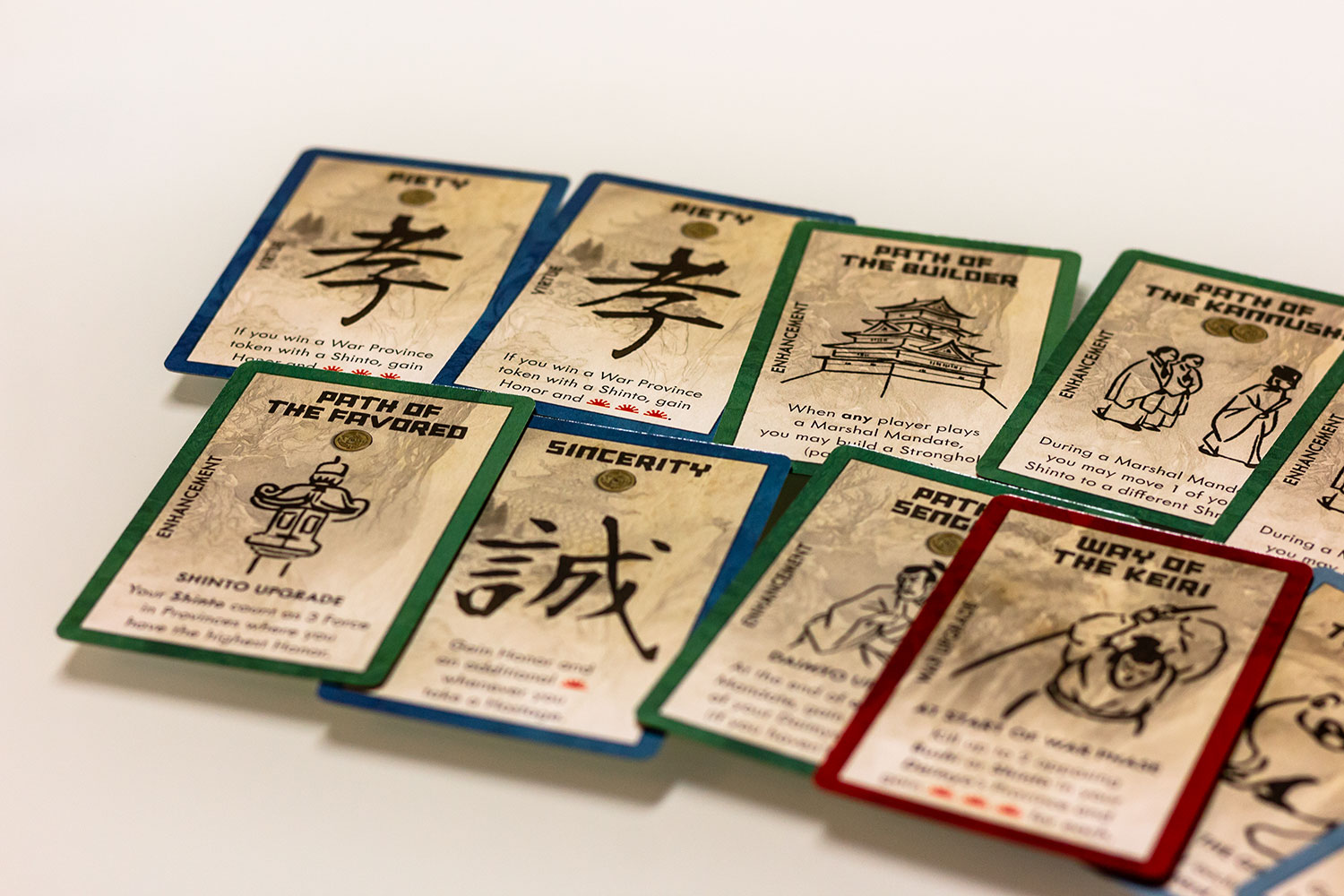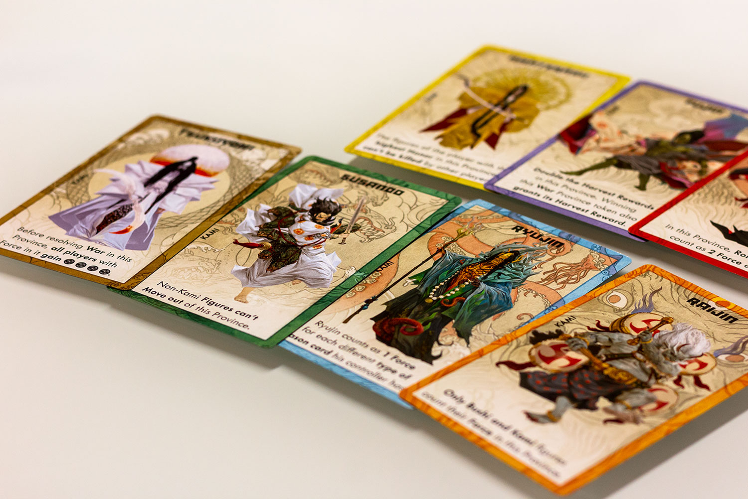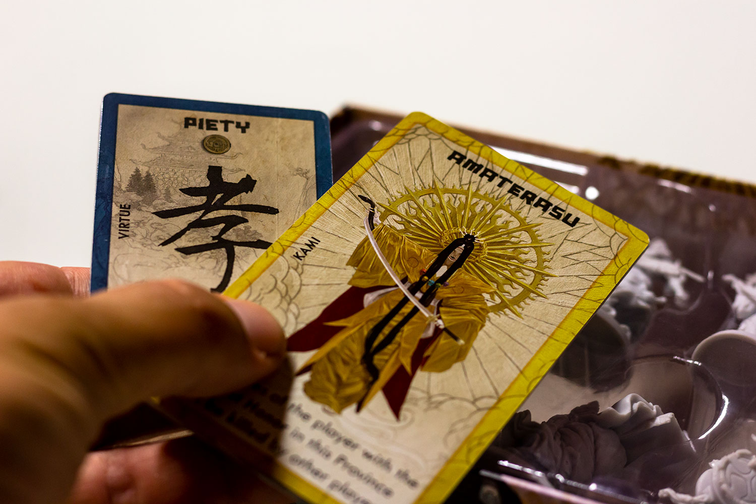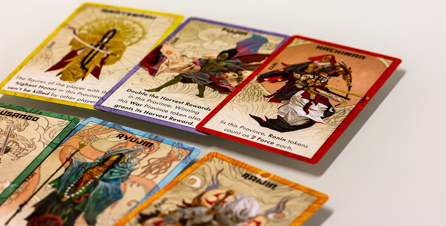 Jeder Kami im Spiel beginnt auf dem Brett. Wenn du ein Shinto in den Tempel schickst, um sie anzubeten, erhältst du die Kontrolle über die Figur auf dem Brett, indem du deiner Armee eine Kraft für Schlachten und Ernten hinzufügst. Du erhältst auch die Kontrolle über die Kami-Power-Karte, die einen besonderen Bonus für die Provinz bietet, in der sich die Kami befinden. Ihr Shinto zeigt ihre wahre Hingabe, um die ultimative Macht zu erlangen. Kein Spiel von Rising Sun wird so sein wie das andere!