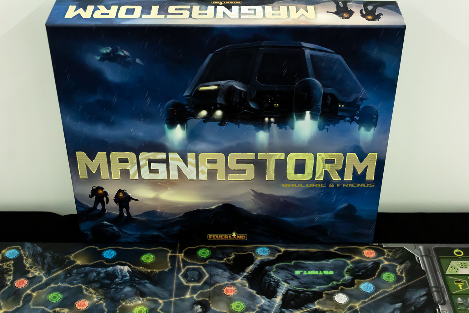 Ende 2018 war „MAGNASTORM“ erschienen und dann schnell ausverkauft. Anfang 2019 war dann endlich eine neue Auflage verfügbar. Wir wollen nun das Spielmaterial des strategischen Spiels zeigen. Das richtet sich an 2-4 Spieler, dauert rund 70-100 Minuten und ist als mittel komplex anzusehen.