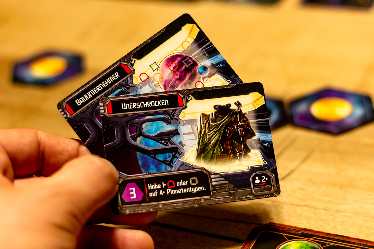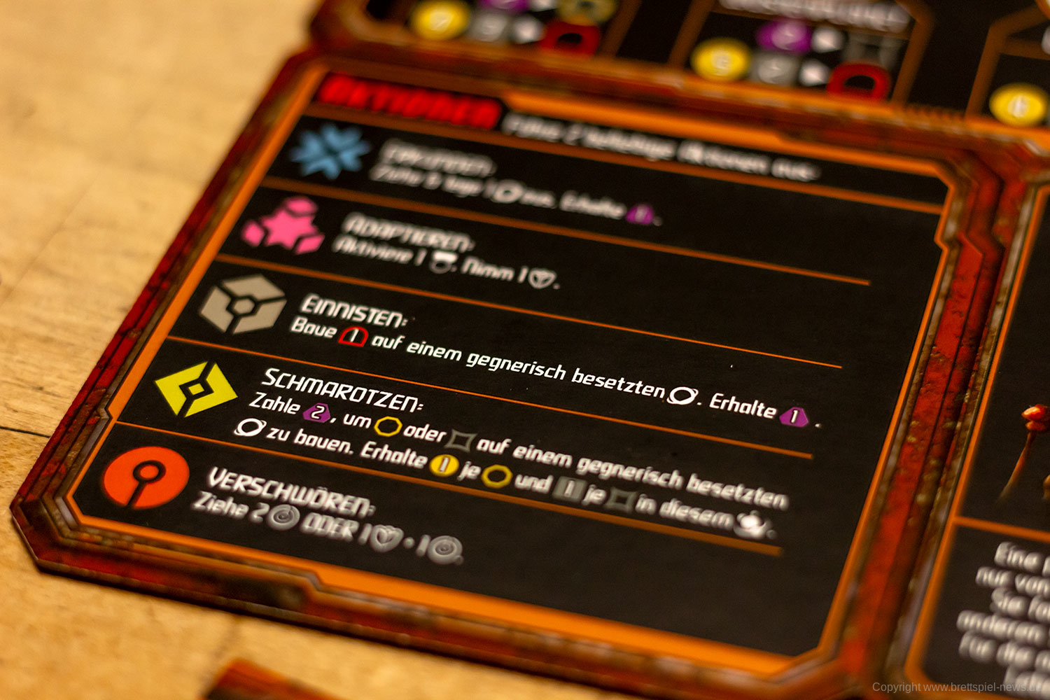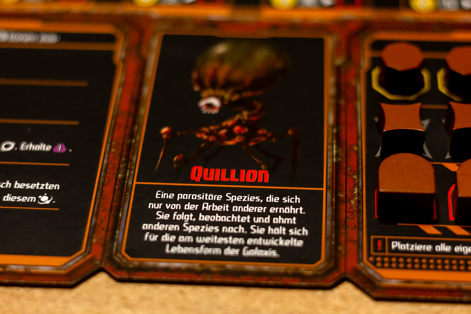 Wo ich etwas Bauchgrummeln habe, ist das Balancing. Im Spiel zu dritt hatte ich mit einer Schmarotzer-Fraktion jederzeit das Spiel im Griff und habe am Ende deutlich gewonnen. Das ist bei den erfahrenen Mitspielern ein extrem seltenes Ergebnis. Entweder habe ich perfekt gespielt (das will ich gerne glauben 😉), oder das Spiel ist nicht ausgewogen bezogen auf die Rassen und deren Kombinationsmöglichkeiten.