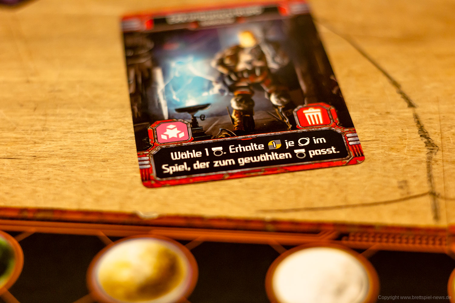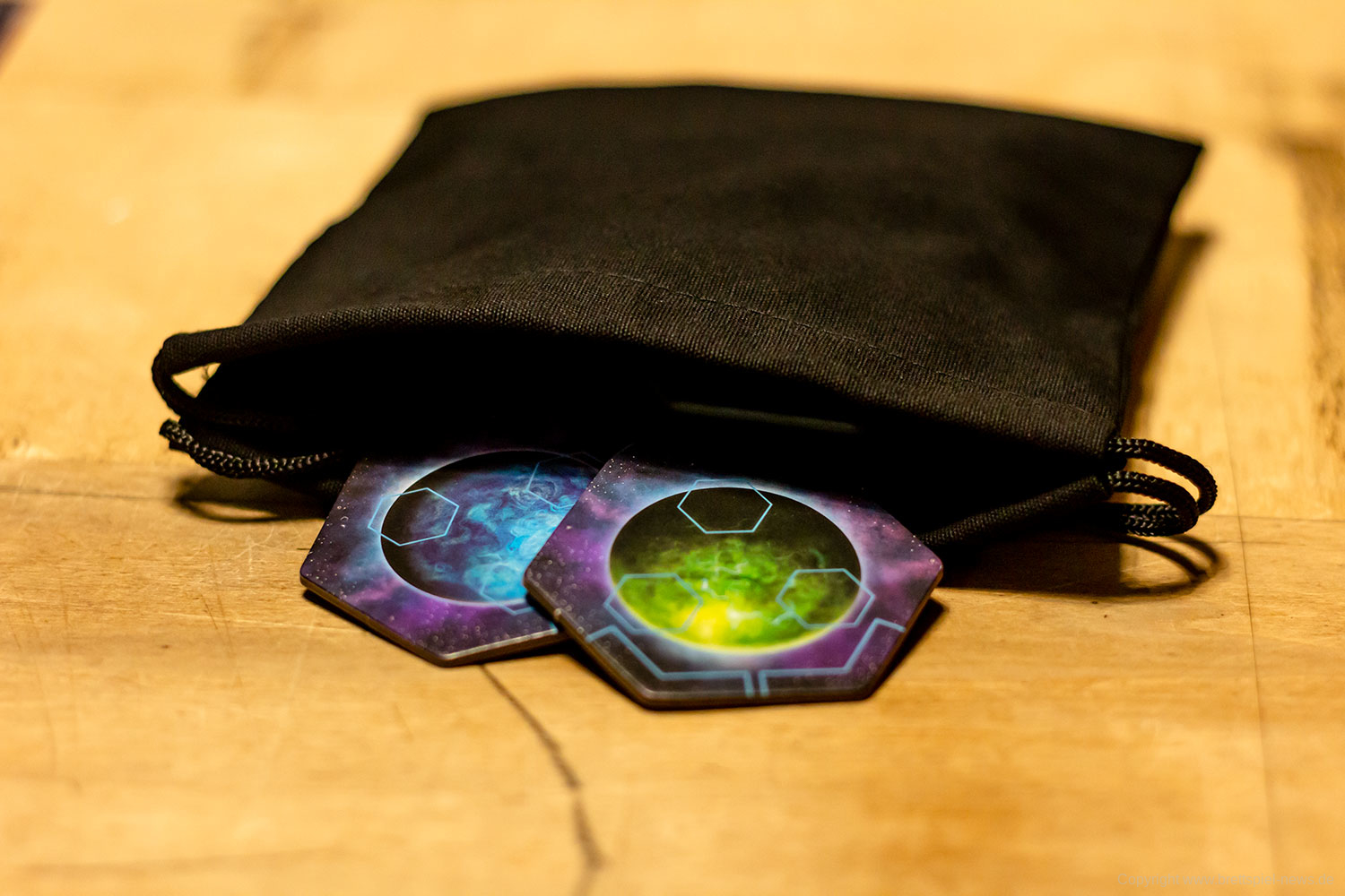 Das Spiel hat ein ordentliches Material und ein gutes Inlay, selbst die optionale Erweiterung findet darin Platz. Das Spielmaterial hat mich an ein Terra Mystica erinnert, weil die drei Holzformen etwas daran erinnern. Es ist 2019 kaum noch möglich innovative Holzformen zu kreieren, die sinnvoll produzierbar sind.
