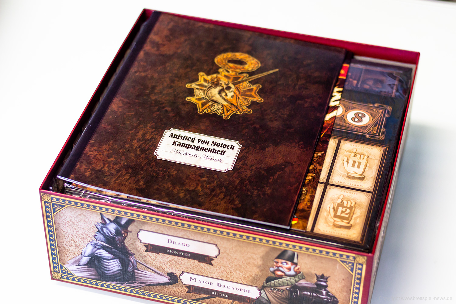 Aufstieg von Moloch ist ein spannendes Abenteuer, das in mehreren Kapiteln gespielt wird. Die Geschichte kann sich in eine Vielzahl verschiedener Richtungen entwickeln, um sicherzustellen, dass keine zwei Kampagnen jemals gleich sind. Ein Spieler übernimmt dabei die Rolle der Nemesis, die den Kult lenkt, während sich die anderen Spieler als Gentlemen des Einhorn-Clubs gegen ihn stellen. Zwischen den einzelnen Kapiteln erhalten die Spieler die Möglichkeit, die Gaben und Spezialfähigkeiten ihrer Gentlemen zu verbessern. Sie werden alle zusätzliche Hilfe brauchen, die sie bekommen können, um es mit den Dienern der Nemesis aufzunehmen.