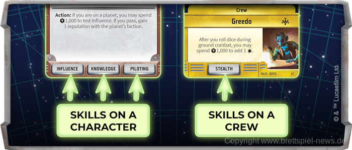 Egal was der Job ist, ihr braucht spezifische Fähigkeiten, um mit dem Leben und allen Credits davonzukommen. Jeder Pilot hat Kompetenzen, die am unteren Rand seiner Karte aufgeführt sind, und wenn ihr Crewmitglieder sammelt, fügt ihr ihre Fähigkeiten zu eurem Repertoire hinzu. Diese Fähigkeiten sind die Werkzeuge, die ihr bei den Jobs einsetzen werdet, um euren Erfolg sicherzustellen.