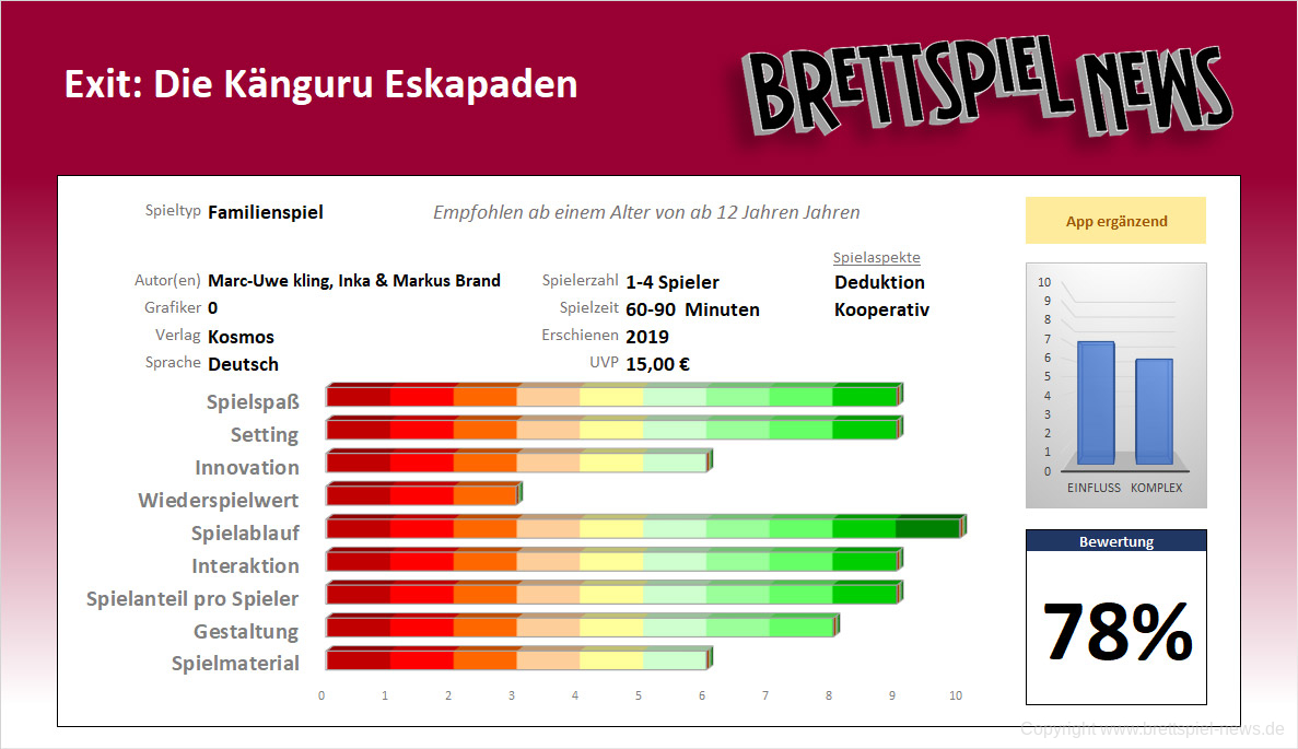 „Exit Spiele“ sind Titel, die sich einmal spielen lassen und oftmals wird das Spielmaterial dabei zerstört. Allein oder in der Gruppe bis zu viert, lässt sich ein Escape-Room ähnliche Spielprinzip auf den Tisch zaubern. Ein Exemplar kostet 14,99 € und bietet eine Spielzeit von 45-90 Minuten.