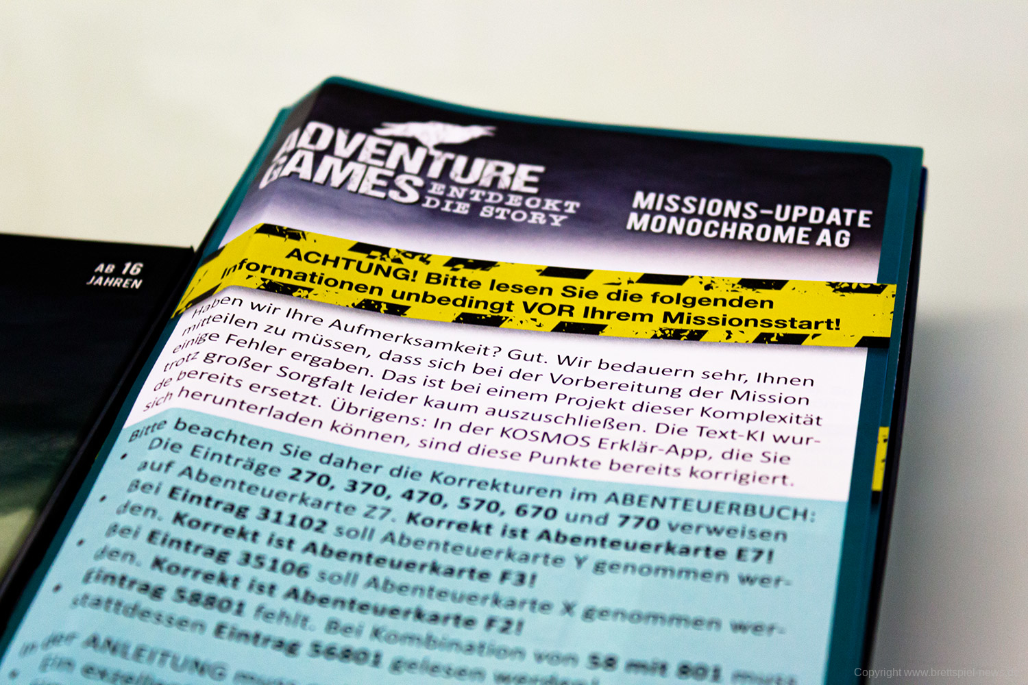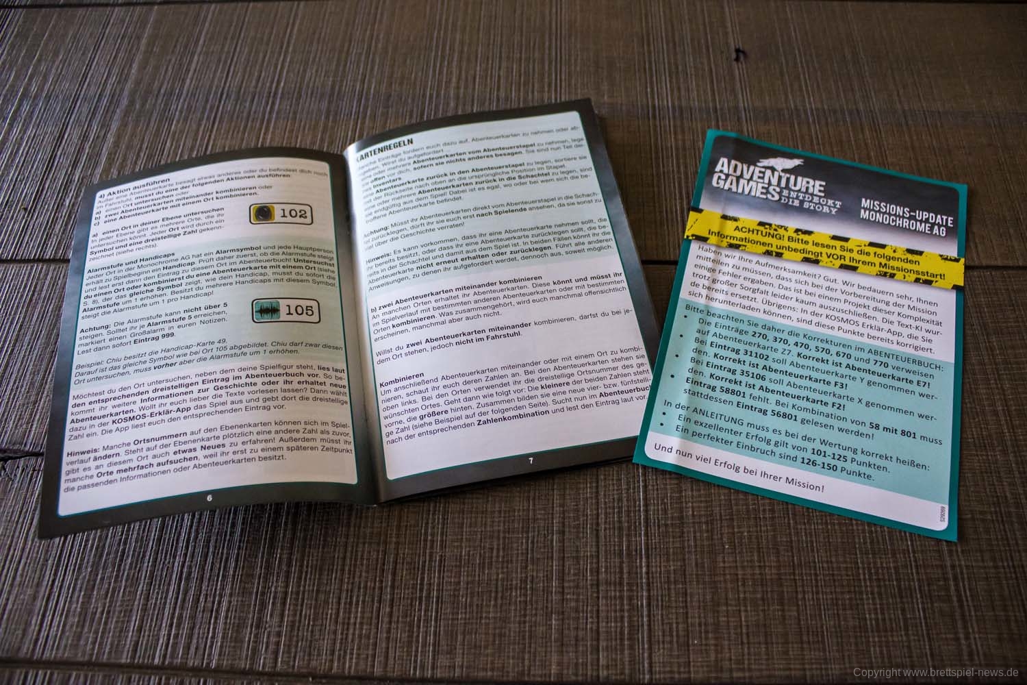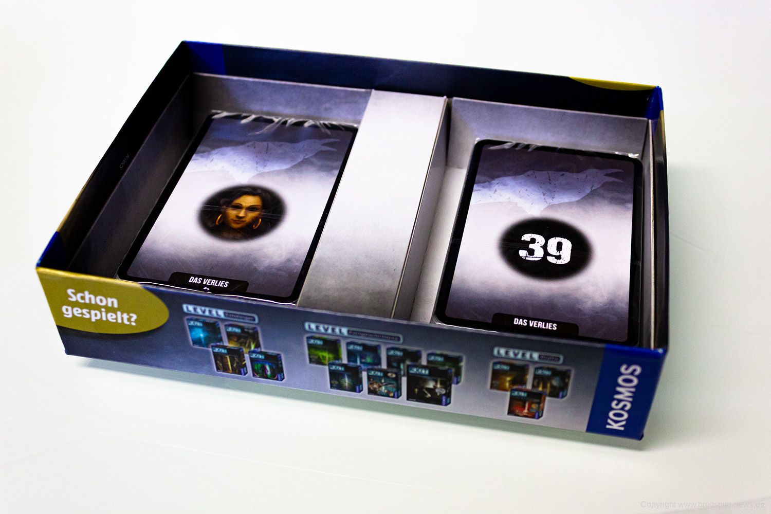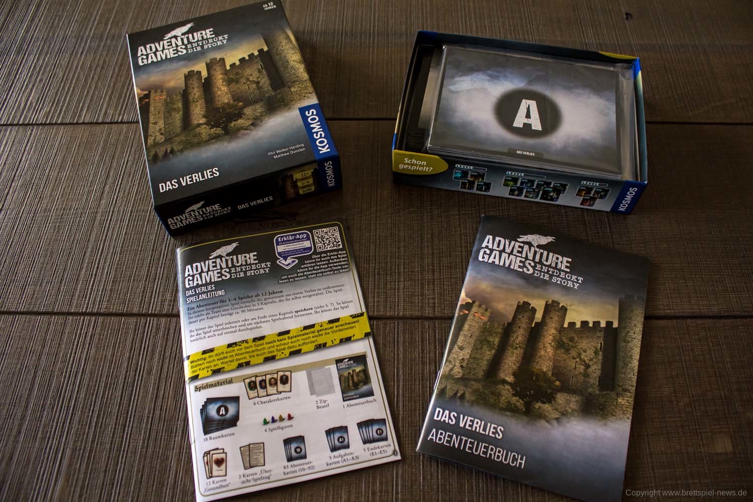 Wir haben die ersten zwei „Adventure Games“ von Kosmos erhalten und wollen Euch vor dem Test schon einmal erste Bilder vom Spielmaterial zeigen. Zum Start werden „Die Monochrome AG“ und „Das Verlies“ erscheinen. Beide Spiele haben einen UVP von 14,99 € und richten sich an 1-4 Spieler. Die Spiele sollten schon bald im Handel verfügbar sein.