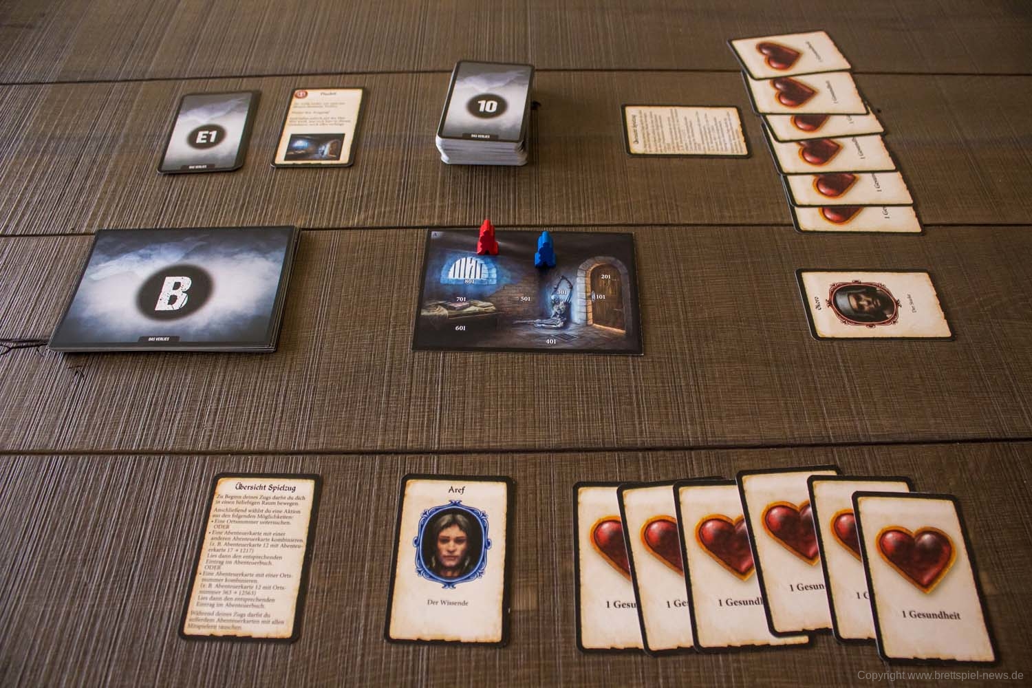 Inhalt: Abenteuerbuch, 110 Karten, 18 Raum-Tafeln, 4 Spielfiguren, 2 Zip-Beutel, Spielanleitung