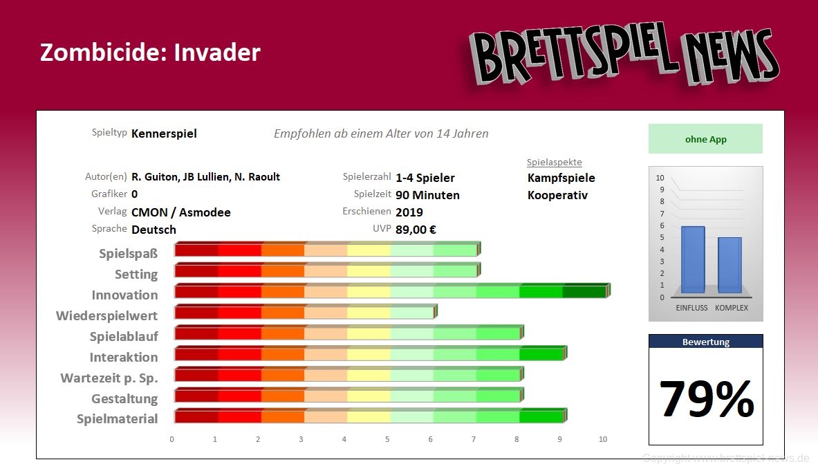 Tags: Kooperativ, Science Fiction, Kickstarter, Miniaturen, Modulares Spielfeld, 1-6 Spieler, Würfel, Variable Spielerfähigkeiten, 60 Minuten, Zombies
