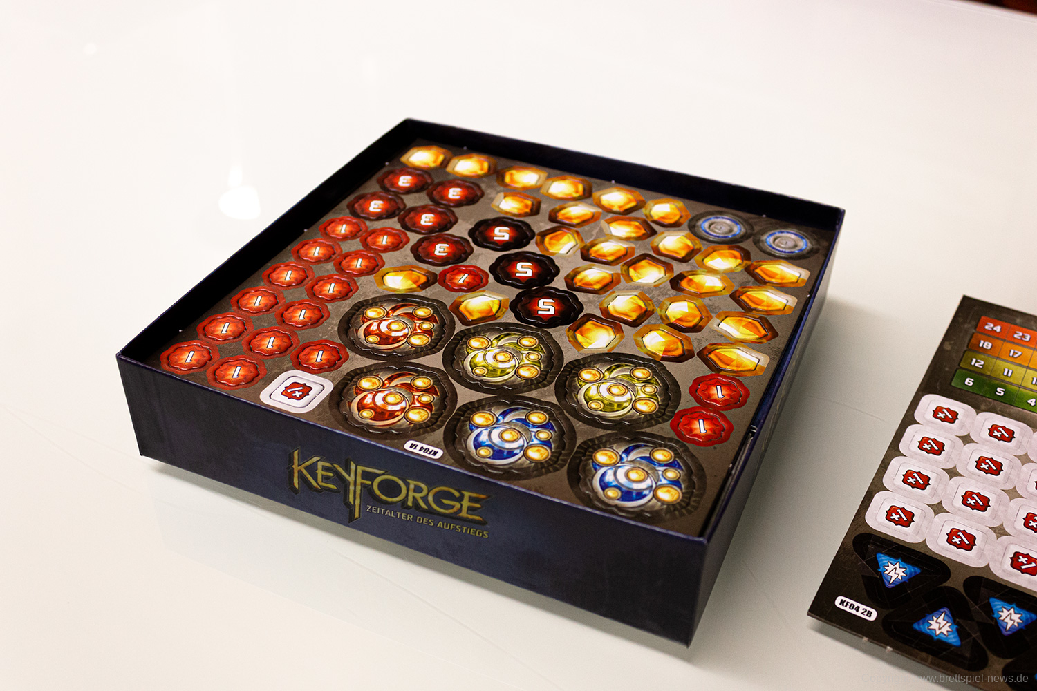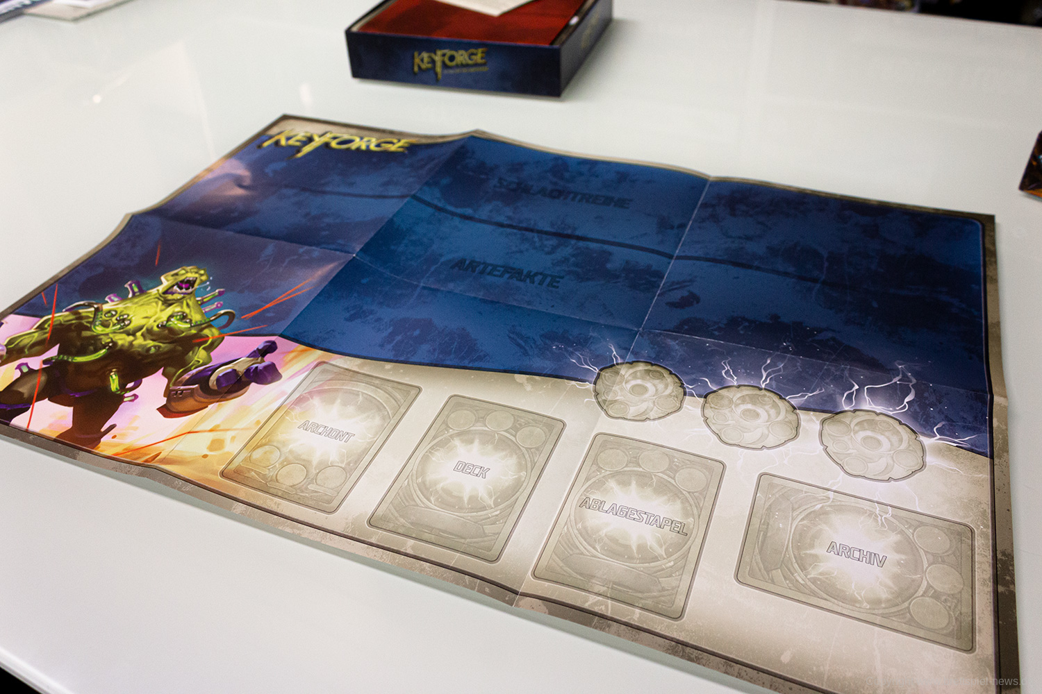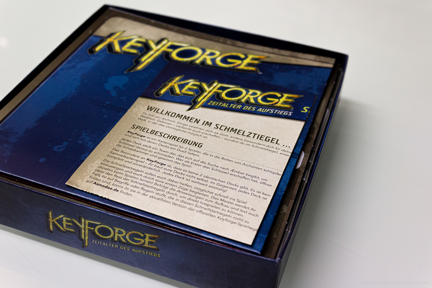 Das erste Keyforge bekommt nun mit "Zeitalter des Aufstiegs" Verstärkung. Die deutlich kleinere Box bringt neue Decks, die Teile von 204 neue Karten enthalten, die mit 166 bekannten Karten aus dem ersten Teil gemischt gänzlich neue Decks bieten. Zusätzlich bietet sie nun eine auf Papier gedruckte Spielfläche.