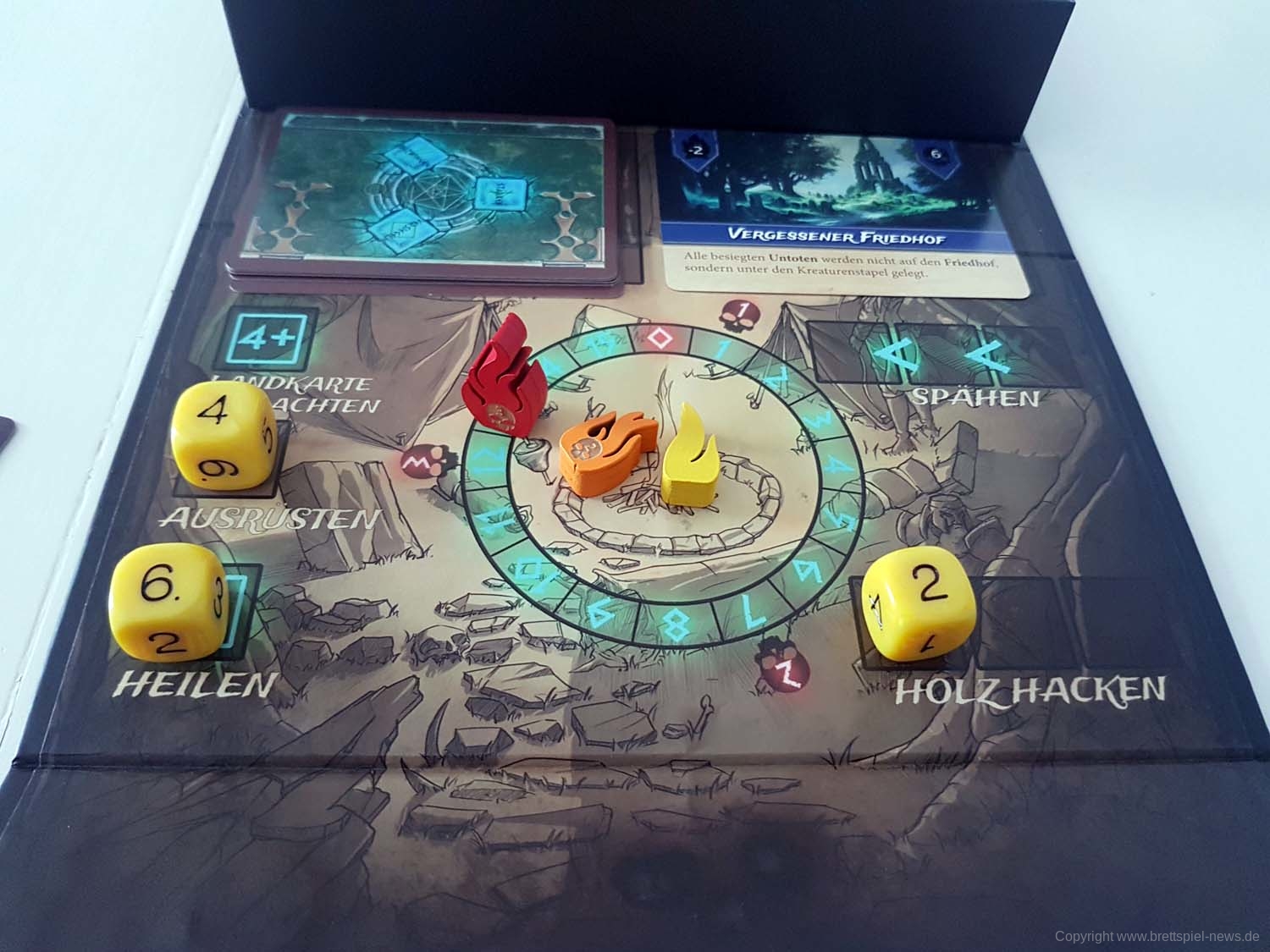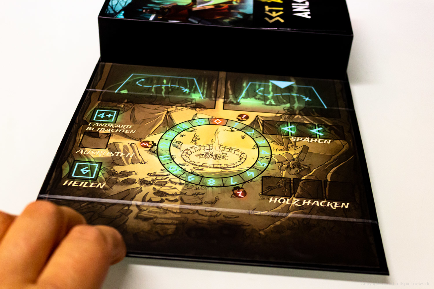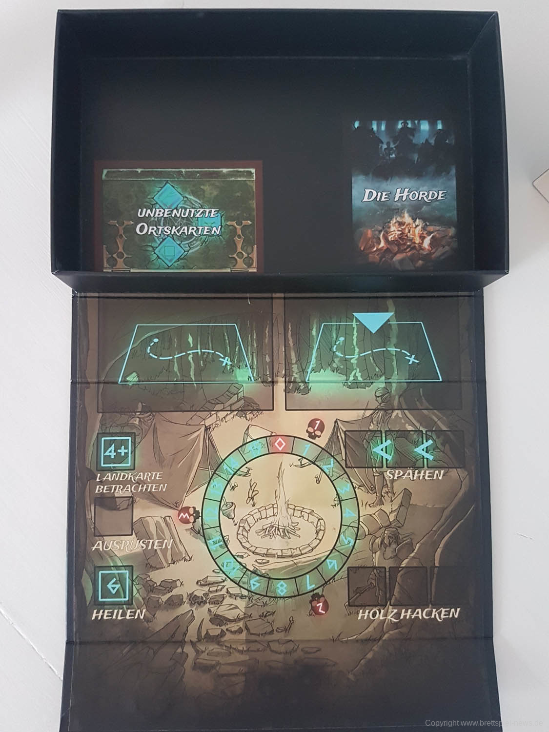 In Set a Watch, einem kooperativen Spiel für 1-4 Spieler, müssen Sie neun Positionen räumen, um zu verhindern, dass die Akolythen die Siegel brechen, die das Böse zurückhalten. Jede Runde besuchen Sie einen neuen Ort und wählen einen Abenteurer, der sich ausruht und Lageraktionen durchführt. Der Rest der Gruppe wird zusehen und gegen eine Reihe von Monstern kämpfen, die versuchen, mit Ihren Würfeln und einzigartigen Charakterfähigkeiten ins Lager zu gelangen. Die Manipulation der Kreaturenlinie ist unerlässlich, um das Kampfpuzzle jeder Runde zu lösen. Es ist ein Kampf, um am Leben zu bleiben und das Lagerfeuer am Brennen zu halten! Benutze deinen Verstand und deine Fähigkeiten, um für das Licht zu kämpfen....sonst werden alle in der Dunkelheit untergehen.