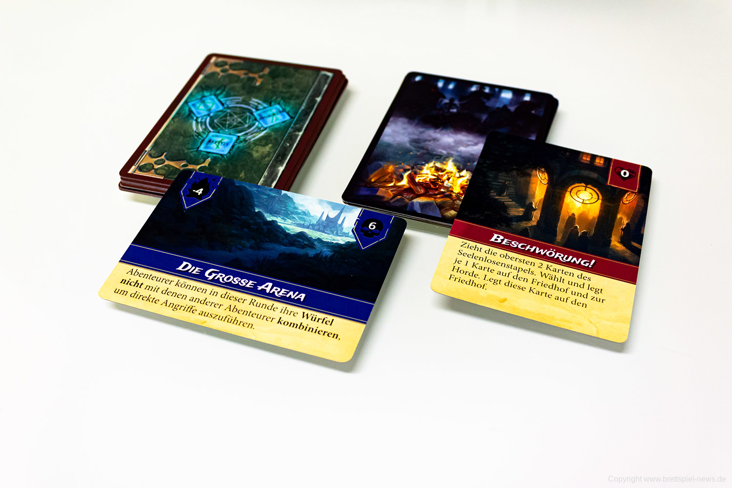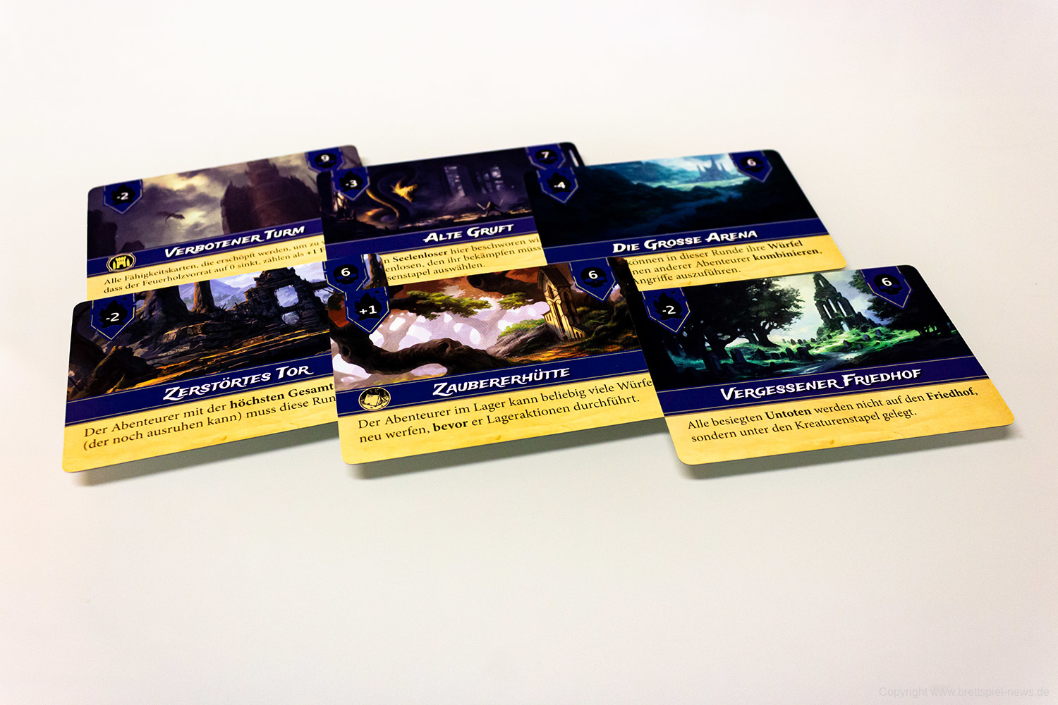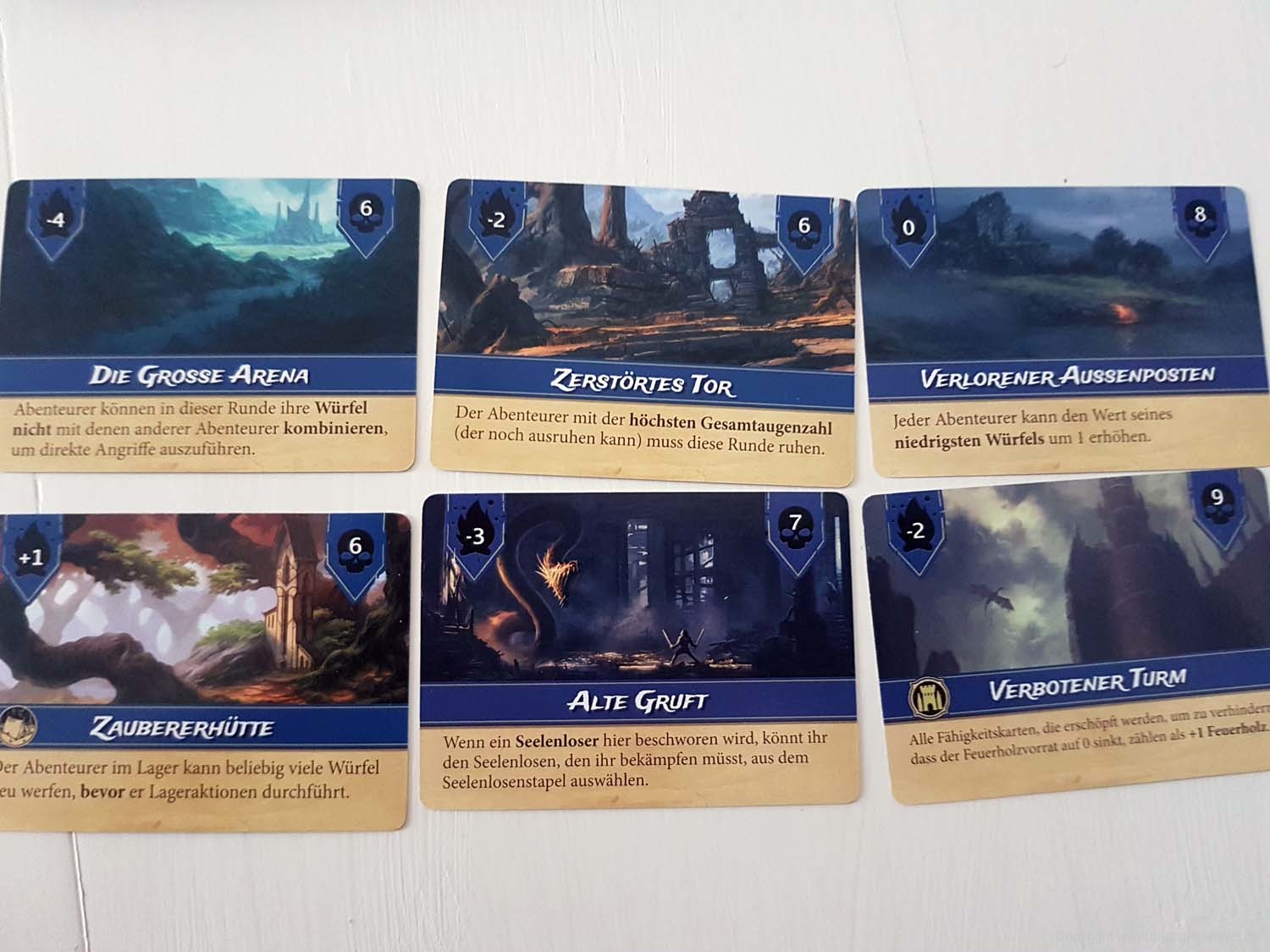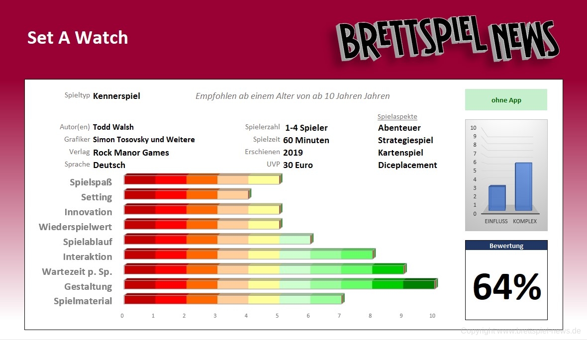 In Set a Watch, einem kooperativen Spiel für 1-4 Spieler, müssen Sie neun Positionen räumen, um zu verhindern, dass die Akolythen die Siegel brechen, die das Böse zurückhalten. Jede Runde besuchen Sie einen neuen Ort und wählen einen Abenteurer, der sich ausruht und Lageraktionen durchführt. Der Rest der Gruppe wird zusehen und gegen eine Reihe von Monstern kämpfen, die versuchen, mit Ihren Würfeln und einzigartigen Charakterfähigkeiten ins Lager zu gelangen. Die Manipulation der Kreaturenlinie ist unerlässlich, um das Kampfpuzzle jeder Runde zu lösen. Es ist ein Kampf, um am Leben zu bleiben und das Lagerfeuer am Brennen zu halten! Benutze deinen Verstand und deine Fähigkeiten, um für das Licht zu kämpfen....sonst werden alle in der Dunkelheit untergehen.