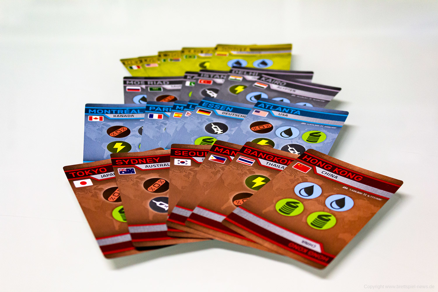 Asmodee Deutschland hat uns ein Exemplar der Neuheit Pandemic: Schnelles Einsatzteam vom Autor Kane Klenko zur Verfügung gestellt. Hier sind erste Bilder vom Spielmaterial der Neuheit zu sehen. Das Spiel basiert auf Pandemic bricht das Spiel aber auf ein anderes Spielprinzip hinunter, bei dem unter Zeitdruck kooperativ versucht wird die Welt zu retten. Das Spiel basiert auf einer Würfelmechanik.