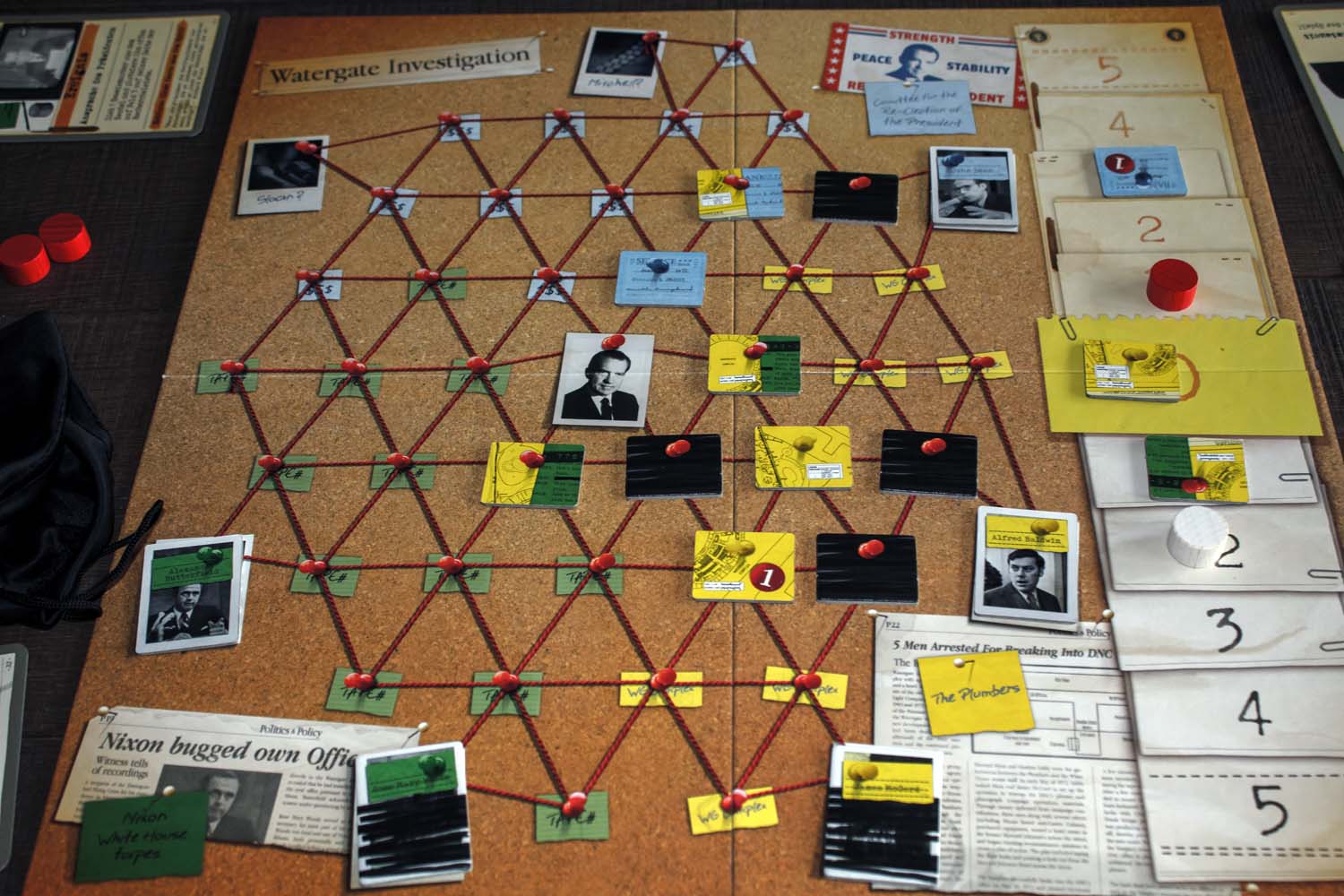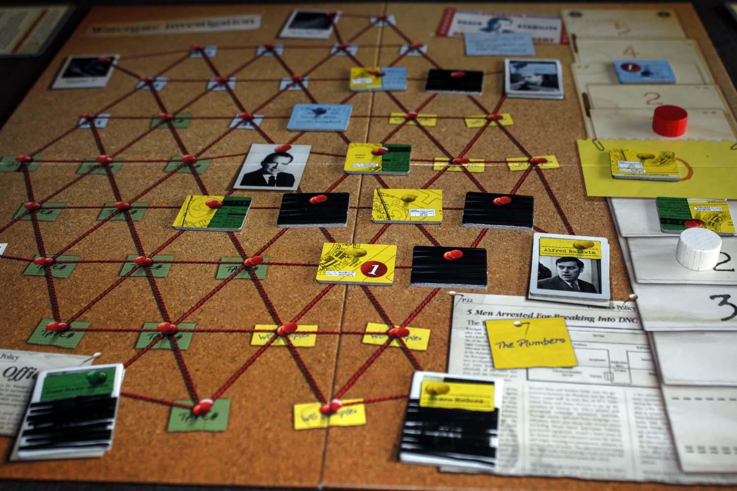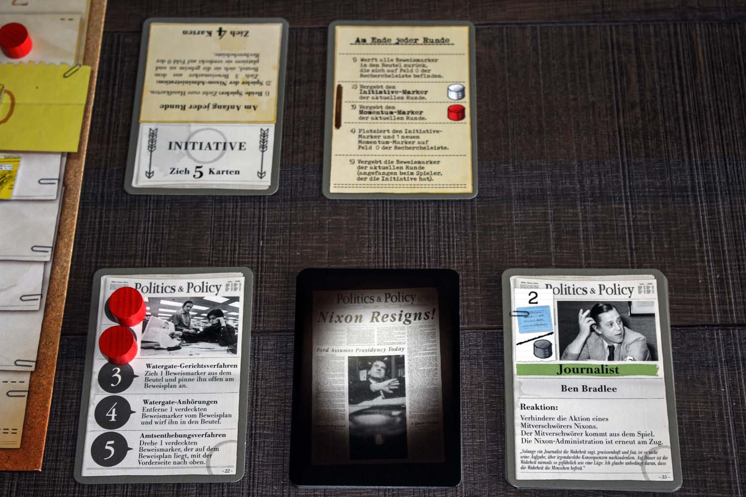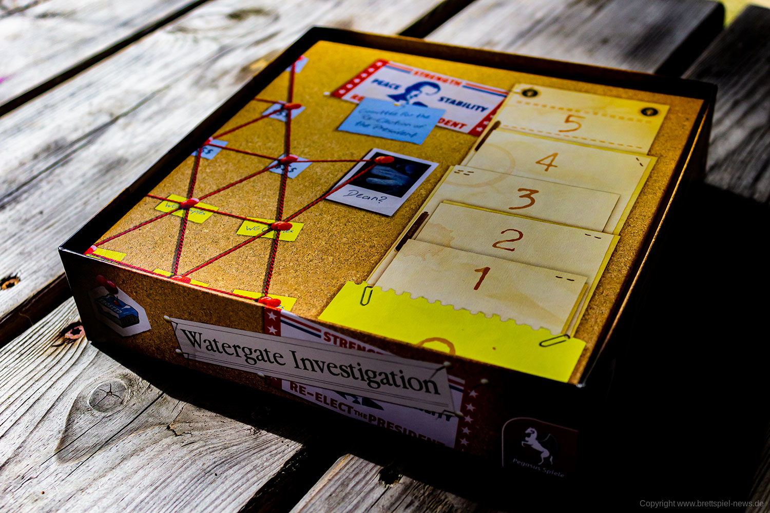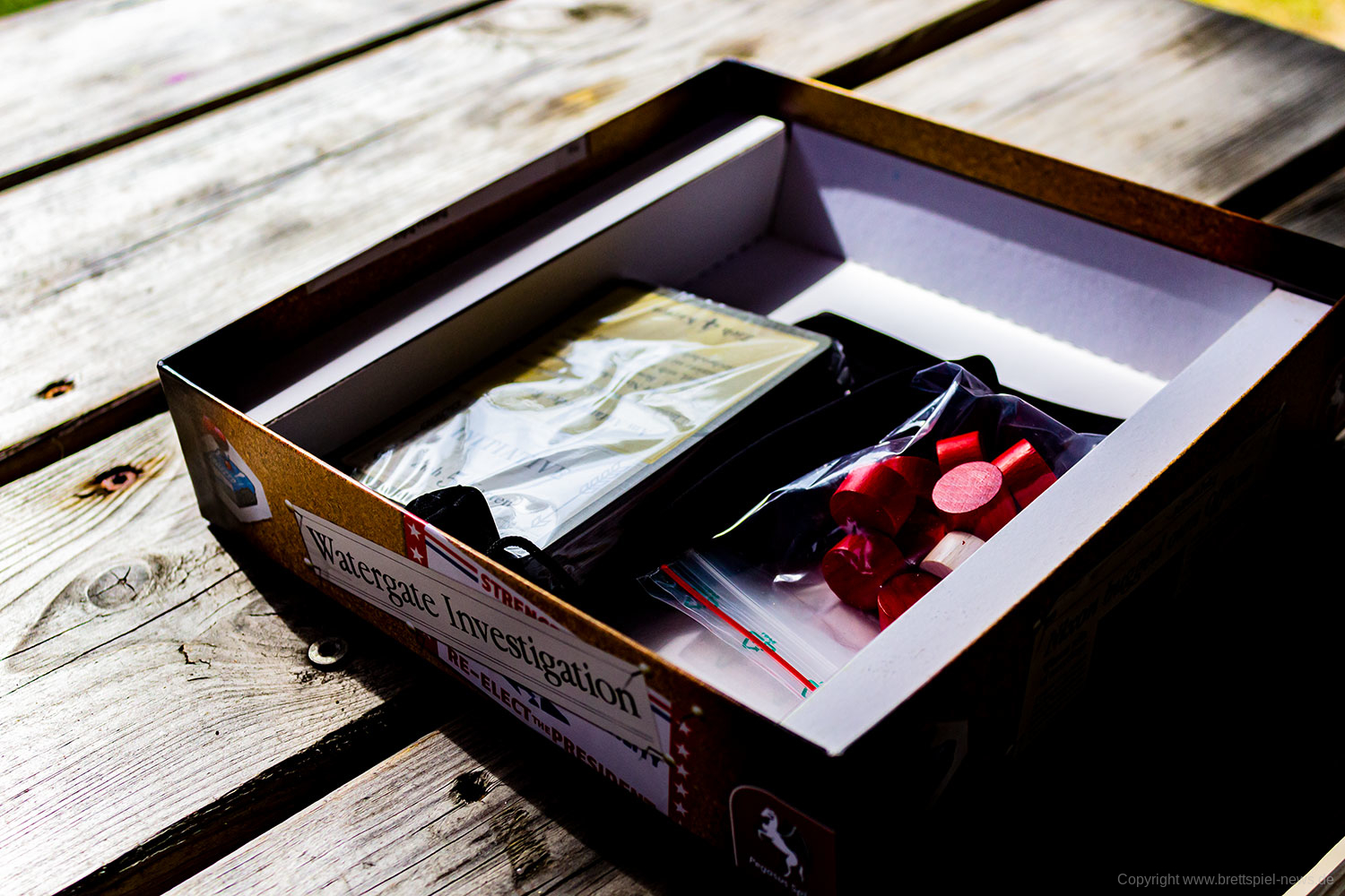 Woodward und Bernstein, Reporter der Washington Post deckten 1972/73 den größten politischen Skandal der jüngeren Geschichte auf. Die Affäre die einen US-Präsidenten zu Fall brachte, bekannt als Watergate, ist der Rahmen für das neue 2-Spieler-Spiel von Autor Matthias Cramer.