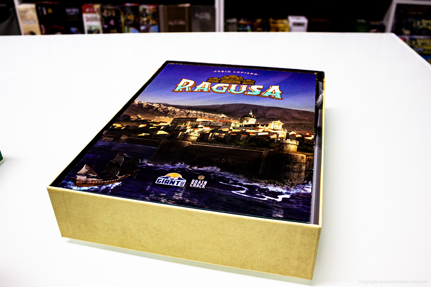Ragusa war als deutsche Version in der Spieleschmiede finanziert worden. Die Kampagne zu dem Spiel lief zuvor auf Kickstarter und konnte mehr als 1.300 UnterstützterInnen finden. Nun ist das Spiel ausgeliefert worden und wir hatten ein Exemplar finanziert, um darüber zu berichten.