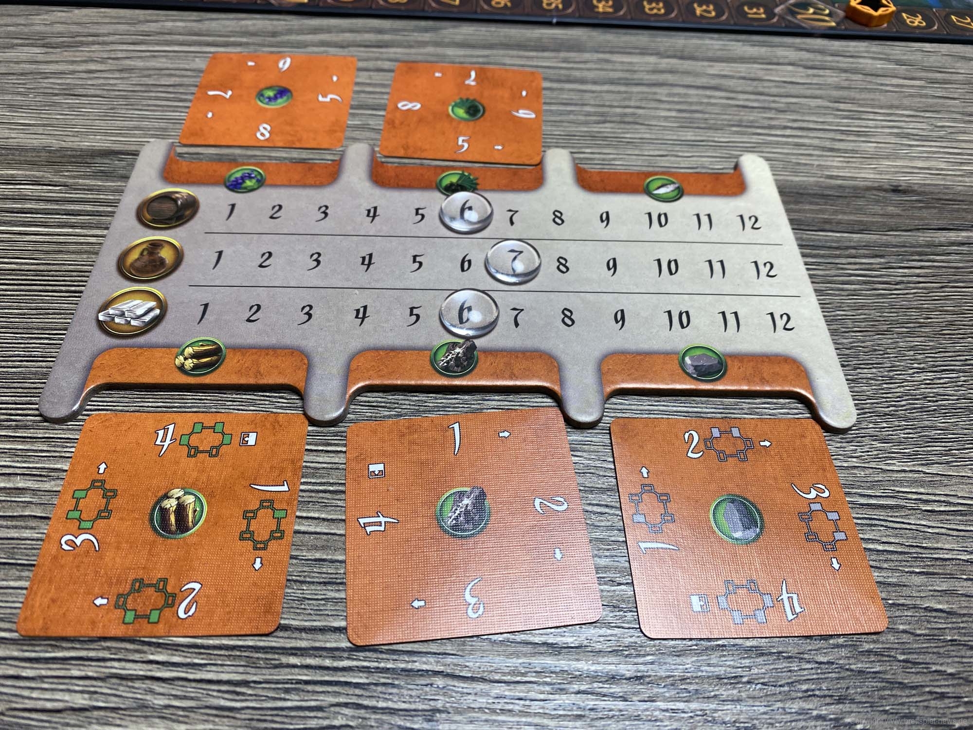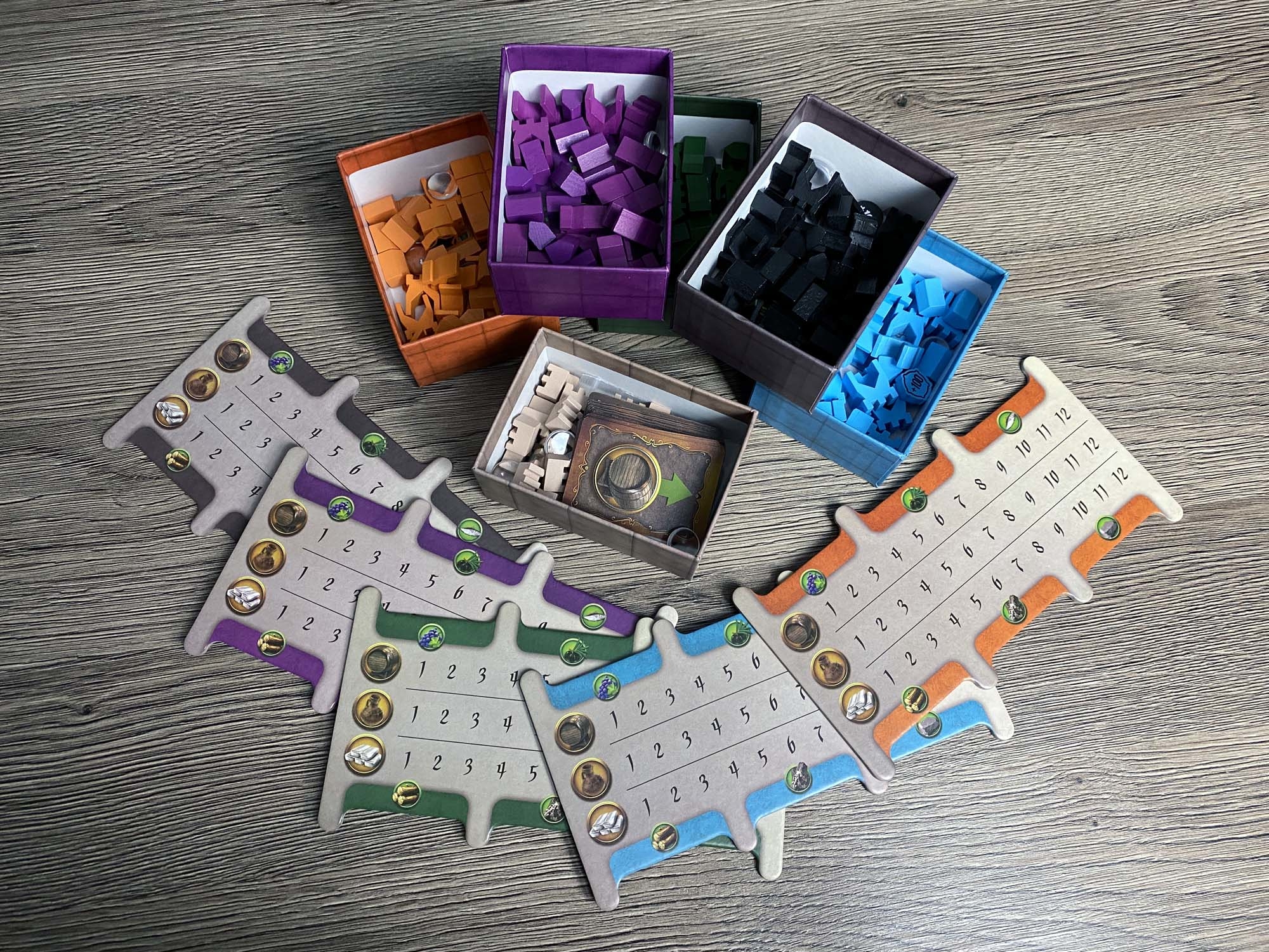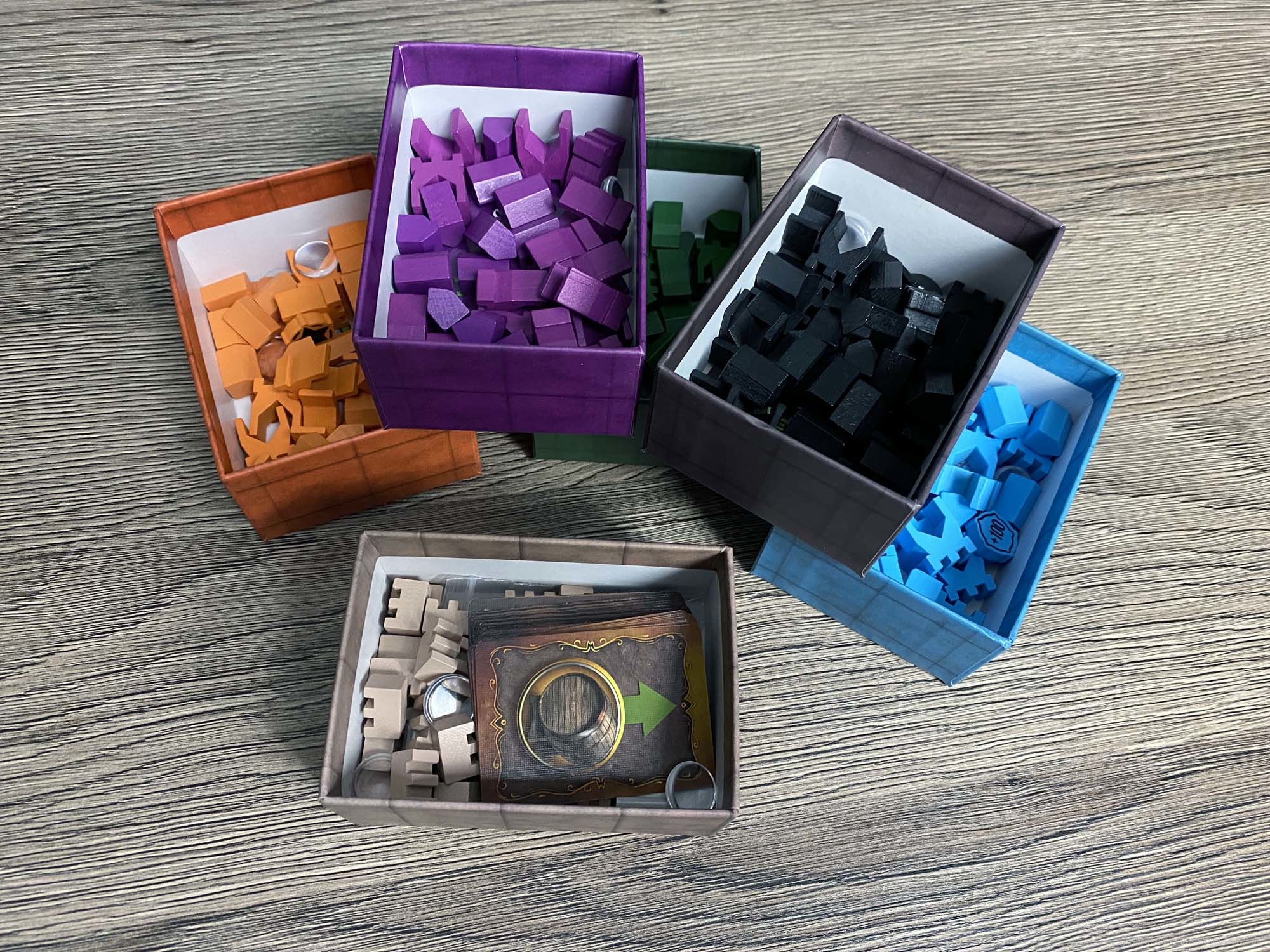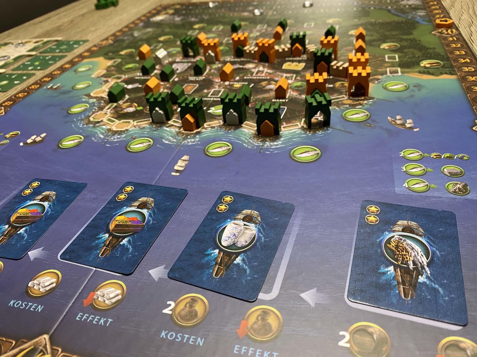 Ursprünglich war das Spiel für den Herbst 2019 gedacht, wurde nun aber schon wesentlich früher geliefert. Der erste Eindruck des Spielmaterial ist sehr gut. Alles sieht hübsch aus und fühlt sich gut an. Zudem ist das Inlay umweltfreundlicher aus Pappe gefertigt und farblich gekennzeichnet. Eine optimale Lösung! Die Karten sehen hübsch aus, was auch für den Spielplan gilt.