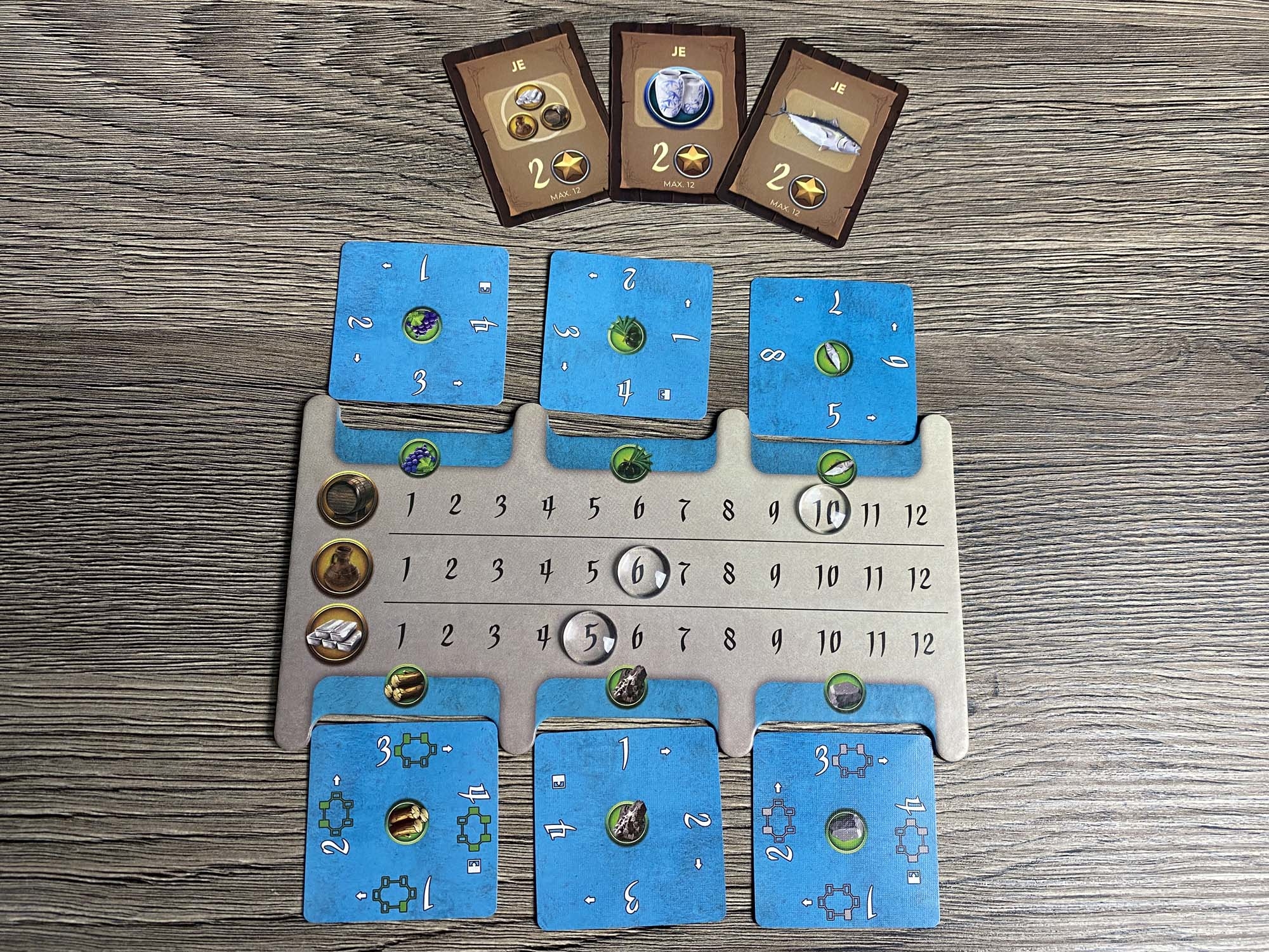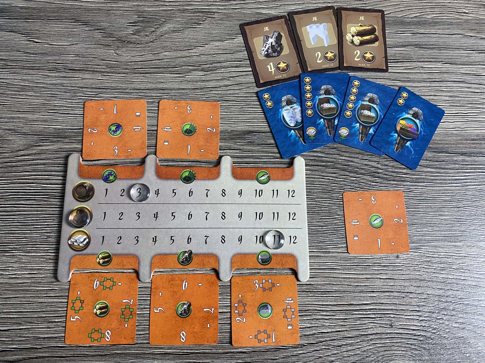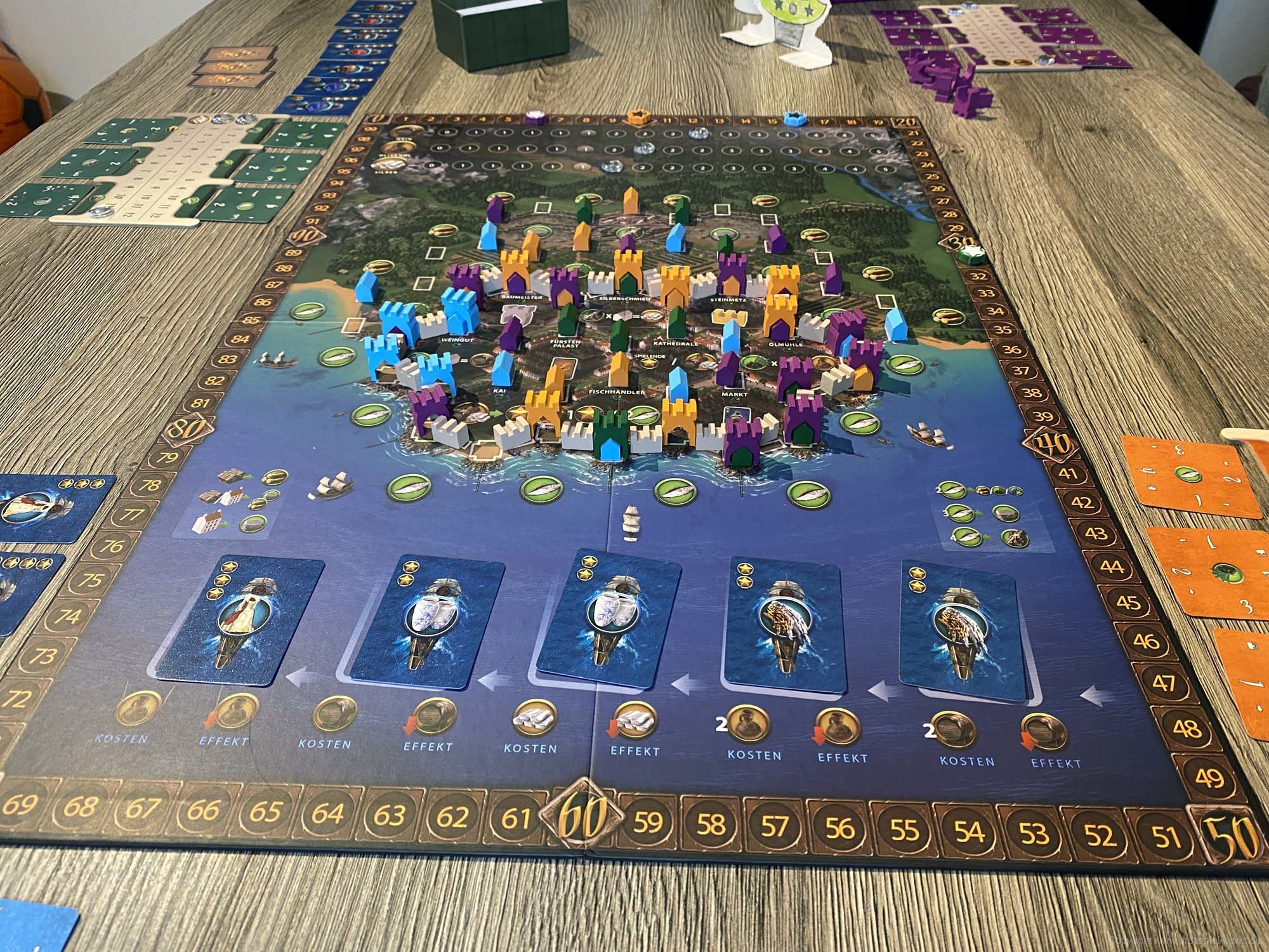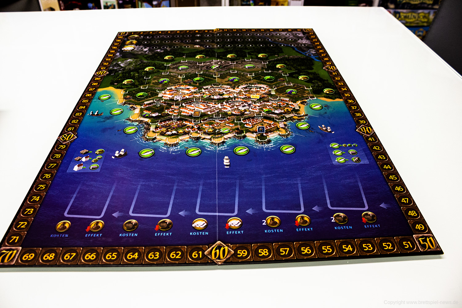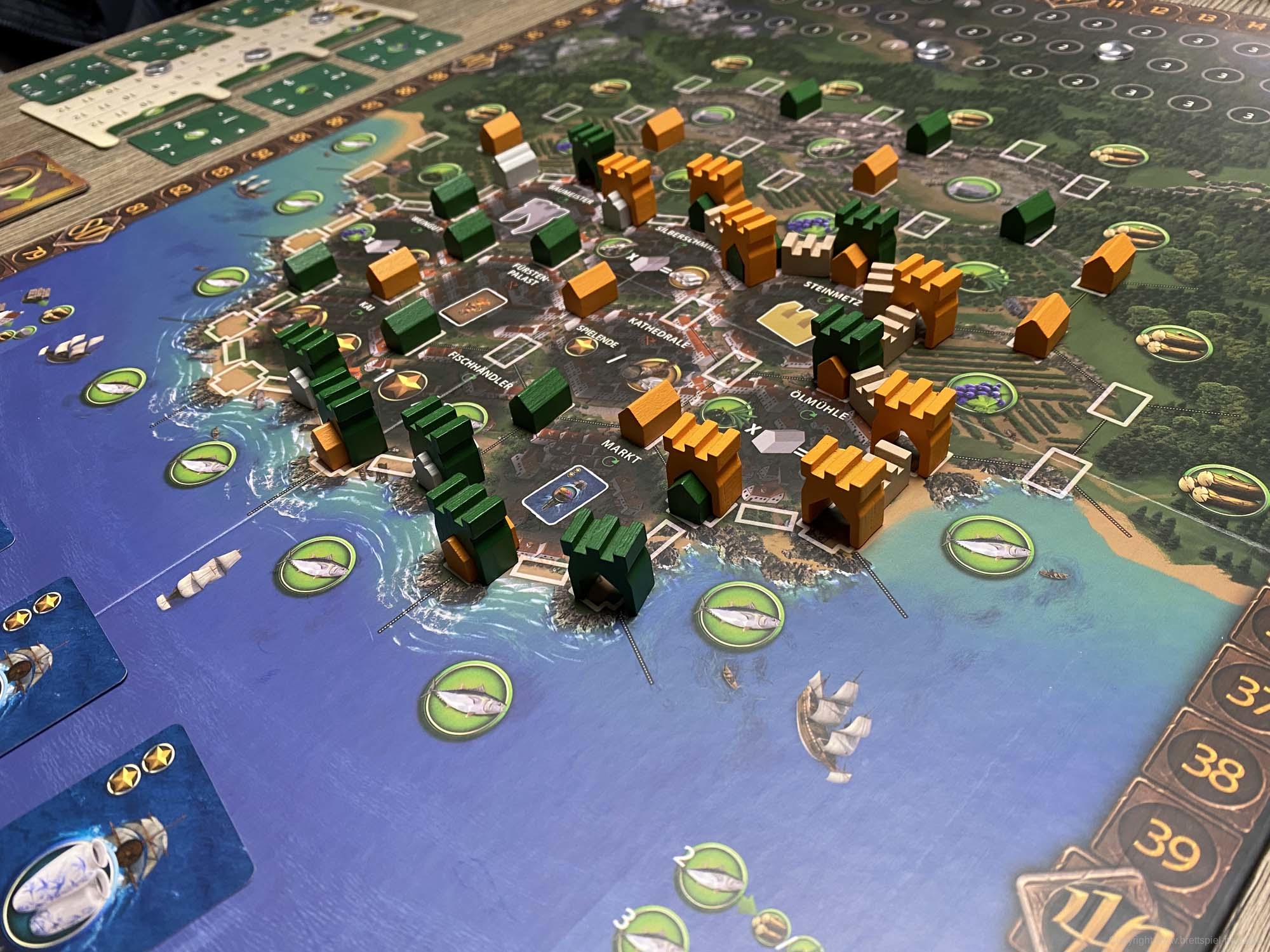 Ursprünglich war das Spiel für den Herbst 2019 gedacht, wurde nun aber schon wesentlich früher geliefert. Der erste Eindruck des Spielmaterial ist sehr gut. Alles sieht hübsch aus und fühlt sich gut an. Zudem ist das Inlay umweltfreundlicher aus Pappe gefertigt und farblich gekennzeichnet. Eine optimale Lösung! Die Karten sehen hübsch aus, was auch für den Spielplan gilt.