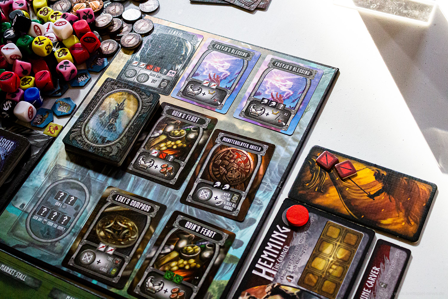 Nachdem ich nun Champions of Midgard mit beiden Erweiterungen gespielt habe, möchte ich das Spiel nicht mehr ohne spielen. Das Spiel fühlt sich nun viel besser an und selbst wenn ich nun Würfel und damit Wikinger verliere, ist es für etwas gut: Ich kann mir die Plättchen eintauschen gegen Boni und muss darauf achten welche Würfel ich abgeben will.